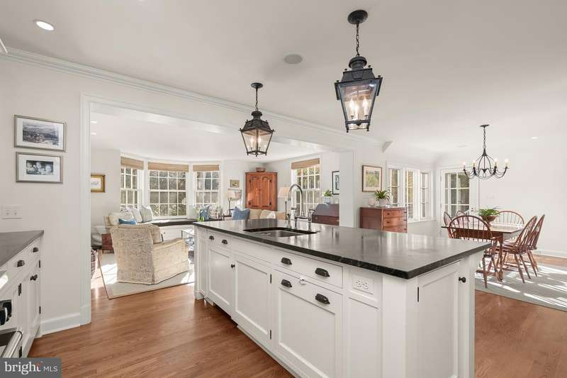 NEW LISTING!! Rarely will you find a more carefully considered and timeless renovation that upholds the traditional fieldstone facade and fully enhances comfortable family living in todays world. The expansive main level offers many opportunities to gather together and celebrate or curl up with a good book. The open floor plan includes the universally desired Chefs Kitchen, Family Room and Breakfast rooms. The indoor/outdoor relationship here is fully emphasized with various accesses to the large, level and private back yard. Daily life is greatly enhanced by the garage entrance to residence via and covered side porch and elegant hallway with practical and enviable Mudroom. The Primary Suite is quite serene with its own entry hall and includes a cathedral ceiling, sumptuous Bath and closet cleverly situated to enable one early riser not to disturb their favorite sleeper. The expansive Lower Level includes many useful spaces for relaxing, working, working out, creating and being a well-attended guest! Multiple work spaces, three fireplaces, generous hallways and pristine condition afford the new fortunate owner all of the elegant features that cannot be easily replicated nor found all together in a singular property such as they are here.