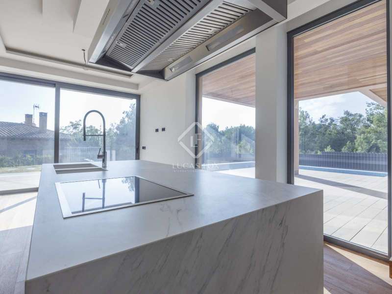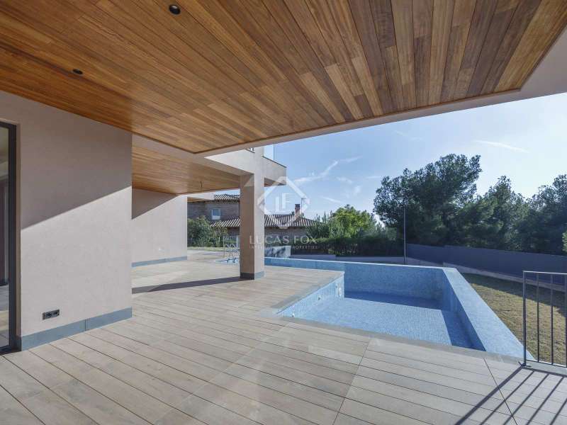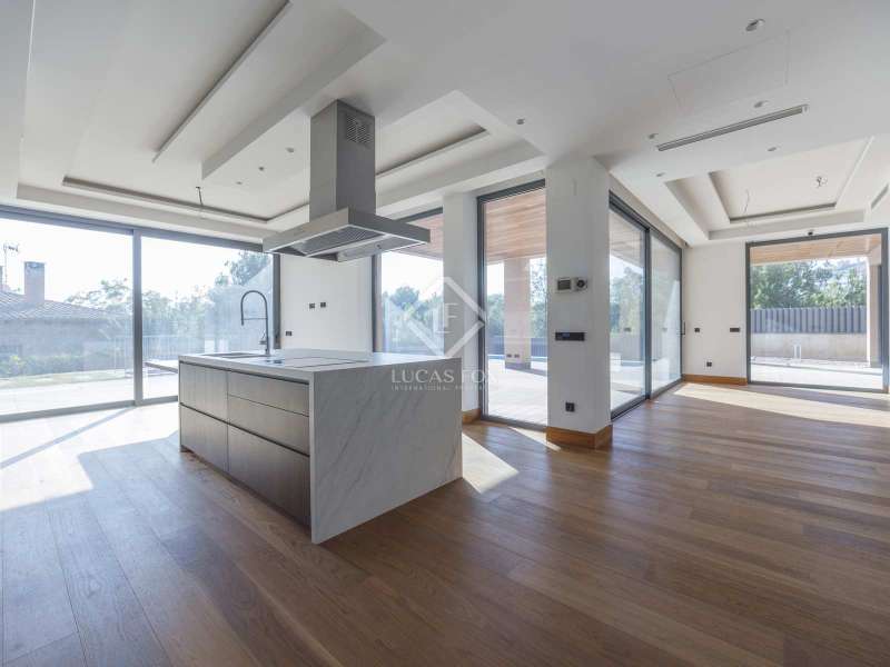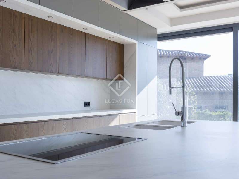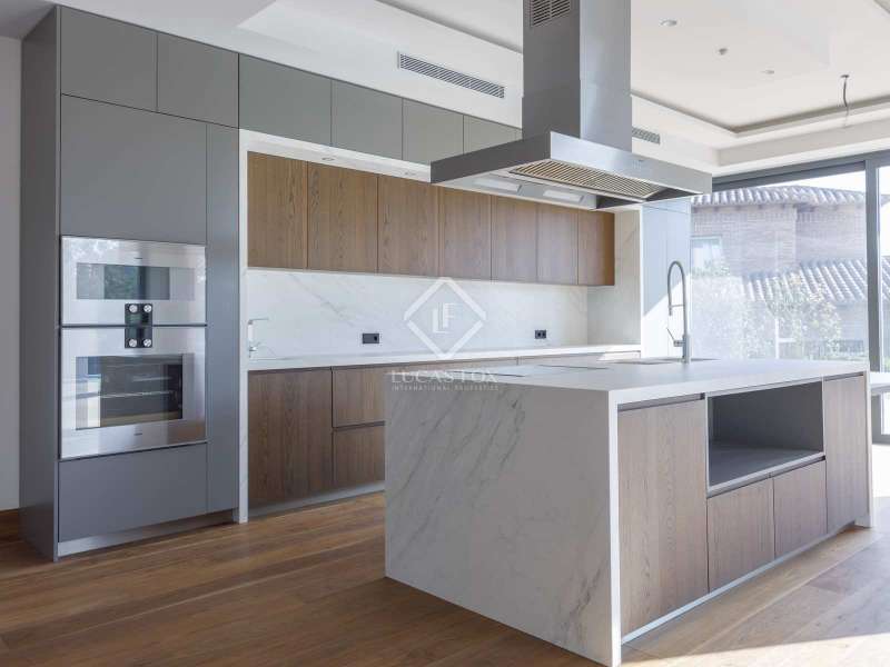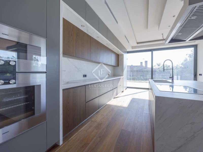 We present this new developed modern house located in one the most sought after neighbourhoods in the whole of Valencia - Los Monasterios. All of the bathrooms and kitchens are Porcelanosa finishings and the house has been constructed with high end materials throughout. There is a lift to each level and the house has underfloor heating installed. Just a twenty minute drive to the city and close proximity to the popular International schools Caxton College and the American school of Los Monasterios, the house is split over three levels. On the first floor you will find the modern, stylish open kitchen and spacious living room, both with access to the outside terrace and swimming pool area. The guest bathroom and two bedrooms are also on the first floor which could be also used as office spaces. On the second level is the master bedroom with a great outside terrace overlooking the pool with breath taking mountain and sea views. Then there are three more bedrooms with ensuite - all which have access to the wrap around terrace on the outside of the house with the same views. Underneath the house you will find a spacious garage big enough for 6 vehicles and then a self-contained area with two more double bedrooms, a bathroom and toilet (perfect for visitors) and a full functio ning modern kitchen, a separate laundry room and a great sized storage room. At the other side on the same level of the house there is an indoor swimming pool (the only house in Los Monasterios to boast outdoor and indoor pools!) and a then a customised orignal marble Turkish bath (steam rooms) with toilet and shower at either side. There is also a gymnasium and a home cinema with sound proofing and surround sound installed. Throughout the house there are air-conditioning vents all on splits – hot and cold and a fireplace in the living room. The house has a central alarm and cameras already installed. Please contact us for more informtion and to orgaise a viewing for one of - if not the best house in the whole of Valencia.