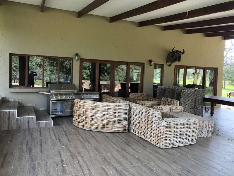 Welcome to the epitome of luxury and exclusivity! This exceptional lodge and game farm is a true gem that rarely enters the market. Designed for the connoisseur who appreciates the finer things in life, this property boasts breathtaking views, remarkable topography, and an abundance of natural wonders. As you arrive, be prepared to be whisked away to your private airstrip, ensuring a seamless and convenient journey to your new retreat. The lodge itself exudes sophistication and offers panoramic vistas of the dam and mountains. With its 12 garden cottages, all tastefully designed and featuring en-suite bathrooms, this property can comfortably accommodate up to 36 guests. Step inside the lodge, where you'll discover a haven of luxury and relaxation. The lounge, bar, and dining room create an inviting atmosphere for socializing and enjoying exquisite meals. The open veranda leads you to a boma, complete with a braai (barbecue) and pizza oven, perfect for entertaining and savoring delightful culinary experiences. Admire the sparkling pool and rolling lawn that extends gracefully to the dam's edge from the spacious stoep, offering a serene spot for quiet contemplation. Additional amenities include an ablution area for campers, a shed, workshop, and a standby generator to ensure uninterrupted power supply. The lodge is fenced with access control, prioritizing your security and peace of mind. Moreover, the property features two main houses discreetly nestled in a valley, overlooking a tranquil dam. There's also a charming two-bedroom stone cottage and a manager's cottage for added comfort and privacy. For the discerning buyer seeking practicality, two large open sheds, a slaughter room with a meat processing area, and a generous walk-in cold room are at your disposal. The property also boasts strong boreholes for a reliable water supply and Escom power for added convenience. Nature enthusiasts will be captivated by the game breeding camps available, spanning 80 Ha, 24 Ha, and two 12 Ha areas. The estimated game numbers are truly impressive, featuring buffalo (25), giraffe (4), nyala (50), sable antelope (15), blue wildebeest (150), oryx (15), blesbuck (15), ostrich (12), eland (80), red hartebeest (9), and a variety of other species like reedbuck, duiker, steenbok, warthog, and bushbuck. This exceptional property is being sold as a going concern, with the transaction zero-rated, offering you a hassle-free acquisition. Additionally, vehicles and farm implements can be negotiated, ensuring you have all the tools necessary to embrace this extraordinary lifestyle. Indulge in the finest luxuries and embrace the beauty of nature at this upmarket lodge and game farm. Don't miss this rare opportunity to own a piece of paradise. Contact us now to arrange a viewing and secure your place among the elite. Farm consists of three title deeds and sale is subject to the payment of VAT.