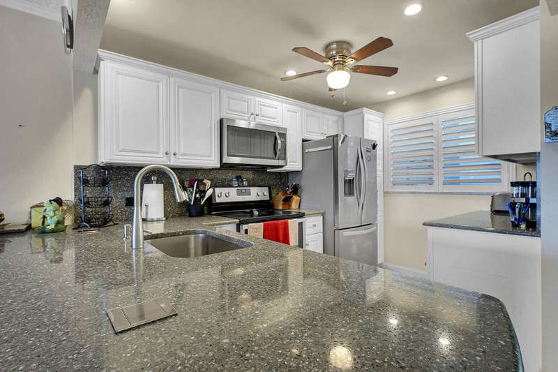 Enjoy sweeping marina and Intracoastal views from this top-floor 2BR/2BA condo in the highly desirable 55+ community of Ports O Call. Step inside to a light-filled layout featuring tile floors, an updated kitchen with granite counters and stainless appliances, and a spacious living area that opens to an enclosed balcony, ideal for relaxing and watching the boats glide by. Both bathrooms have been tastefully renovated, and the primary suite includes a walk-in closet and ensuite bath. New roof and AC, with Milestone & SIRS studies complete. Amenities include a heated pool, fitness center, clubhouse, and dockage. Near golf, beaches, dining, and more!