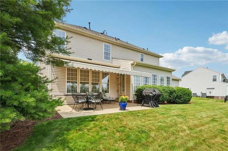 This 2900 sq ft brick-front home offers timeless elegance from quoin corners and a hip roof with a dramatic two-story entry featuring a large Palladian window. The gourmet kitchen features warm maple cabinetry and a large quartz island, opening into a bright 9' x 20' morning room with plantation shutters. The family room invites cozy gatherings with its brick-front fireplace and hearth, while the first-floor laundry adds convenience. The main bedroom suite features a walk-in closet, a whirlpool soaking tub/shower, and quartz double vanities. Three other generously sized bedrooms. Additional highlights include finished 2 car garage, a lower level with over 1,400 sq ft and 9' ceilings, bring your vision to life, large rear yard with beautiful views. Enjoy outdoor living on the expansive 18' x 15' concrete patio, complete with a motorized retractable awning. This is truly an exceptional home! Easy commute within minutes to PA Turnpike, RT8.