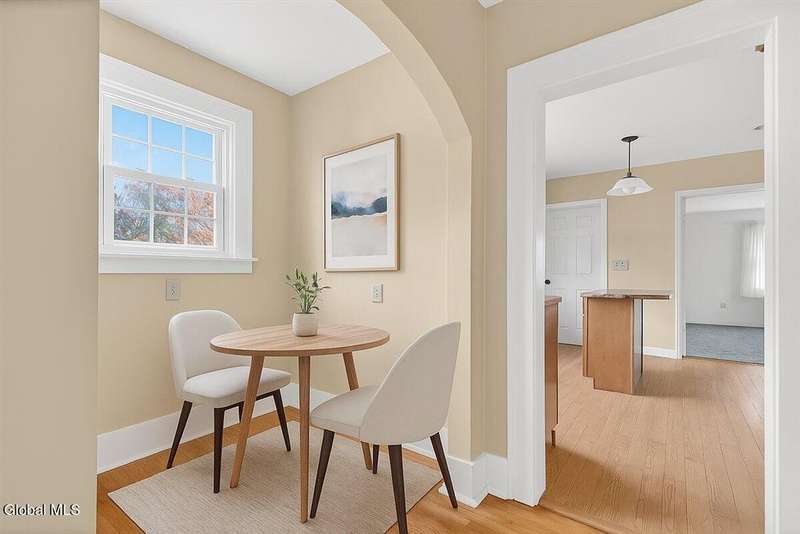 Open House Sunday, November 23rd from 12-2. Welcome to this quaint and inviting 3-bedroom, 1-bath, 1,560 sq. ft comfortable. cottage-style ranch home nestled in a sought-after neighborhood of Niskayuna. A spacious, welcoming screened porch greets guests and sets the tone for this charming residence. Step inside to a large, light-filled living room featuring classic built-ins that frame a handsome wood-burning fireplace. An arched opening leads to the formal dining room with a large picture window?perfect for gatherings and holiday meals. The thoughtfully designed kitchen offers warm-toned wood cabinetry, granite countertops, and a convenient island that will delight any home chef. A cozy nook nearby makes an ideal workstation or reading spot. Two bedrooms feature hardwood floors beneath carpeting. The full bath showcases large ceramic tile. The generous primary bedroom offers ample space to add an ensuite bath, creating your own private retreat. Enjoy easy one-level living in this lovingly maintained home. The current owners have cared for and periodically updated this rare gem for over 50 years. Professionally designed landscaping by Faddegon's enhances the beauty of the corner lot. Located within the award-winning Niskayuna School District, this charming home combines comfort, character, and convenience?an exceptional opportunity in a highly desirable neighborhood. Garage sold ''as is''.