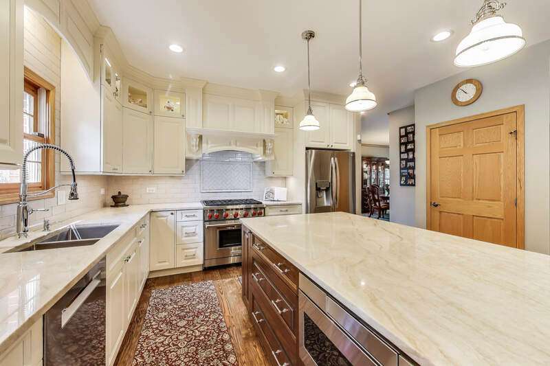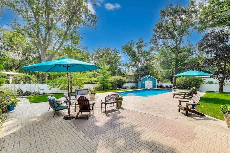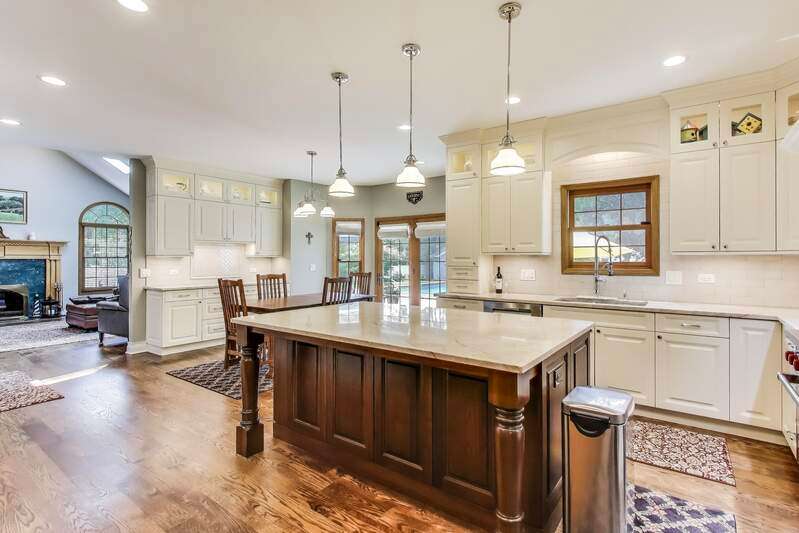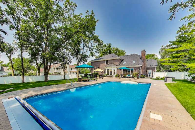 Exquisite 6-Bedroom Home with Gourmet Kitchen, in-ground Pool, Finished Basement, 3 car garage - Prime Location in award-winning public school District 103 and Stevenson High School District 125, walk to Metra and Sullivan Woods walking trail. Welcome to this impeccably maintained, luxury home nestled on a beautifully landscaped half-acre lot in one of the area's most desirable neighborhoods. Boasting six spacious bedrooms and four full bathrooms, this stunning residence offers a perfect blend of comfort, functionality, and upscale living. From the moment you enter the elegant two-story foyer with its custom staircase, you'll appreciate the thoughtful craftsmanship and timeless design throughout. Step into the heart of the home - a newly renovated gourmet kitchen featuring stunning Taj Mahal quartzite stone countertops, custom cabinetry, oversized island with surround cabinetry, new high-end appliances including the dishwasher and refrigerator, and elegant finishes designed for both everyday living and entertaining. Rich solid oak doors and hardwood floors flow throughout the main level, enhancing the home's warmth and timeless appeal. French doors exit to the large peaceful patio and backyard for morning coffee, exercise, swimming or relaxation at any time. The beautiful kitchen flows into the family room featuring a gas fireplace with the option to also burn wood. The fireplace has a custom crafted mantle enhanced by the natural light streaming through the skylight windows and arched window features. The fully finished basement is a standout and is ideal for extended family, guests, or even multi-generational living. This thoughtfully designed basement offers a second full kitchen, with Kraft Maid custom cabinetry, granite countertops, a full-size stand-up freezer, refrigerator, stove and microwave, an area for a washer/dryer addition, a spacious bedroom, extensive closets, large storage spaces and a full bathroom. The bathroom features Kraft Maid custom cabinetry, double sinks, granite countertops and a spa-like shower. The basement has an exit to the backyard. The basement offers extensive storage and ample space suited for fitness equipment. In the backyard enjoy your own private oasis featuring a heated in-ground pool with a hydraulic, retractable locking cover, large yard play space, all surrounded by six-foot privacy fencing, professional landscaping, lighting, custom designed/built shed and lush greenery - perfect for playing, relaxing or entertaining in every season. Additional highlights include: Extensive storage throughout Impeccable condition - move-in ready. 3 car garage climate controlled Large Dog Kennel with in/out access to backyard. Conveniently located to allow walking to the Metra's North Central Service train, Stevenson High School and the Sullivan Woods walking trail. Schools: Laura Sprague School, Half Day School and Daniel Wright Junior High and Stevenson High School This home combines unmatched convenience with luxury and space - a rare find in a prime location near top-rated schools, transportation, and amenities.