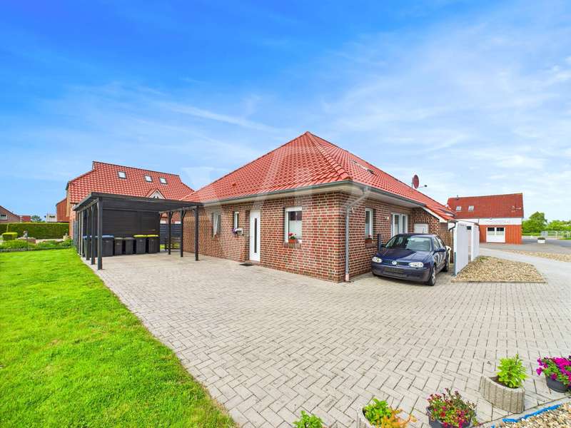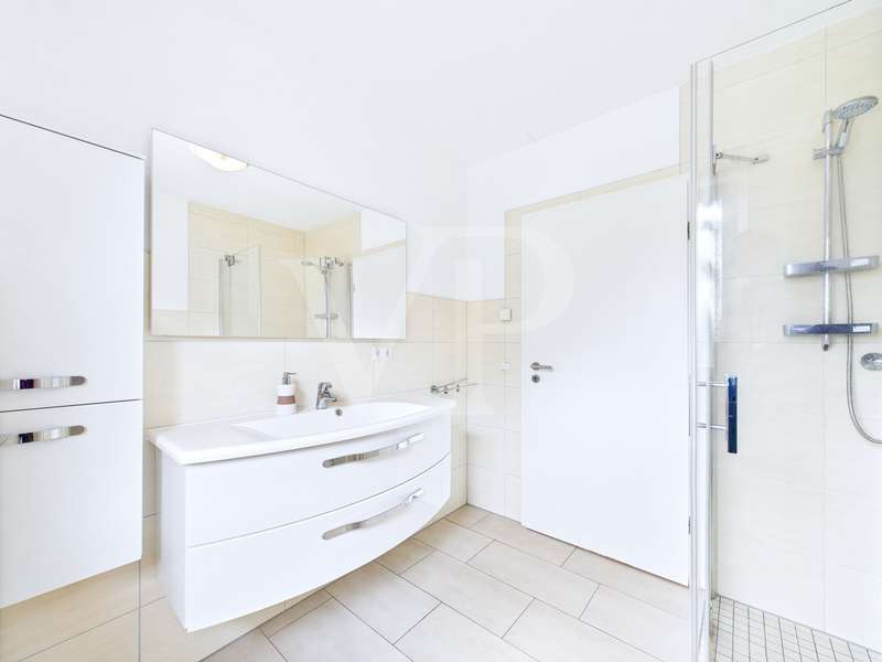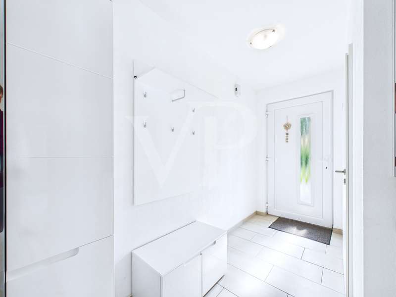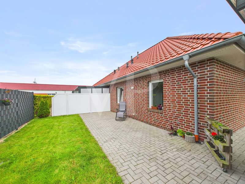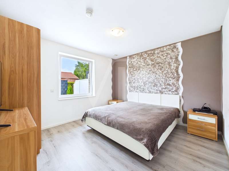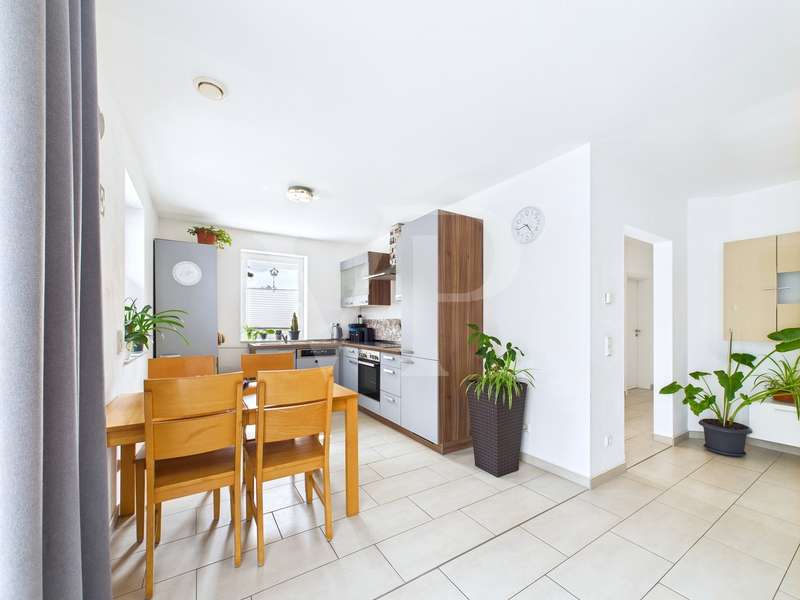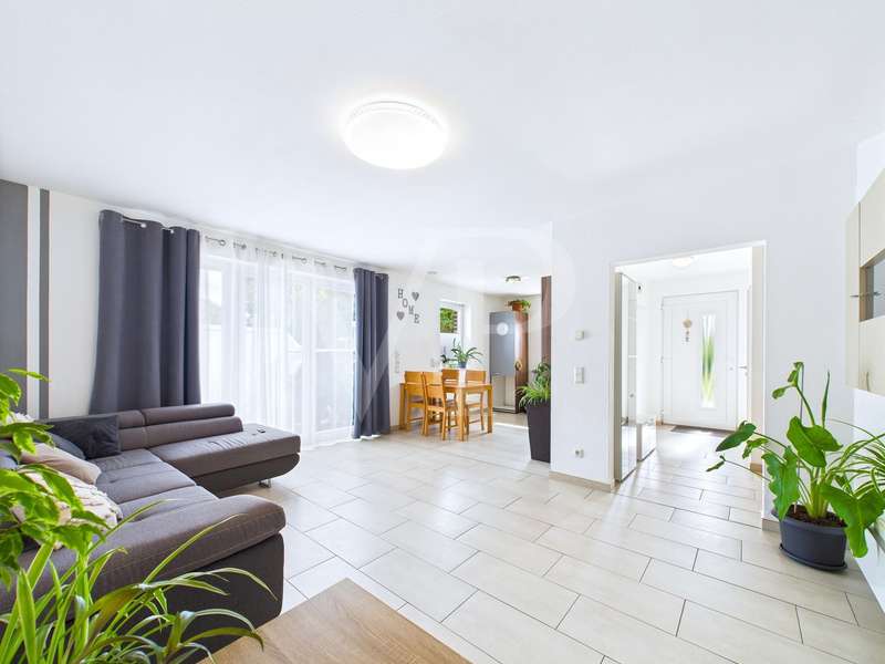 A modern semi-detached house is for sale, which was built in 2015 and has been in mint condition ever since. With a living space of approx. 77 m², this house offers a well thought-out room layout with three rooms, including two bedrooms and a bathroom. The property sits on a plot of approx. 435 m², which offers ample space for outdoor activities. The heart of the house is the open-plan living and dining area, which is flooded with natural light thanks to large windows. The bright interior design creates a pleasant living atmosphere. The underfloor heating installed throughout the first floor ensures even and comfortable heat distribution. The house is also equipped with an efficient ventilation system that ensures fresh air at all times. The property has a modern bathroom, which is equipped with a walk-in shower and offers a high level of comfort. There is also a practical guest WC. A utility room with a washing machine connection functionally complements the home's features and offers additional storage space. Each residential unit is equipped with electric external blinds that can be individually adjusted to provide privacy and sun protection. The carport with storage room directly attached to the house is particularly practical, offering additional storage space for bicycles or garden tools. Two terraces extend the living space outside and invite you to spend cozy hours outdoors. The garden area offers space for individual design options and leisure activities. A special highlight is the attic, which has already been prepared to create additional living space. The existing water connections, the drainage and the installed underfloor heating make it easy to fit out according to your own ideas. This property is ideal for couples or small families looking for a new and functional living solution. The contemporary furnishings and modern architecture meet high standards of comfortable living. Potential buyers have the opportunity to acquire a home that not only impresses in the present, but also offers future-oriented expansion options. The property is currently still rented out. It is therefore also interesting for investors. For further information or to arrange a viewing appointment, please do not hesitate to contact us. Take the opportunity to get to know this attractive house in person and convince yourself of its qualities on site.