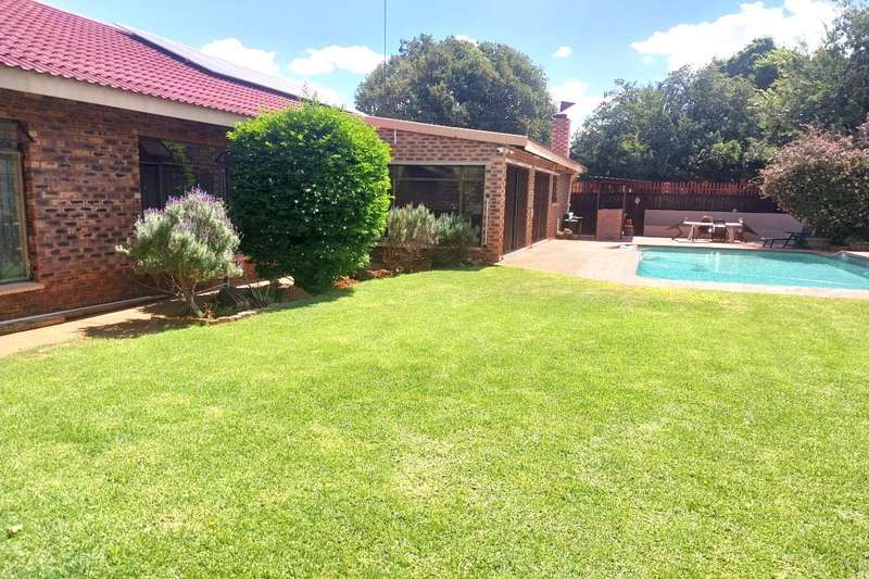 Upmarket, Luxurious 4 Bedroom family home for sale This low maintenance face-brick home has it all. The word ?Ç£convenience?Ç¥ comes to mind. This property is situated in an upmarket area, offering 3 bedrooms, main en-suite, as well as a beautiful modern common bathroom, plus an office in the loft, all serviced with air-conditioning units. The scullery is neatly hidden behind the well-designed beautiful kitchen. The open plan living area makes everything appear so spacious. The entertainment area protects you from the wind and rain and yet, flows out to the pool and beautiful sunny green garden. It has a borehole, which makes filling the pool cost effective, it has a Solar system which in turn, saves you money on your monthly expenses. The two double garages serve 4 vehicles and the neatly paved parking spaces in front of these garages, solves all your problems when you have guests, a caravan, or even a boat. So, if you wish to live in a quiet neighbourhood, away from the rush, but won?ÇÖt give up on the luxuries, then this is it. Come have a look!