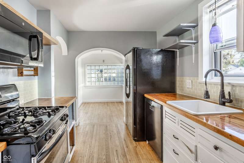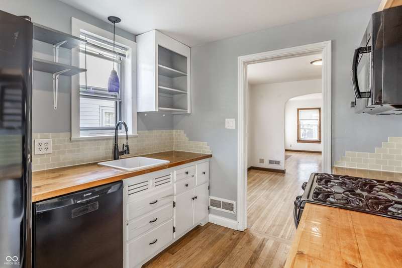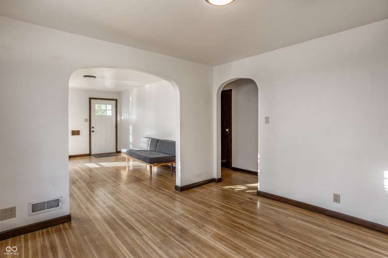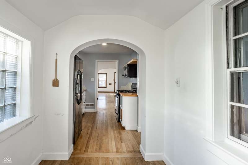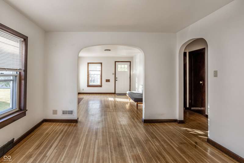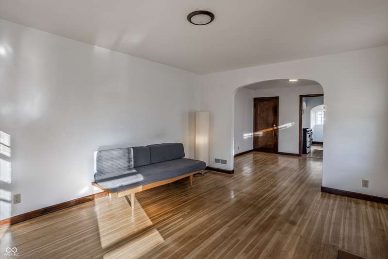 Welcome home to your Garfield Park bungalow. Suffused with natural light, original hardwood floors lead you through the living room and past the cozy brick fireplace. Continue through the arched doorway to the dining room and from there into the kitchen, complete with a charming breakfast nook. The roomy basement has plenty of room for storage and the enclosed back porch easily functions as a mud room or bonus room. This home has seen many updates including: updated bathroom, new roof and electrical updates 2019, new HVAC and washer/dryer 2020, basement dehumidifier and drain pump 2021, new water heater 2022. Located just a few blocks from Indy's iconic Garfield Park and all of the new dining options and shops along the Shelby Street corridor, less than 10 mins from Fountain Square, easy highway access.