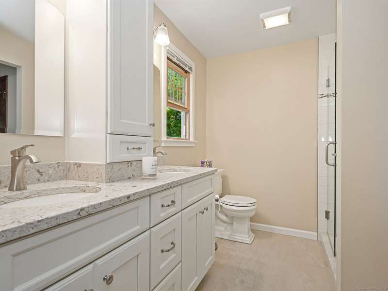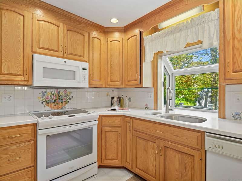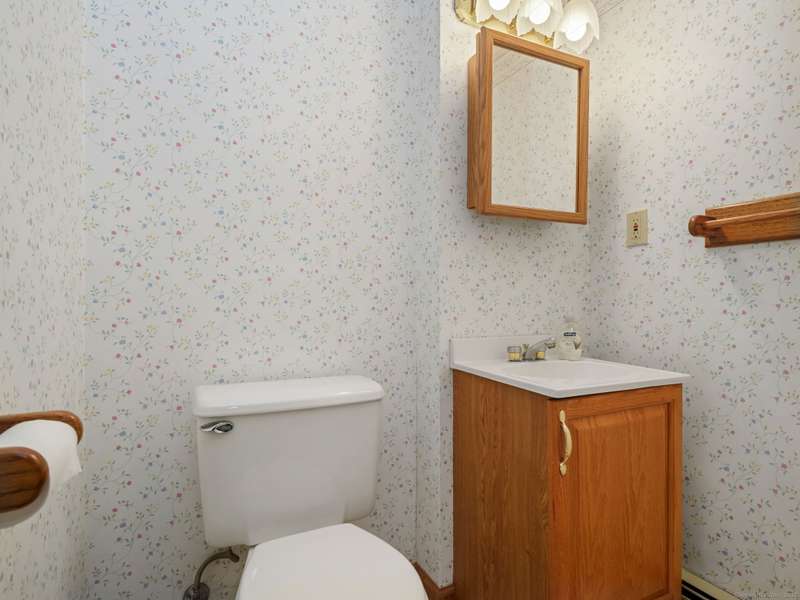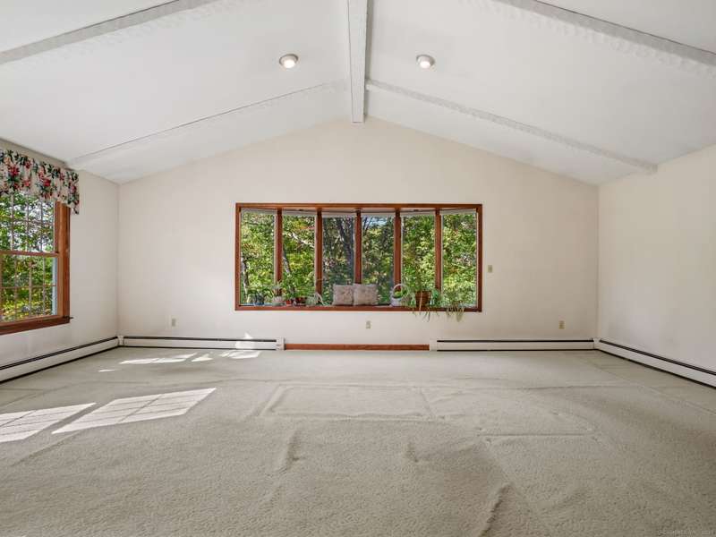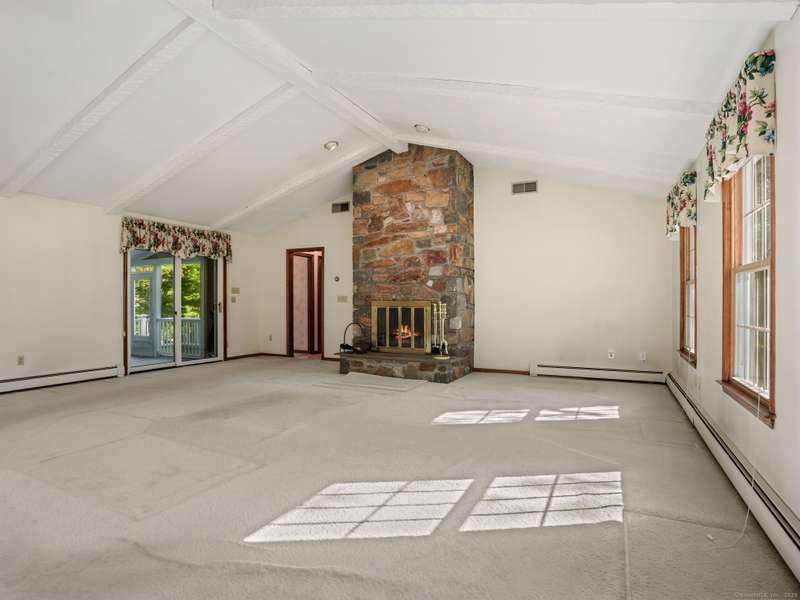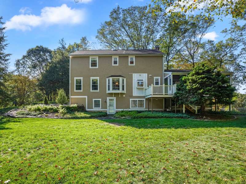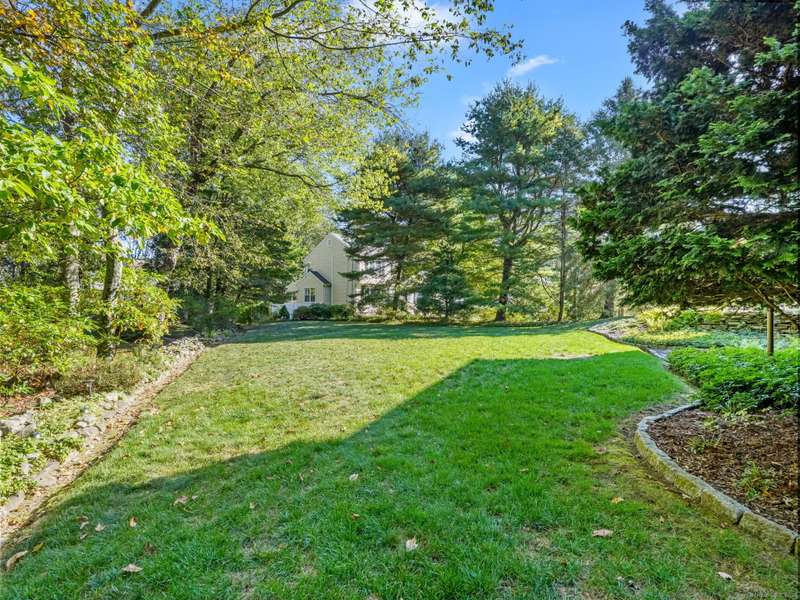 Welcome to 28 Primrose Lane. Drive up to this lovely home perched high on the corner with a beautiful outdoor setting of flowering perennial gardens, multiple rock gardens, woodland areas & flower beds loved by one family for more than 45 yrs. Main level features eat-in kitchen w/built in shelves/desk, D/R, L/R with French doors & great room w/high vaulted ceilings, painted wood beams and a floor to ceiling all stone W/B/F. A trio of windows and large bay window allow the light to stream thru for plants to thrive. Sliding glass doors lead to a large screened deck with overhead fan to allow for almost an all year round enjoyment with stairway access to rear of property. Main level powder room. Upper level primary bedroom ensuite with sliding barn door to bathroom, 3 more bedrooms with large closets and full bath. Hardwood flooring on main & upper floors. Lower level is ideal for den, play/study area, or for overnight guests. A separate alcove creates a cozy office space perfect for thos