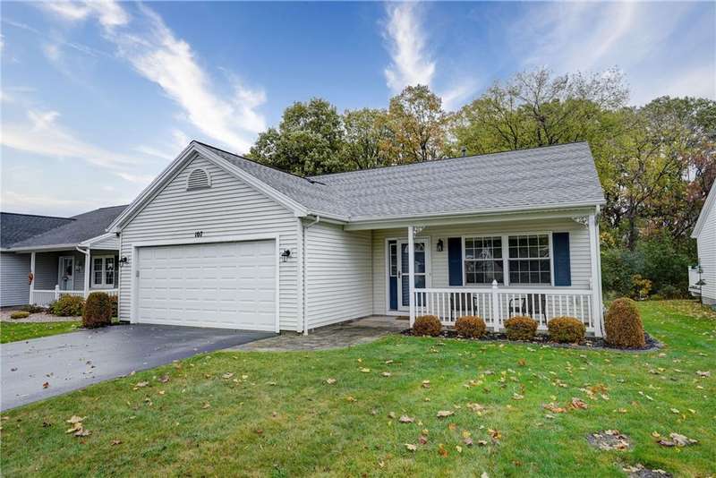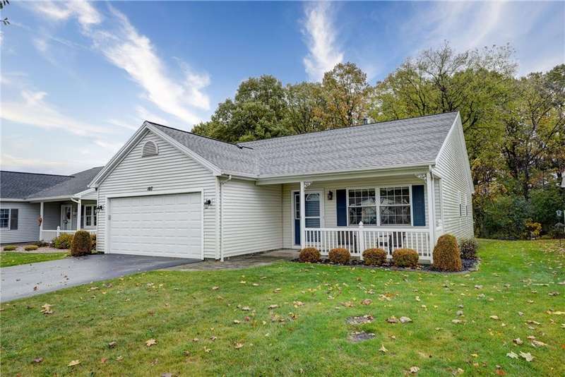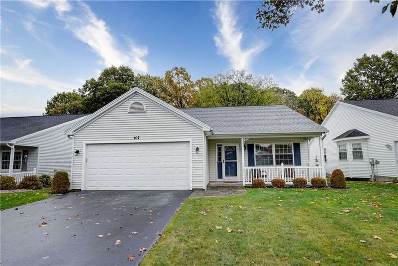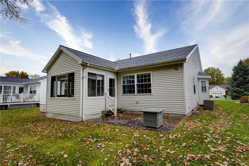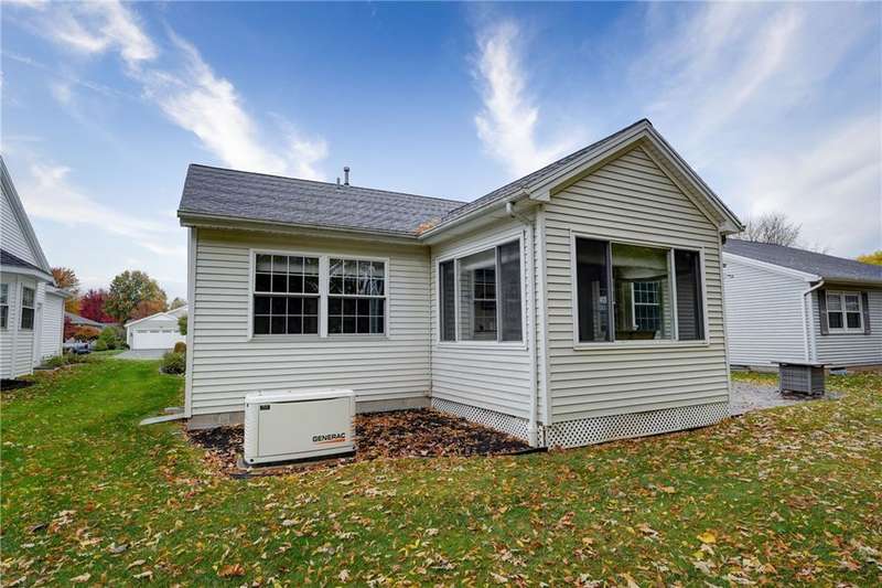 Elegant Living in a Sought-After 55+ CommunityExperience refined comfort and style in this impeccably maintained 2-bedroom, 2-bath home, ideally situated in one of the area's most desirable active adult communities.A vaulted ceiling greets you in the foyer and living room, creating a grand sense of space and light. The open-concept living and dining areas are perfect for both entertaining and everyday living, blending sophistication with effortless functionality.The kitchen boasts brand-new (2024) stainless steel appliances, complemented by freshly painted interiors throughout most rooms. The expansive primary suite offers a serene retreat with a private full bath and generous closet space.Relax and unwind in the inviting three-season Florida room, where the tranquil wooded view provides the perfect backdrop for morning coffee or evening gatherings. Partially finished sq ft in basemt rec room adds more delightful space!Additional premium features include a whole-house generator, all major mechanics under 5 yrs, roof 2017yr, a highly desired two-car garage with new garage door in 2021yr, and a prime location just across from Roberts Wesleyan University ? within walking distance to town and a local favorite, Jitters Cafe.Discover luxury, convenience, and peace of mind in this exceptional home ? a rare opportunity in a truly sought-after 55+ community. Delayed negotiations through 10/27/25 at 5PM.