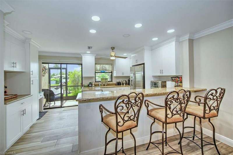Beautifully remodeled two bedroom, 2 and 1/2 bath townhome with direct gulf access and private boat lift! The lower level features porcelain plank tile, an open floor plan, high ceilings and gorgeous canal views. The custom kitchen has bright white shaker cabinets, quartz counters, stainless appliances and a large Island, great for entertaining. Upstairs, you will find both bedrooms, 2 additional baths for added privacy and an additional balcony where you can watch the boats and wildlife along the waterway. Parkway Place condos are centrally located to all that Cape Coral has to offer, shopping, dining and so much more. Being sold turnkey furnished, you can begin your new Florida lifestyle today! SELLER FINANCING OFFERED!