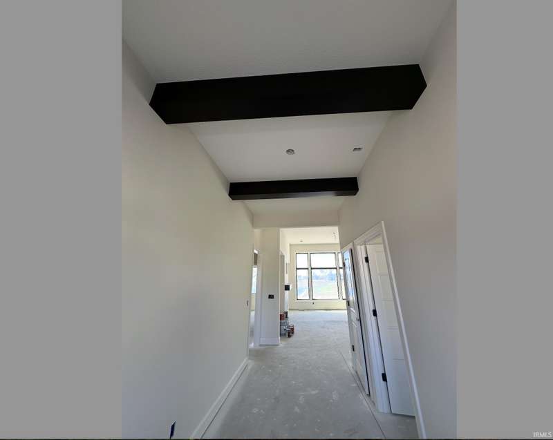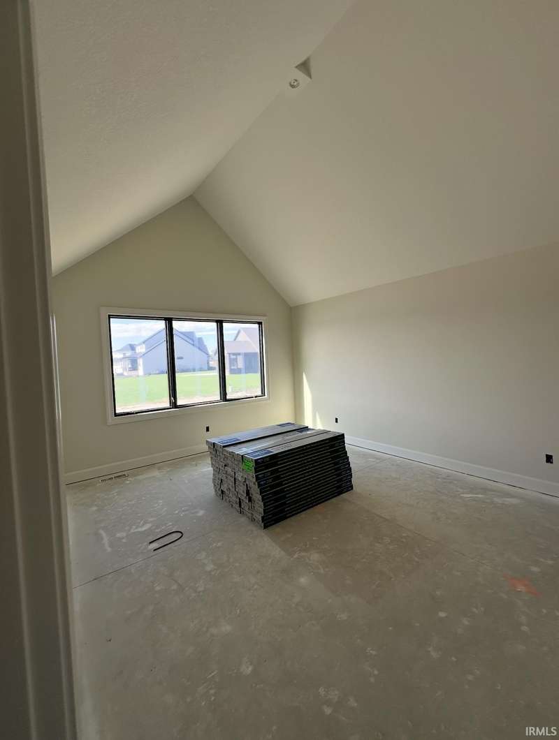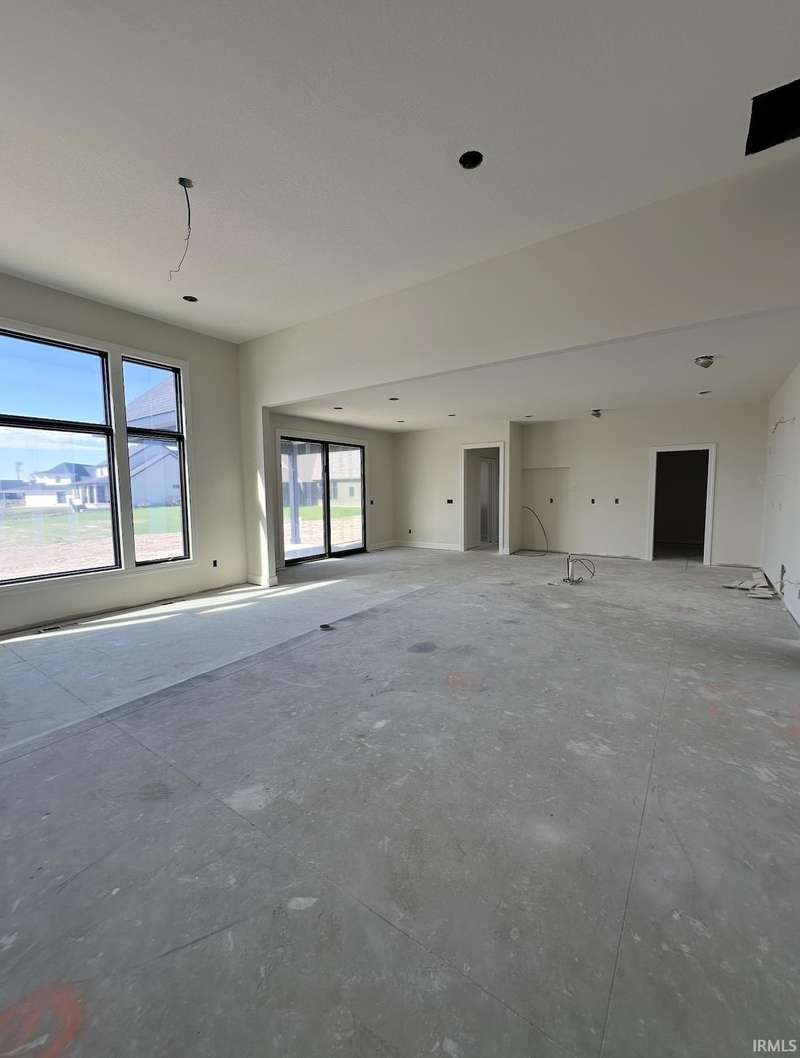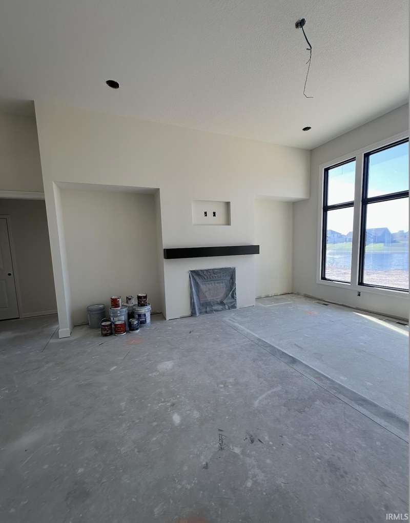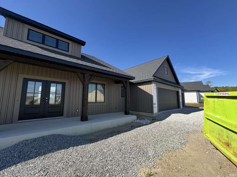 New Construction - Welcome to an exquisite custom-designed ranch by Bob Buescher Homes, set to be completed on December 19, 2025—just in time for the holidays! This meticulously crafted single-story residence boasts 2,237 sq. ft. of beautifully appointed living space, featuring 3 bedrooms, 2.5 baths, an office, and an expansive 3-car garage (816 sq. ft.). The exterior exudes classic charm, highlighted by an oversized front porch, elegant double entry doors, a striking dormer, and a rear covered porch with a soaring cathedral ceiling and extended patio—an idyllic setting for entertaining or unwinding. Step inside to discover an open-concept layout that radiates warmth and sophistication. The great room impresses with an 11’ ceiling height adorned with beams, a stunning fireplace framed by custom built-ins, and expansive windows that frame breathtaking water views and invite natural light inside. The adjoining kitchen and dining area are designed for both style and functionality, featuring custom maple cabinetry in a serene cream finish, an 8x5 hickory island with a rich coffee bean stain, and a spacious walk-in pantry complete with a built-in coffee bar. The kitchen perimeter and island are adorned with beautiful LG Clarino Brushed Quartz tops, making it a true centerpiece of the home. Retreat to the primary suite, a private haven featuring a cathedral ceiling and a spa-inspired bath equipped with a zero-entry custom tiled shower, dual quartz vanity, linen cabinet, and an oversized walk-in closet. A transom window above the vanity invites natural light, enhancing the serene ambiance. Bedrooms two and three, located on the opposite side of the home, are generously sized and share a beautifully appointed full bath. Additional highlights include a conveniently located laundry room adjacent to the primary suite, a stylish half bath with a custom built-in bench and hooks near the garage entry, and a spacious office/den just off the foyer, complete with a glass door for added elegance and privacy. The home is equipped with an irrigation system to maintain a lush landscape and a tankless water heater for energy efficiency. Plus, you'll have access to scenic walking trails nearby, perfect for outdoor enthusiasts. This home masterfully blends quality craftsmanship with contemporary design, offering unparalleled comfort, elegance, and functionality in every detail. Feel free to watch the progress pictures in the MLS as we bring this home to life!