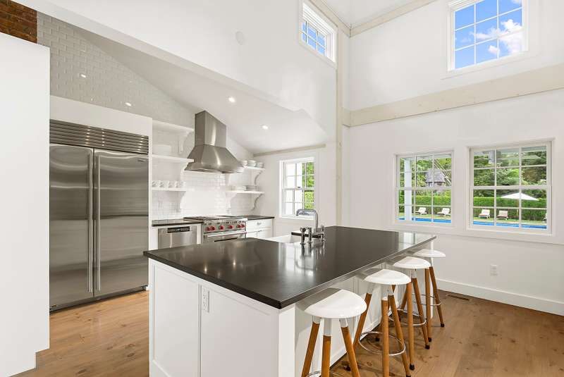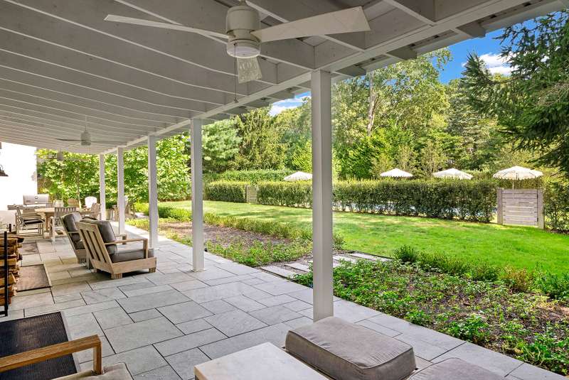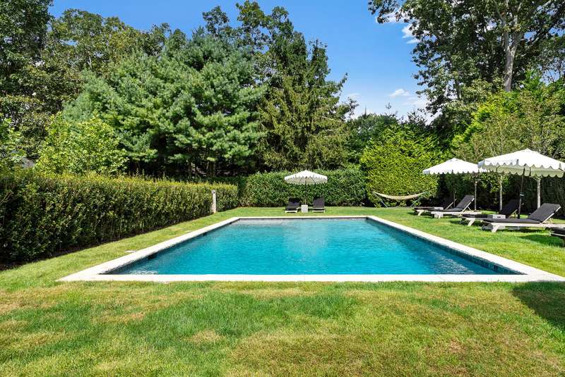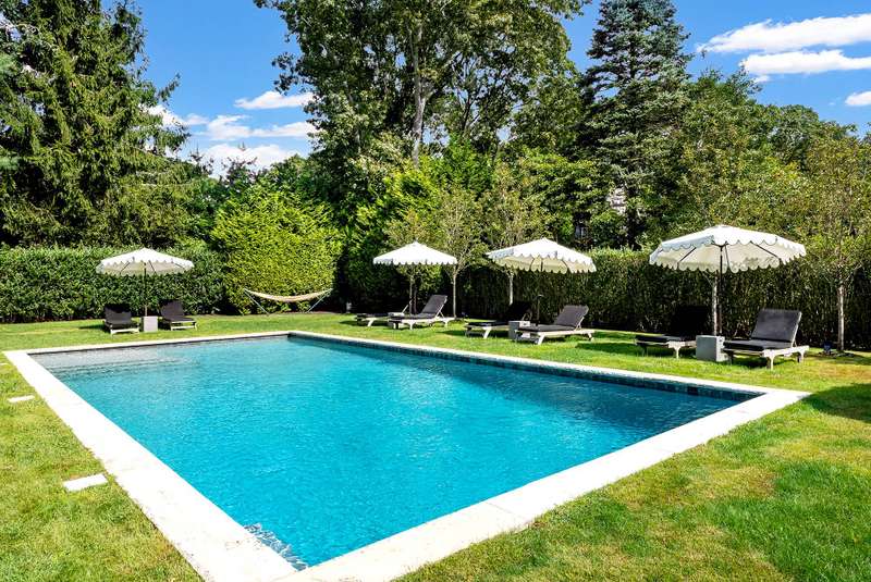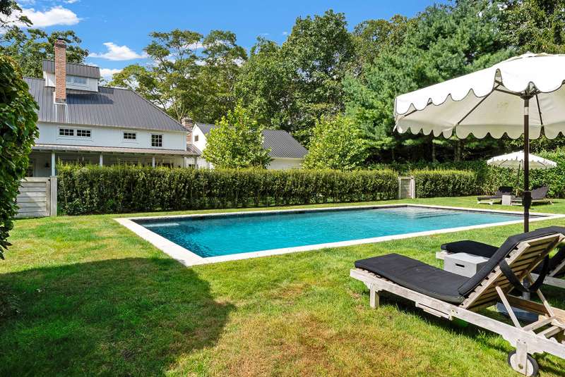 Rental Registration #: 24-114 • Dynamic great room with two story vaulted ceilings • 1st floor master bedroom suite with fireplace • 6 bedrooms • 4 1/2 bathrooms • 3 fireplaces • Cook's kitchen featuring Wolf stove, Subzero refrigerator and wine refrigerator, Bosh dishwasher and Scotsman ice machine • Covered bluestone patio with ceiling fans and dining and seating area for entertaining with fire pit • 2 washing machines and 2 dryers • Indoor/outdoor sound system • Central air conditioning and heating (Nest Thermostat) • Heated 20 X 40 gunite pool (Jandy pool heater with iPhone control) • Beautiful landscaping including extensive privacy screening • Nest locks and thermostat • Housekeeping, handy-person and chef available on request • Town water connection with top-of-the-line water filtration system; garbage disposal • Dogs allowed with owner permission. Listing ID: 737760
