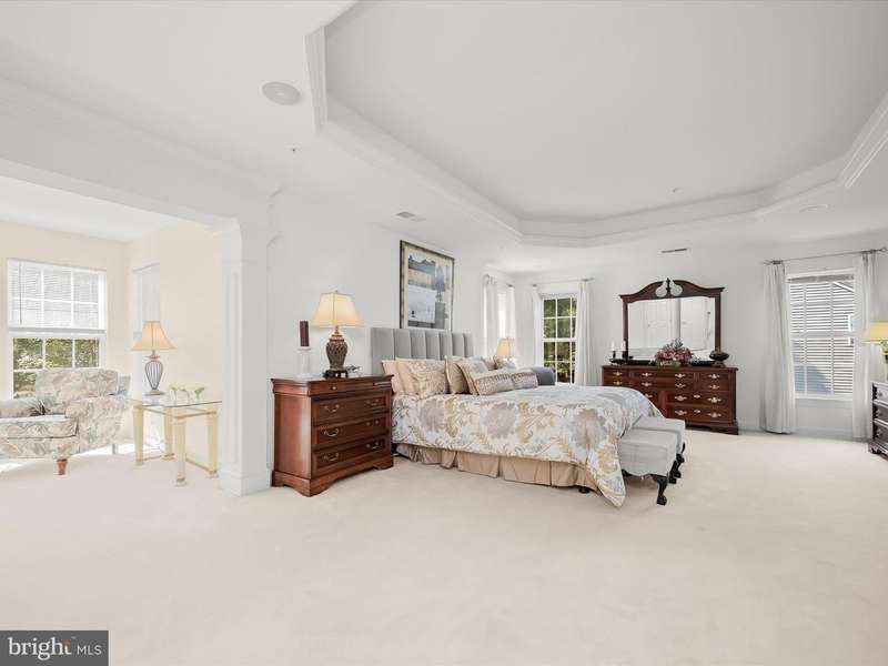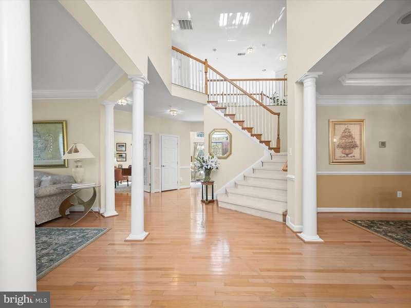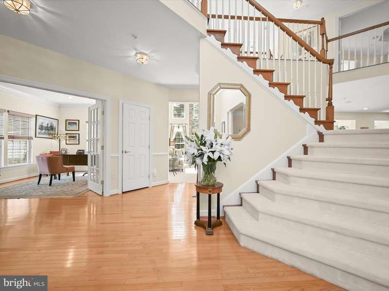 Welcome to this stately brick-front colonial, offering timeless curb appeal and an open, light-filled layout designed for both elegance and comfort. Set on a lovely one-acre lot in a beautiful community, this home is surrounded by mature trees, manicured gardens, and thoughtfully designed outdoor spaces. Step inside through a dramatic two-story foyer with soaring ceilings, hardwood floors, and dual staircases for seamless flow throughout the home. The main level showcases formal living and dining rooms with tray ceilings, chair rail molding, and tall windows that bathe each space in natural light. A private office with French doors provides the perfect setting for remote work or study. The heart of the home is the two-story family room, featuring a floor-to-ceiling gas fireplace with stone surround and expansive windows that overlook the backyard. The gourmet kitchen is designed for entertaining with a center island, rich wood cabinetry, and a suite of appliances including a gas cooktop and double wall ovens. A large sun-filled morning room opens directly to the expansive Trex composite deck, ideal for indoor-to-outdoor gatherings. Upstairs, the luxurious primary suite boasts a tray ceiling, a spacious sitting area, multiple walk-in closets, and a super bath with dual vanities, a soaking tub framed by a picture window, and a glass-enclosed shower. All three additional bedrooms feature their own en-suite baths, providing privacy and comfort for family and guests alike. The lower level offers tremendous flexibility with an unfinished basement featuring two walk-out doors, a rough-in for a full bathroom, and plenty of space for future expansion, perfect for recreation, guest accommodations, or a home gym. Conveniences include a well-equipped laundry room with washer/dryer, utility sink, and upper cabinetry, plus a laundry chute for added ease. Outdoors, enjoy multiple gathering spaces including a large deck, stone patio, and open lawn ideal for play or relaxation. The three-car side-load garage and extended driveway offer ample parking. This exceptional property seamlessly blends timeless style with modern convenience, offering a lifestyle of comfort, luxury, and ease.