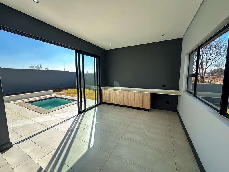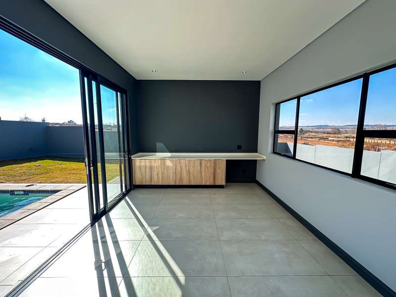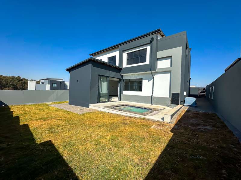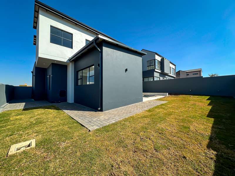 ON SHOW: Viewings by appointment NO TRANSFER DUTIES Welcome to this newly developed masterpiece nestled in the sought-after Fountainbrook Estate. Designed for effortless living and entertaining, this contemporary home perfectly combines style, functionality, and comfort. As you arrive, you’re greeted by two spacious garages and ample parking for guests. Step inside to discover a light-filled open-plan living area that seamlessly connects every space. The designer kitchen features a centre island, sleek finishes, and a private scullery, flowing effortlessly into the dining area and inviting lounge. Entertain year-round in the enclosed patio with a built-in braai, where sliding doors open out to your sparkling swimming pool and landscaped garden—ideal for relaxing or hosting family and friends. Downstairs also offers a convenient guest bathroom and a practical storage room to keep everything organised. Upstairs, you’ll find two well-appointed family bedrooms sharing a full bathroom, while the impressive main bedroom offers a tranquil retreat with a luxurious en-suite bathroom and a spacious walk-in closet. This exceptional home is the perfect blend of contemporary design and everyday comfort—ready for you to move in and make it your own. Contact us today to arrange your private viewing of this remarkable property. Fountainbrook Estate – Live Where Life Happens. Nestled in a secure, community-oriented estate, residents enjoy: - 24/7 manned security - A clubhouse and communal swimming pool - Landscaped parks and braai facilities - Direct access to The Red Barn – explore fresh produce markets, cycling trails, workshops, and weekend family fun - A new shopping center under development nearby for ultimate convenience Additional Info: - Pet-friendly (Subject to HOA approval – max 2 dogs or 2 cats. Dogs must not exceed 30cm in height at maturity) - Estimated rates and levies