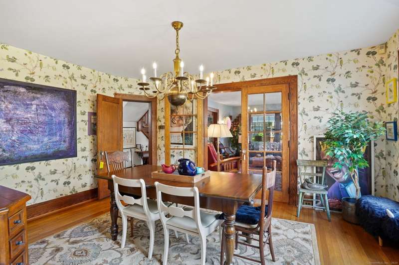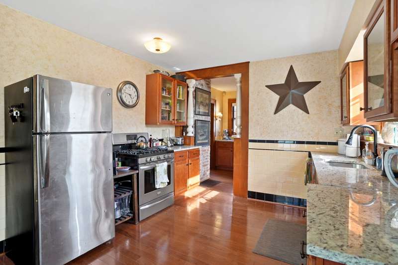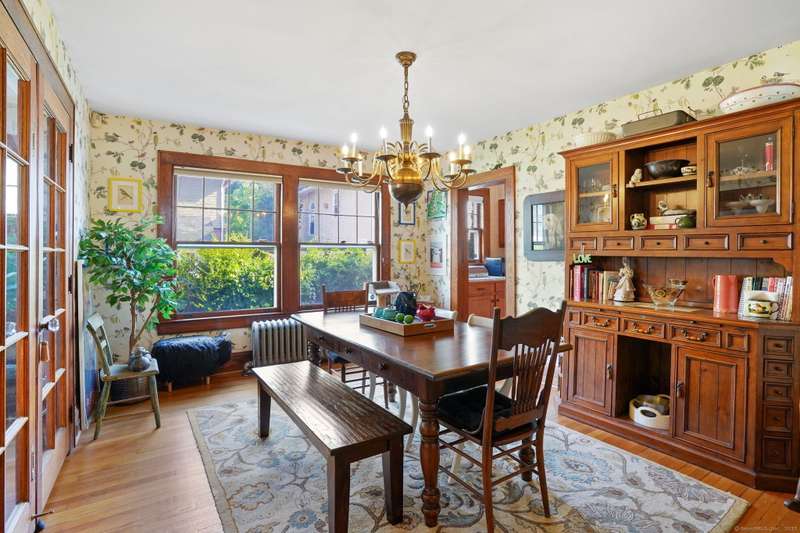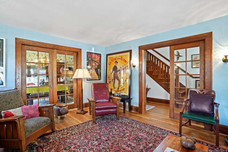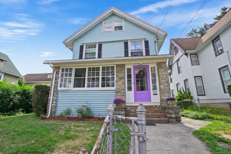 Discover the charm of this exceptional Brooklawn Colonial, a true gem built in 1907 that embodies the essence of Arts and Crafts architecture. This beautifully preserved home boasts original wood floors and intricate wood accents throughout, exuding authentic character at every turn. The welcoming enclosed front porch invites you into the main level, where you'll find soaring ceilings, elegant French doors, and a cozy fireplace in the living room. The main floor also features a formal dining room, spacious kitchen and a full bath for your convenience. Ascend the graceful wooden staircase to the upper level, where four generously sized bedrooms and a second full bath await, offering ample space for guests or a home office. The level backyard is a private oasis, complete with a border garden and a fully fenced yard, perfect for outdoor enjoyment. The property also includes a one-car garage, accessible via a shared driveway. Located just minutes from the vibrant Downtown Bridgeport, Black