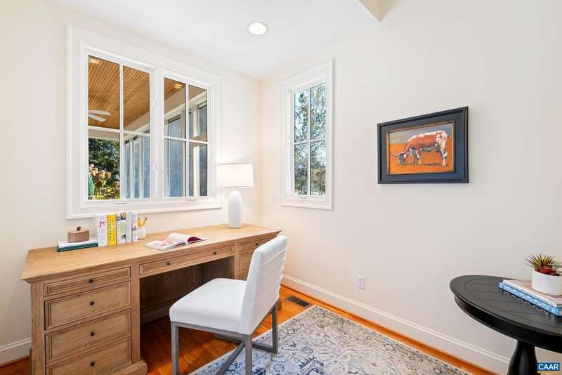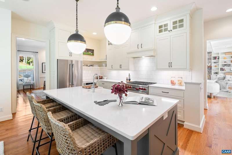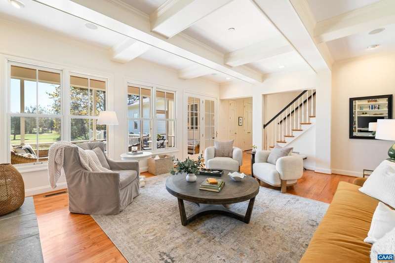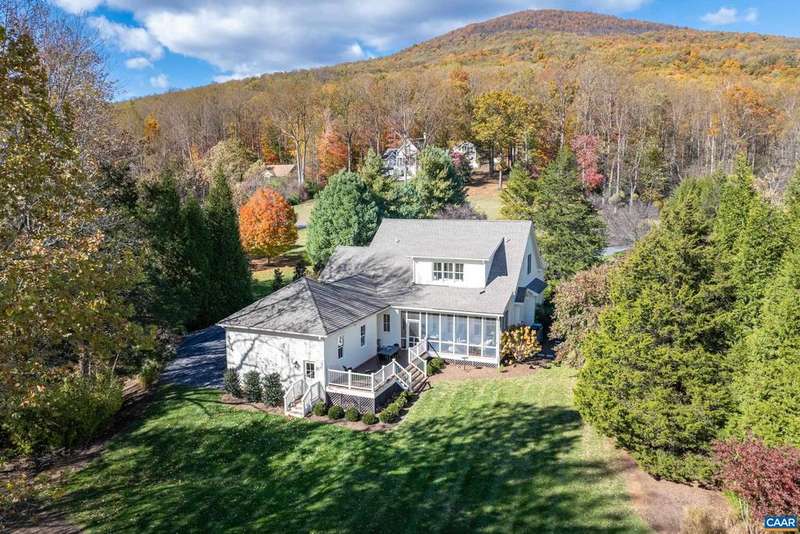 ** Open House - Sat 11/8 & Sun 11/9, 1?4 PM ** Absolutely gorgeous! Beautifully renovated Stoney Creek farmhouse with a first-floor primary suite on a private, park-like 1.3-acre lot with stunning mountain and golf course views. Designed for seamless indoor/outdoor living, the home opens to a wide wraparound porch perfect for relaxing or dining al fresco. Inside, enjoy gleaming hardwood floors, 10-ft ceilings, and custom built-ins. Main level features a serene primary suite with bay window & luxurious bathroom, a chef's kitchen with 6-burner Wolf range, quartz counters, and 9-ft island, a keeping room, "cookbook nook," dining room, home office, mudroom, laundry, powder room, and a large family room with stone fireplace, coffered ceiling, and wall of windows overlooking the mountains. French doors open to a screened porch and adjoining deck with propane hookup for entertaining. Upstairs offers three bedrooms (one with spectacular views), two baths, pajama lounge, and ample storage. Wintergreen's Stoney Creek community offers golf, skiing, pools, lake access, trout fishing, hiking, a spa, and more?a true four-season lifestyle! Whole-house Generac generator included for peace of mind.