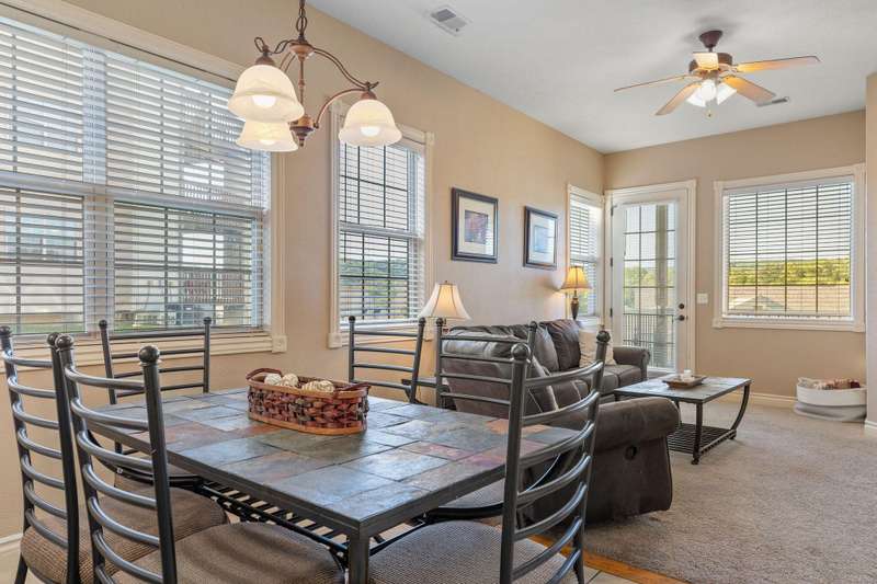 Beautifully maintained 2-bedroom, 2-bath condo offering just over 1,000 square feet of comfortable living space in a prime Branson location. Situated just a stone's throw from Table Rock Lake and only a quick holler from Silver Dollar City, this property provides convenient access to all of Branson's top attractions, dining, and entertainment.The features a combined dining and living area, fully equipped kitchen, and a private balcony perfect for relaxing or entertaining. Both bedrooms offer walk-in access to their own bathrooms, providing comfort and privacy for guests or family.Residents enjoy access to community amenities including a swimming pool, playground, basketball and tennis courts, plus nearby lake access, adding even more value and enjoyment to this property.Ideal for use as a primary residence, vacation home, or nightly rental investment, this condo combines low-maintenance living with an unbeatable location.