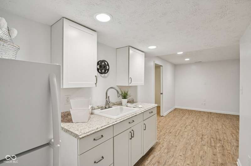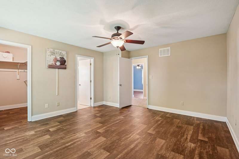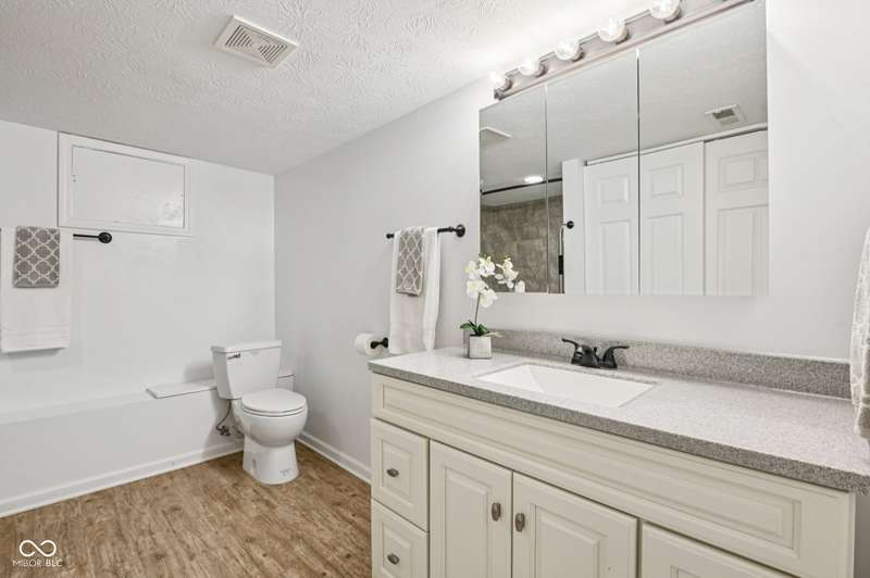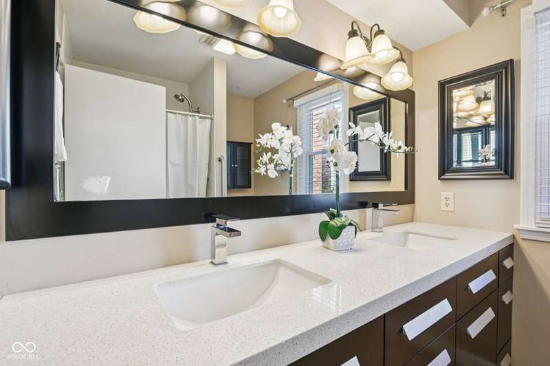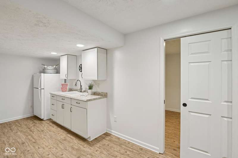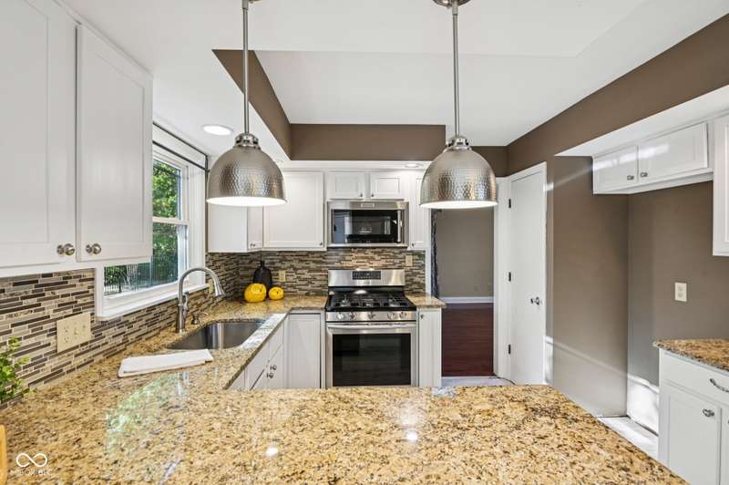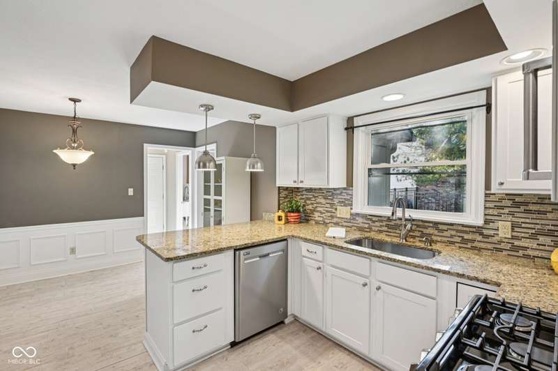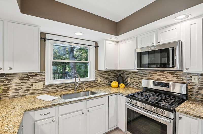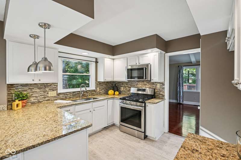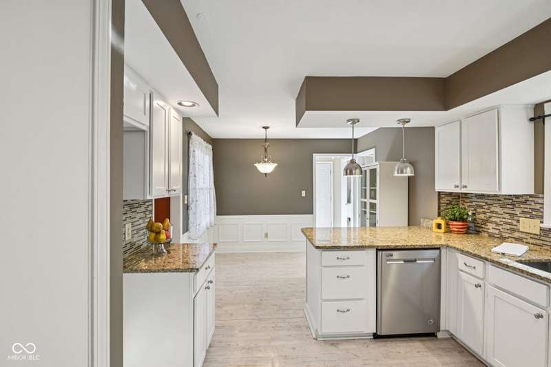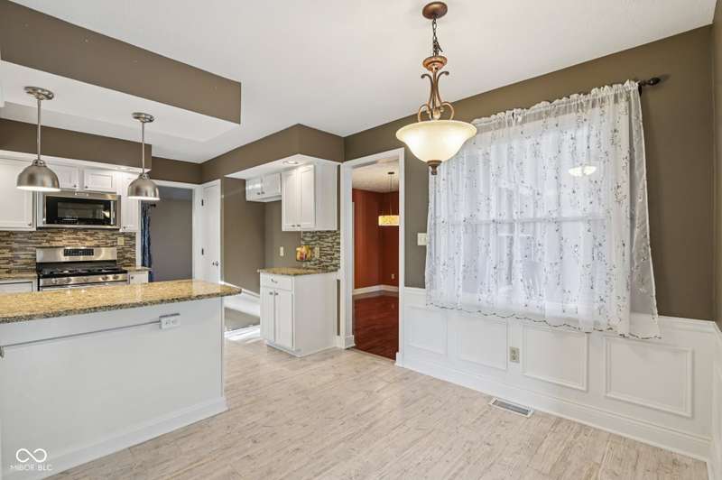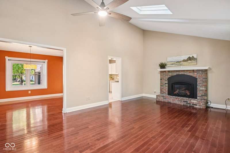 Don't miss this Fabulous 3 bedroom 3.5 bath custom brick ranch featuring finished lower level w/new full bath and kitchenette in highly desirable Castle Cove with neighborhood pool, playground, tennis/pickleball, park, clubhouse * Huge great room features vaulted ceilings w/skylights, open staircase to the lower level, new Mendota sealed gas fireplace, new engineered hardwoods to match elegant dining room and entry that opens to updated kitchen and breakfast room w/breakfast bar, granite counter tops, glass tile backsplash, white cabinets, vinyl flooring & newer stainless steel appliances! * Dream laundry and pantry just added with cabinet space and folding area * Large primary suite overlooking backyard has updated walk-in tile shower & double sinks! * Two additional bedrooms one with built ins for office * Hall bath has been updated with walk-in seated tub * You will love entertaining w/huge rear yard with fenced in area and multi level deck with lots of mature trees and planting for privacy! * Lower level has kitchenette new vinyl plank flooring full bath w/shower, rec room and family room * 2 car plus courtyard garage w/service door and cabinets * New driveway, roof/gutters, high efficiency furnace, flooring and much more please check out improvement sheet online.