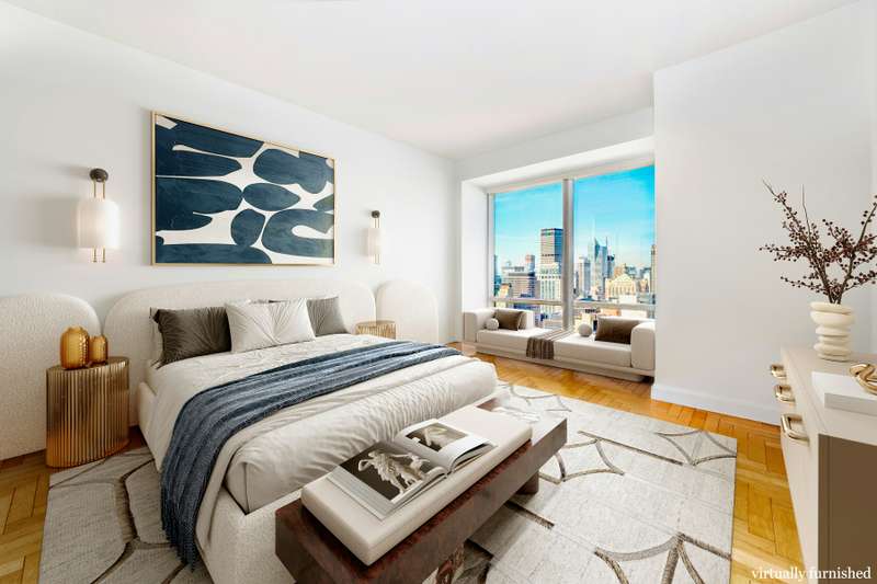 DIPLOMATS WELCOME! You will be captivated by the spectacular views from this split 2-bedroom, 2.5-bathroom, 1,613 square foot sprawling condo with an in-unit washer/dryer, central A/C, and herringbone hardwood floors! Perched on the 56th floor of one of Midtown East's most amenity-rich condominiums (no charge for amenities!), this sun-flooded home boasts soaring ceilings, floor-to-ceiling windows, excellent closet space, and a spacious chef's kitchen with dual access points, stainless steel appliances, and granite countertops! Current tenant vacating May 31st.