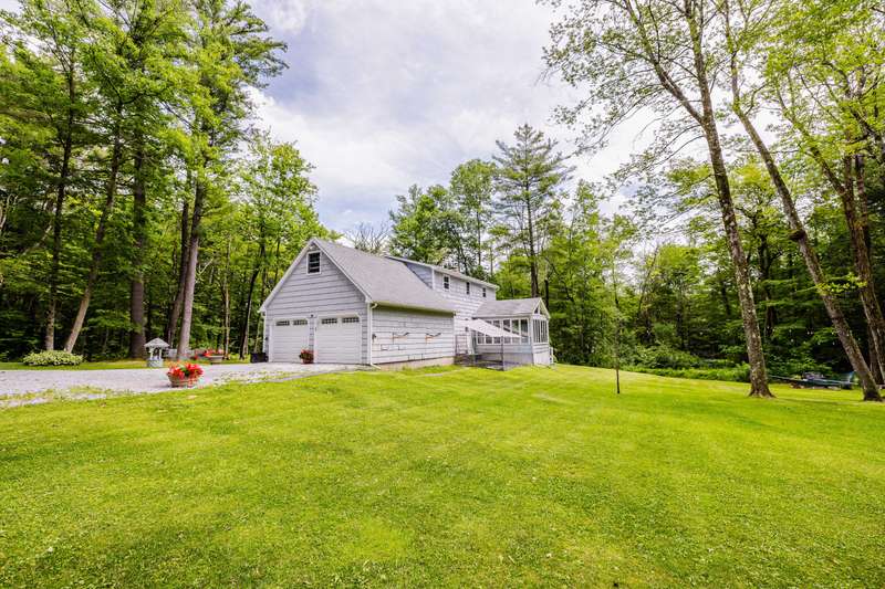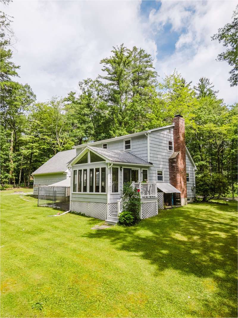 Welcome to Sugarwood Homestead, an adorable Cape-style home tucked away on 2 quiet acres on the backroads of Austerlitz near 4,000 protected acres of Beebe Hill and Harvey Mountain State Forest.Inside, a large living room invites everyone to gather around its oversized wood burning fireplace, while the window-lined four-season sun porch looks over a beautiful level lawn shaded by mature hardwoods. The renovated kitchen flows into a perfectly proportioned dining room, and the center hall leads to the half bath. The two-car garage is accessed through the kitchen.Upstairs are a large primary bedroom, two smaller bedrooms, an updated full bath, and a 320 square foot finished extra space that can serve as a studio, media room, or extra sleeping space.The finished basement adds more than 700 extra square feet for a gym, laundry room, and hangout space. It's equipped with a circulator wood stove for year-round use.Outdoors you'll find a stone patio, fire pit, EV/RV charger, an outdoor shower, along with woodland trails, stargazing, syrup from your own maple trees, and plenty of peace and quiet. Minutes from Tanglewood, the lively towns of the Berkshires, and under half an hour from five ski resorts, this well-kept home is ideally positioned for outdoor enthusiasts and culture lovers alike.