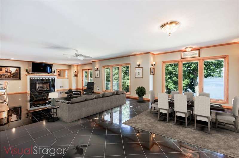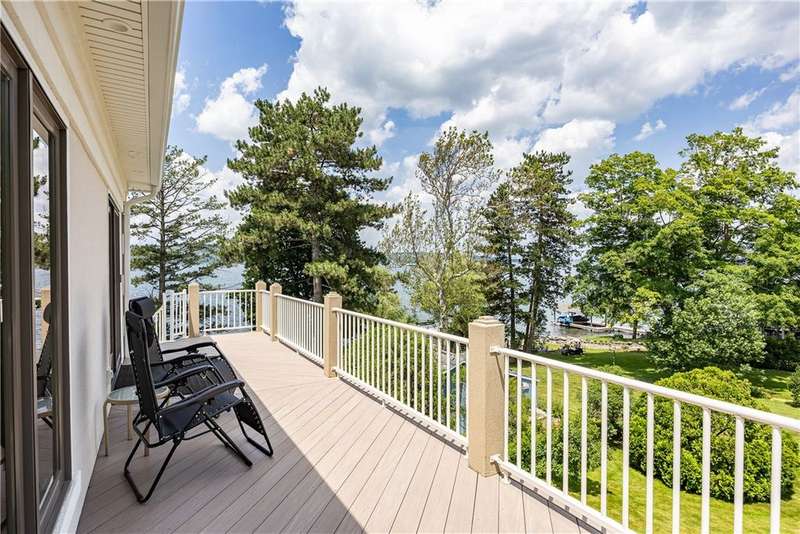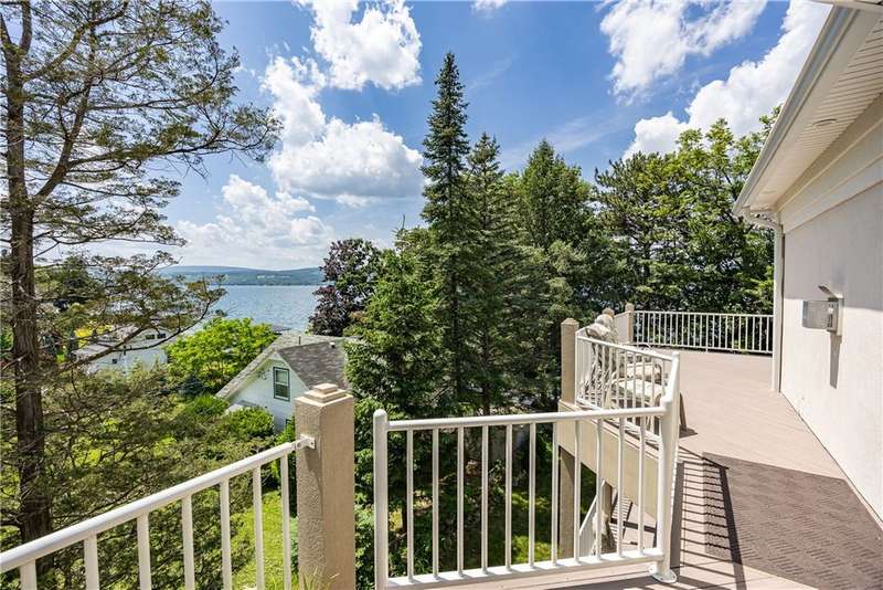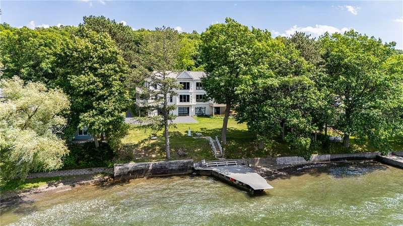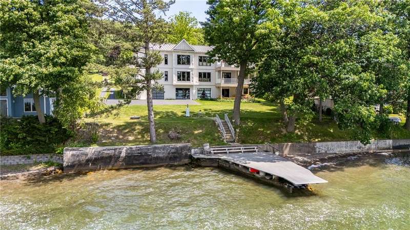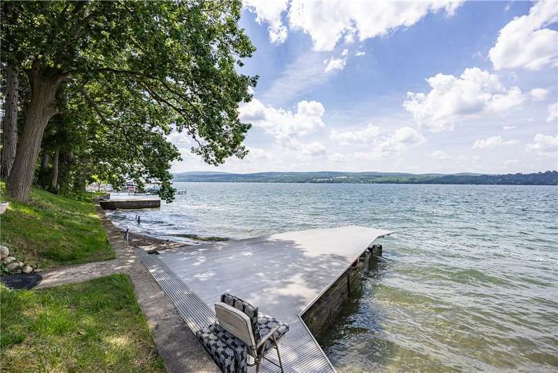 108' Rare, Level Lakefront + Custom 7-Bed, 7-Bath Luxury Home. Canandaigua Lake - Move-In Ready. Step into a showpiece of lakefront luxury. This custom 7,200 sq ft sanctuary (built 2013) sits on a unique level lot - safely "above the road" and never known to flood - and boasts 108 feet of premier Canandaigua Lake frontage. WATERFRONT & OUTDOOR HIGHLIGHTS ARE: Permanent 35'x20' aluminum dock, anchored over the lakes widest shelf, Natural shale beaches on both sides of dock and secure kayak/sailboat storage and solid poured concrete break wall. DESIGNED FOR FAMILY & FRIENDS with Seven separate bedrooms, each with its own fully accessible bathroom (heated granite floors), Two full gourmet kitchens + wet bars + lower level kitchenette + summer kitchen with infrared grill, Natural gas fire pit, three independent decks per level and Spacious elevator with lockout from all levels to decks and garage. PRESTIGE & PERFORMANCE with Triple-pane Anderson windows, closed-cell foam insulation - total utilities $1,700/year, Whole-house automatic Generac generator, Oversized 4+ car heated garage with polyaspartic heated floors, insulated-glass doors, cross ventilation, Elegant oak millwork, crown molding, custom staircases and high-end finishes. WHY THIS HOME CAPTIVATES: Imagine summer evenings by the fire pit, aerial views across Canandaigua Lake, family gatherings in an expansive gourmet kitchen, and effortless access for all ages and mobility levels. This is more than a home - it's a legacy retreat. The square footage difference is per seller.