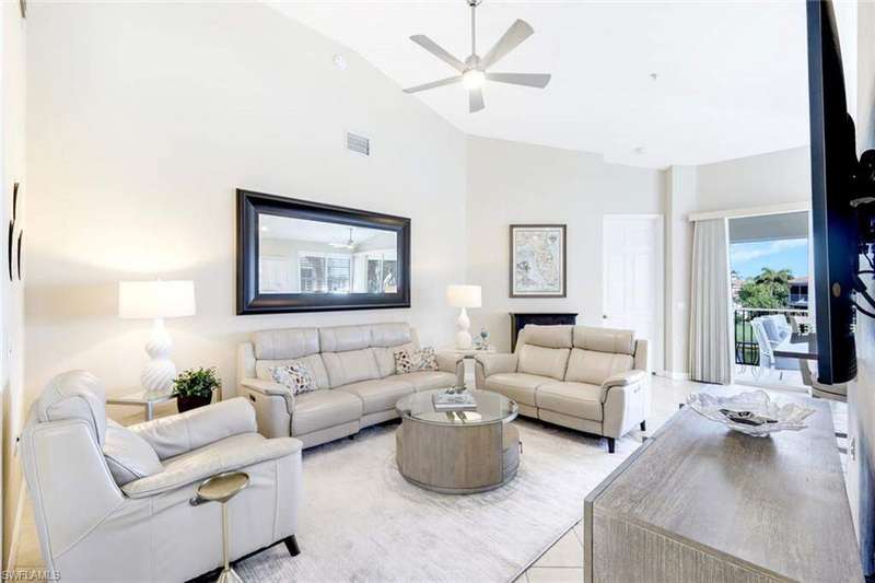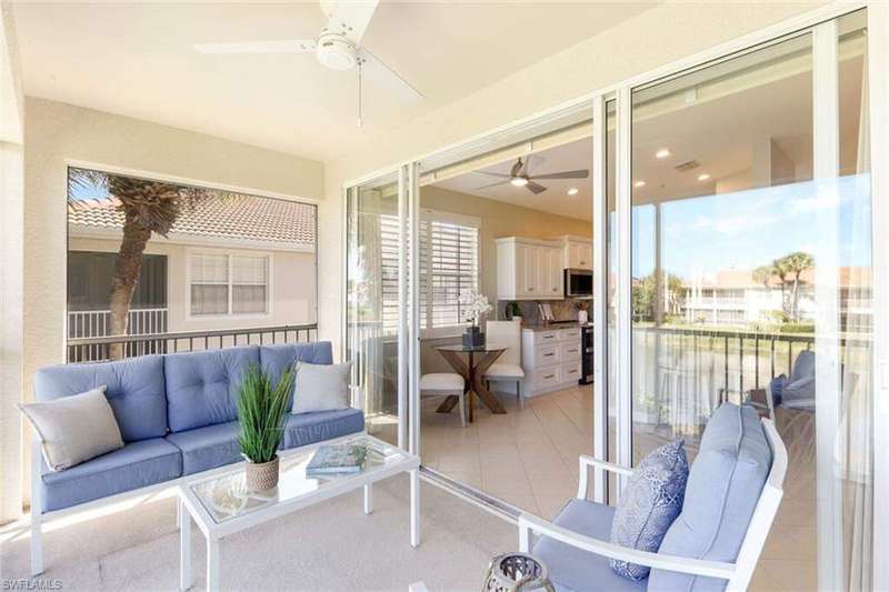 Welcome home to Bridgewater Bay - one of North Naples' most welcoming and beautifully maintained gated communities! This spacious and BRIGHT 2nd-floor lake-view coach home lives large at 1,847 square feet. This sunny END-UNIT offers 3 bedrooms, 2.5 baths, and the layout is designed for both comfort and style. The owners have meticulously updated every inch of this inviting coach home over the past seven years - from a full interior and exterior repaint (garage and garage floor included) to stunning bathroom renovations featuring granite counters, new fixtures (Sinks, hardware, mirrors, lighting, toilets) , and a refreshed primary shower. The remodeled kitchen shines with newly installed rich wood cabinetry, sleek granite countertops and backsplash, GE Profile appliances with a double oven, an R.O. water system (Which also connects to refrigerator & freezer) , and upgraded recessed lighting. Elegant touches continue throughout with new ceiling fans and lighting, and a statement dining room chandelier. Bridgewater Bay is centrally located, just minutes from our SW Florida famous white sandy beaches, dining and entertainment and less than 30 minutes from SW Florida International airport. A truly UNIQUE feature of Bridgewater Bay is that residents have access to Boat / RV storage space. Residents enjoy resort-style amenities including a recently updated clubhouse, fitness center (With steam room and sauna), 2 pools, tennis, pickleball, bocce, and a true sense of community that makes every day feel like a getaway.