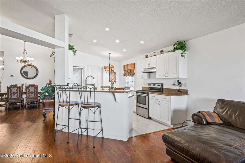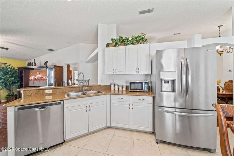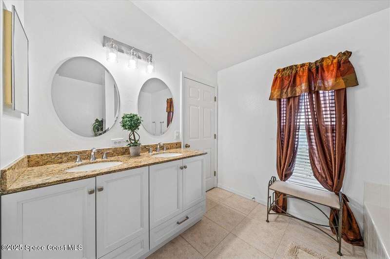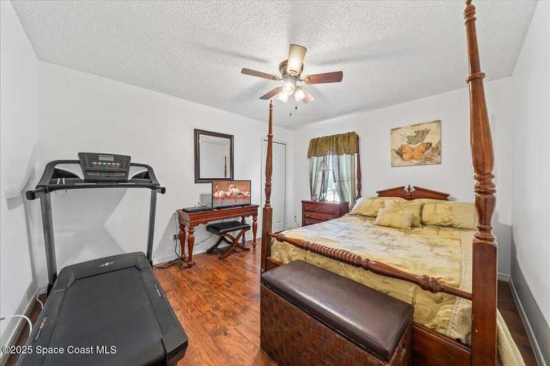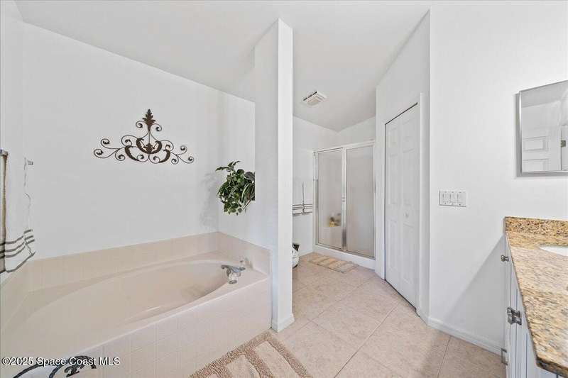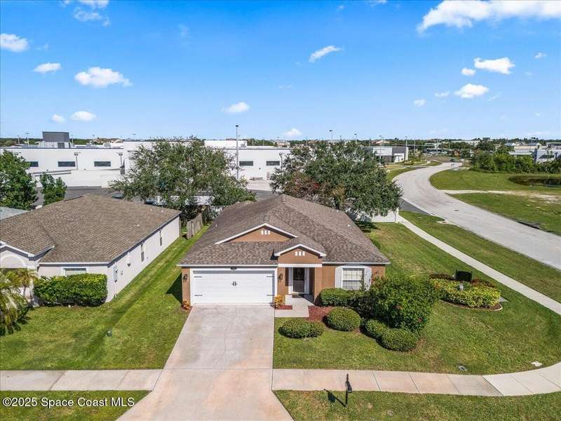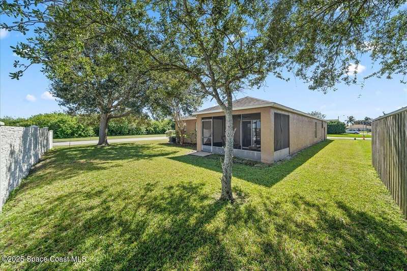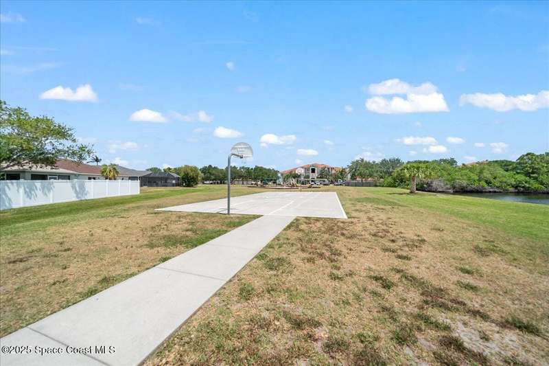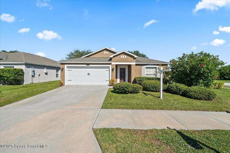 Discover this spacious 4 bedroom, 2 bathroom, concrete block home in the desirable Bayhill at Viera East! Featuring an open floor plan, this property includes an indoor laundry room, a screened lanai and stylish Quartz & Granite countertops. Enjoy laminate wood flooring throughout and porcelain tile flooring in the kitchen, foyer & bathrooms. The spacious Primary suite offers a generous walk-in closet, double sinks, a walk-in shower, and a garden tub for relaxation! For peace of mind, storm shutters are present for all openings! Bayhill at Viera East is ideally situated within walking distance of shopping & dining options! With I-95 just 5 minutes away, the beach is a quick 30 minute drive, Port Canaveral is 35 minutes, and both Orlando International Airport & Disney World are about an hour away! Neighborhood amenities include a pool, playground, & basketball courts! This charming family home is located in a top-rated school zone and is ready for new owners!