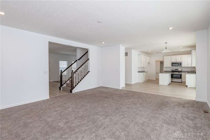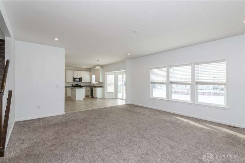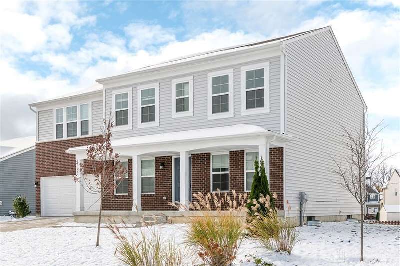 Presenting a modern and spacious home built in 2022, perfectly positioned in the Carriage Trails community. This property boasts over 3,000 square feet of thoughtfully designed living space. The main level features a practical open-concept layout, where the kitchen?equipped with a central island, granite countertops, and ample storage?flows seamlessly into the family room and a sunny morning room. A flexible first-floor room, ideal for a home office or fifth bedroom, is conveniently located near a full bathroom. Upstairs, the primary suite offers a peaceful retreat with a private bathroom and a walk-in closet, complemented by three additional bedrooms and a versatile loft area. The unfinished basement presents a valuable opportunity for customization, already plumbed for a future bathroom.The location combines the tranquility of a well-planned neighborhood with excellent convenience, being just minutes from shopping, dining, Carriage Hill MetroPark, and the Kroger Aquatic Center. This home is also situated within the Bethel Local School District. Don't miss your chance to own a low-maintenance, nearly new home in a fantastic setting.