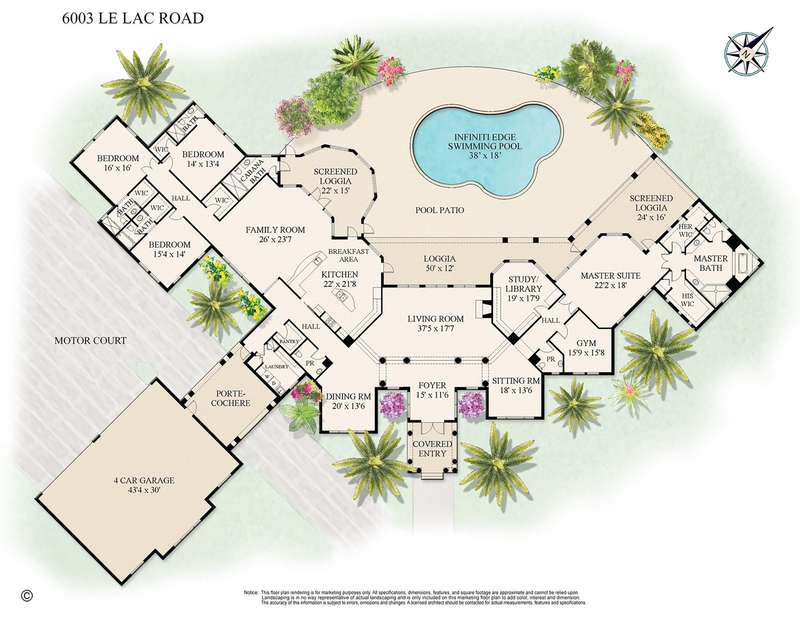 Le Belle Refuge, a 5 Bedroom European Villa sited on a 3 +/- Acre Lakefront Parcel, is located in renown Le Lac which offers world-class security & the utmost privacy w/i minutes to Boca Raton private airport & prestigious private schools. This single level luxury residence offers long lake views and glorious sunsets from nearly every room. The north wing is comprised of the primary suite, a gym & office/optional bedroom & half bath. The south wing is comprised of 3 ensuite guest rooms. The heart of the home is a grand living room, an open kitchen/breakfast area/ family room flowing out to a screened lakefront loggia. Le Lac is comprised of only 32 estates nestled on 200 acres of sprawling lawns & sparkling lakes and is the only community in Central Boca Raton that permits boating.