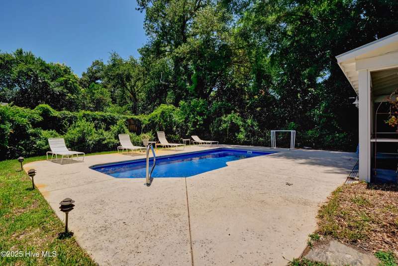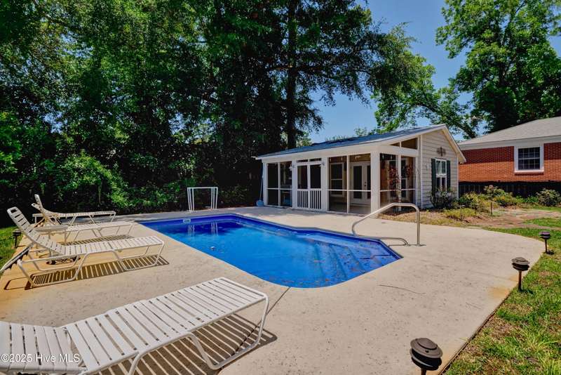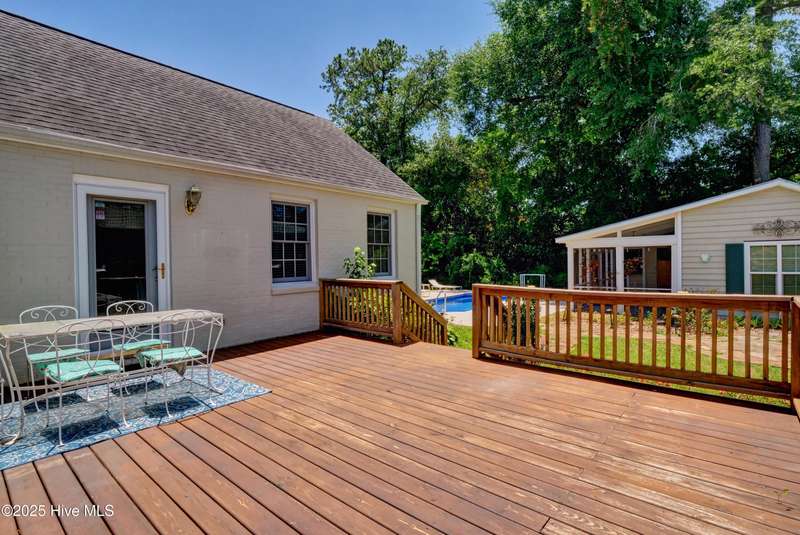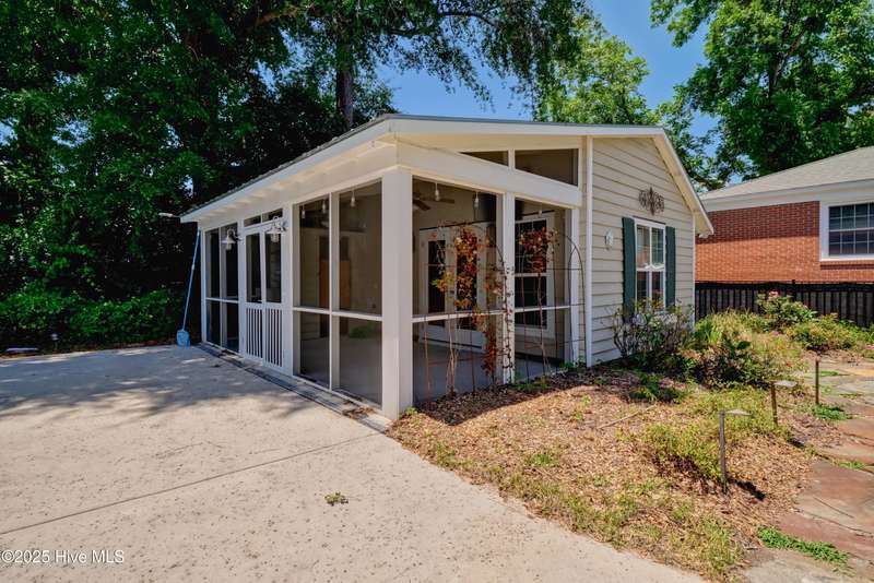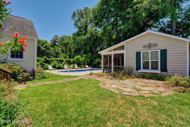 Charming 3 bedroom 2 full bath renovated bungalow with finished pool house in the heart of Wilmington! Original hardwood floors, beautiful mouldings, wood burning fireplace. The renovated kitchen has stainless steel appliances, granite tops, tile flooring and access to the 20x 16 deck. Formal living, dining and bedrooms all on one level. Sizable master and master bath with tile flooring, double vanity, walk in shower with rain head, jetted tub and walk in closet with built ins. Covered screened porch on the front and beautiful fenced back yard features in ground pool and finished pool house with screened porch and a covered outdoor shower and external speaker system. Television and lighting for all your back yard entertainment! Pool house has half bath, granite vanity, heating and cooling system and charming barn door decor. HVAC 2025, New Deck 2025, Roof 2011, Termite Bond, Home Warranty, Crawl space encapsulation 2011. In ground pool and garage remodeled as pool house 2014. Landscape lighting, irrigation on well. Beautiful setting in an established subdivision of Wilmington minutes from upscale dining and shopping, Historic downtown, area healthcare and beaches!