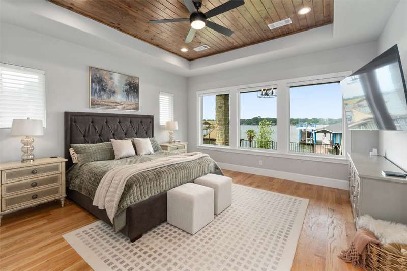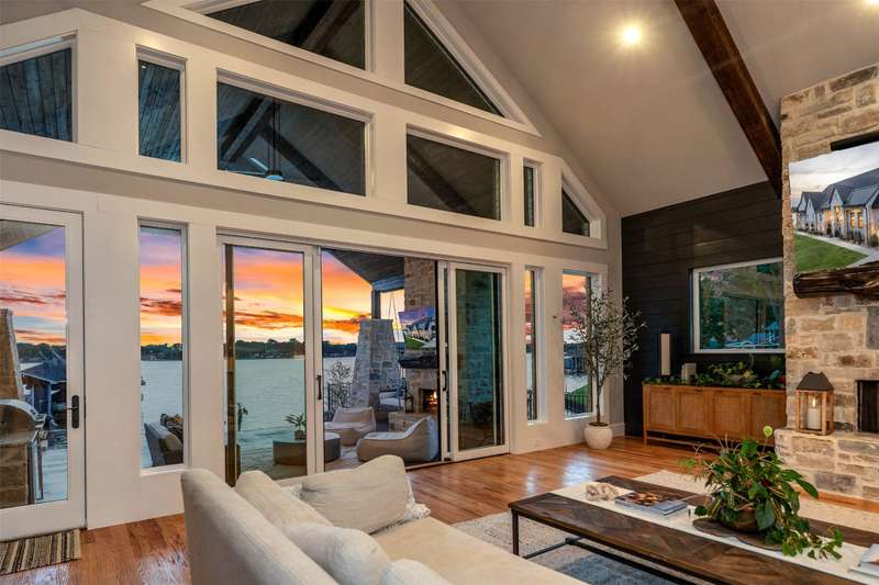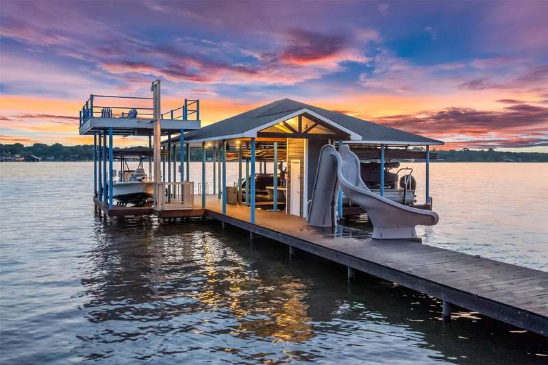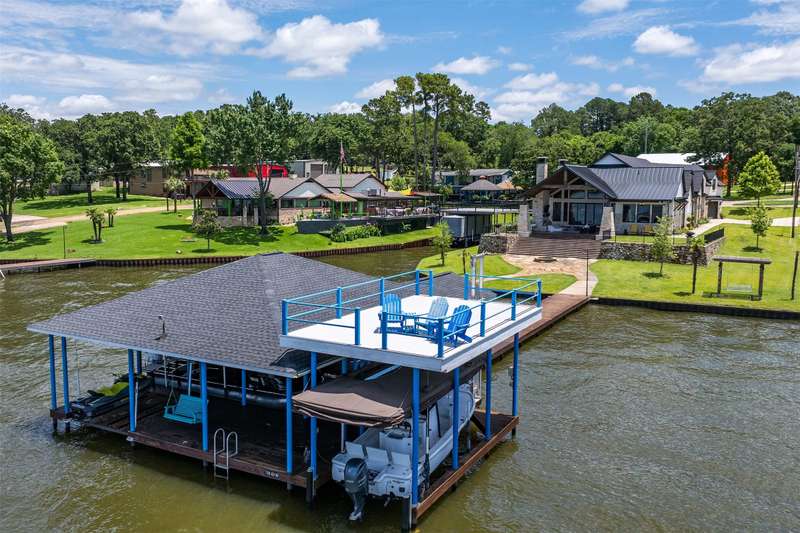 Experience the pinnacle of luxury lakefront living in this extraordinary custom-built home, located in Cedarview Estates, just minutes from town.Built in 2022, this 4,370 sqft masterpiece sits on over 220 feet of prime open water frontage and blends timeless craftsmanship with modern amenities. Featuring three spacious bedrooms, each with its own ensuite bath, this home is thoughtfully designed for both upscale living and entertaining.The chefs kitchen is equipped with a premium appliance package, an oversized center island, abundant custom cabinetry, and a walk-in pantryall designed with functionality in mind.Upstairs, youll find a dedicated office and a spacious bunk room with three built-in queen beds, a full bathroom, and 650 square feet of flexible living space, perfect for hosting.Step outside to your private two-story dock, accessible by elevator and loaded with premium features. Designed for fun and convenience, it includes a jumping ledge, a water slide, a lake and freshwater pump, and three boat lifts, all equipped with touchless covers, making lakeside living as effortless as possible.Additional highlights include hand-scraped hardwood floors, full spray foam insulation, dual tankless water heaters, a fire sprinkler system, Sonos sound, outdoor fire features, a built-in dog bath, glass-encased wet bar, private boat ramp, and much, much more.Whether you're seeking a peaceful escape or an entertainers paradise, this one-of-a-kind lakefront home has it all!