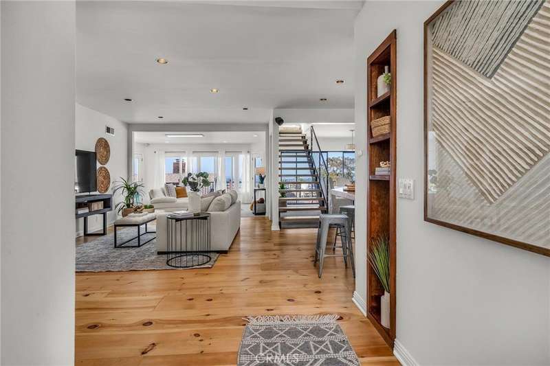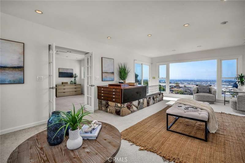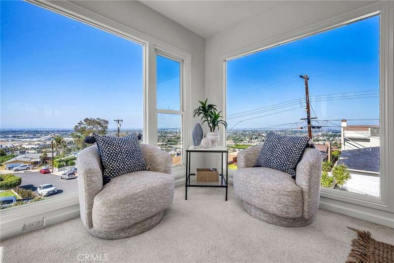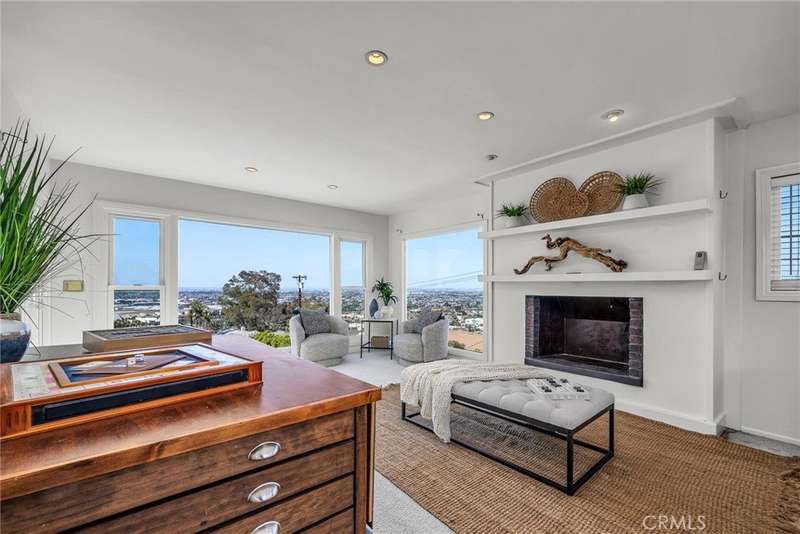 Breathtaking Panoramic City views / Desirable South Torrance Hilltop home. Welcome to this stunning home located on a prime corner lot offering sweeping views from three sides of the property. Enjoy city skyline, mountains, DTLA and Harbor views. This home is truly a rare find. Boasting 4 bedrooms (potentially 5) and 2 bathrooms. This spacious residence offers an open-concept floor plan filled with natural light and unmatched vistas from most rooms and stunning refinished wood floors creating a "WOW" factor the moment you enter. Main floor highlights: Expansive living, dining, kitchen, office and bonus room- perfect for everyday living and entertaining. Updated modern Kitchen with shaker style cabinetry, a stylish oversized peninsula/bar with ample counter and cabinet space. 3 bedrooms, including one currently used as a home office. Remodeled main floor bathroom. Cleverly concealed laundry area within the kitchen. Upstairs Highlights: Versatile bonus/play/work room with fireplace. 2 additional bedrooms, ideal for creating a luxurious primary suite complete with a walk in closet and new bathroom- bring your vision and creativity! Outdoor Living: Beautifully landscaped with easy care turf, fruit trees and manicured greenery. Spacious entertaining deck with custom BBQ area. Perfect for sunset dinners and weekend gatherings. Just minutes from award winning schools, scenic parks, shopping and world class beaches. Don't miss this chance to make this exceptional view home yours.