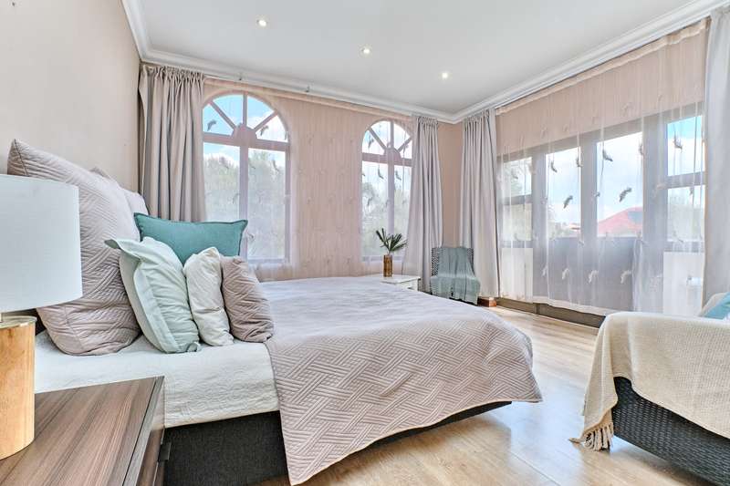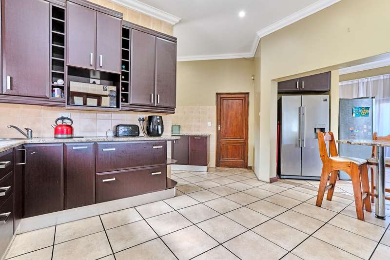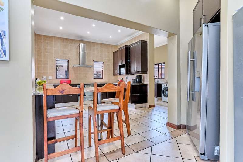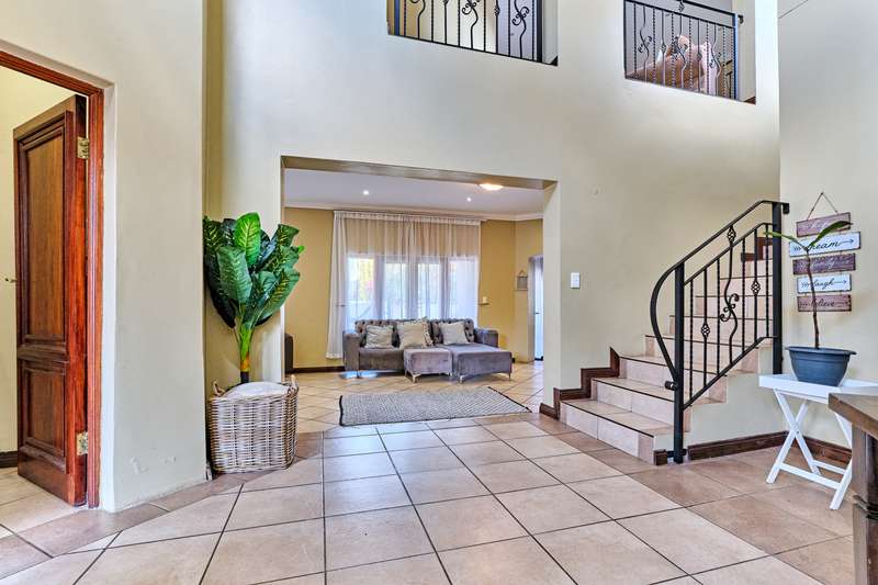 Discover this beautiful and spacious family home nestled in the highly sought-after Montecello Estate in the heart of Midrand. Perfect for those who love to entertain, this property offers a seamless flow from the indoor living spaces to a fantastic outdoor area, all while providing the peace of mind of a solar-powered back-up system. Say goodbye to load shedding and enjoy uninterrupted living! Key Features This practical and well-designed home boasts 4 spacious bedrooms and 4.5 bathrooms. The layout is ideal for a busy family, with three bedrooms and a cozy pajama lounge located upstairs, providing a private retreat. A fourth bedroom is conveniently situated downstairs, perfect for guests or a home office. The Heart of the Home The massive, modern kitchen is a chef's dream. It features a separate scullery and pantry, ensuring plenty of storage and workspace. There's ample room for a double-door fridge and three appliances. The kitchen seamlessly flows into the open-plan dining room, TV room, and lounge, creating a central hub for family life and entertaining. Outdoor Living & Estate Amenities Step outside to your own private paradise. The home offers two patios and a dedicated braai area, making it easy to host gatherings and enjoy the great outdoors. The large yard includes a trampoline, providing a perfect play area for kids. You'll also find an automated double garage and 6 visitors parking spaces, ensuring there's always room for your guests. Beyond the home, Montecello Estate offers an exceptional lifestyle. The complex features a superb clubhouse, a refreshing swimming pool, a tennis court, and beautifully maintained water features. This secure estate is perfect for family walks and runs, allowing you to enjoy a carefree lifestyle. Secure & Convenient Security is a top priority in this estate, with a tight and strict access control system providing ultimate peace of mind. The location in Midrand is convenient, offering easy access to major routes, schools, and shopping centers. For all viewings, contact Bobby, your Midrand Real Estate Specialist.