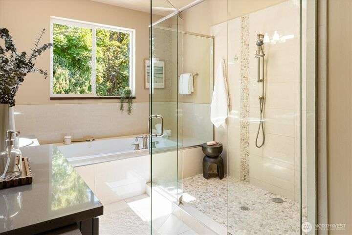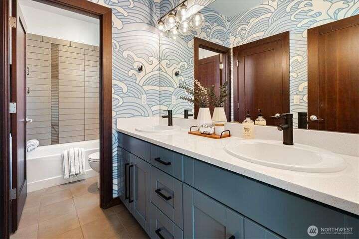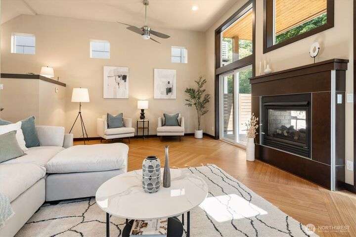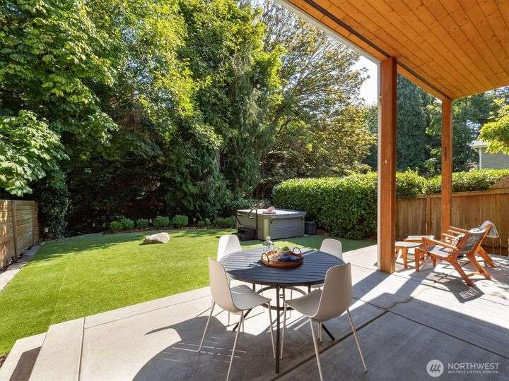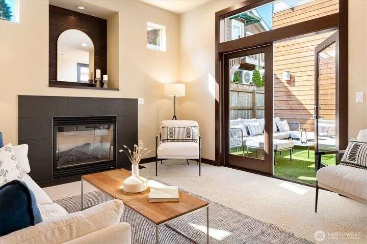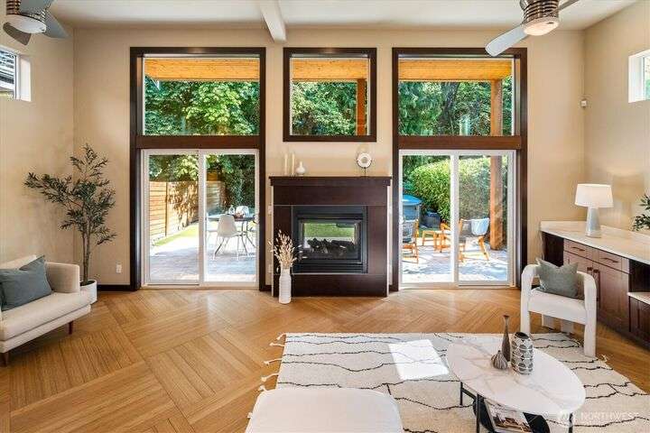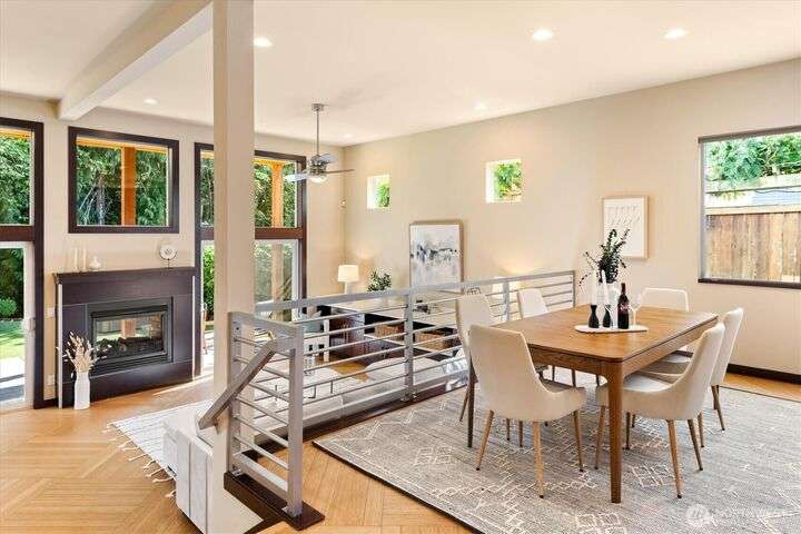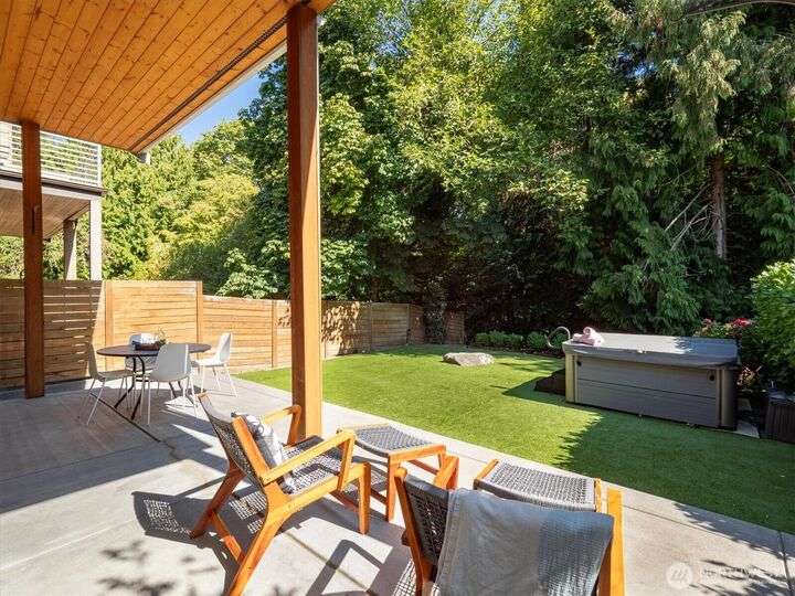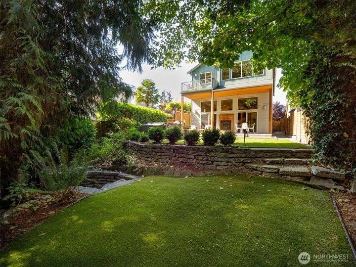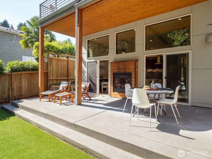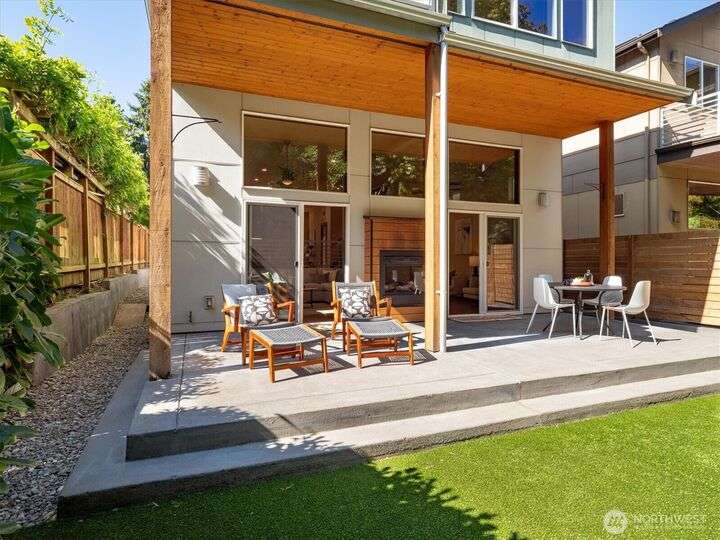 Welcome to this beautiful home filled with soaring ceilings, natural light, and spaces made for entertaining. The kitchen is the heart of the home with abundant counters and a generous island, flowing seamlessly into the dining room and cozy sunken living room. Entertain year-round on two covered patios, one with a double-sided fireplace and gas hook-up for effortless grilling. Upstairs, relax in the peaceful primary suite, joined by two bedrooms and a full bath. A versatile bonus room with full bath is ideal as a 4th bedroom, office, gym, or play space. The 2-car garage offers storage. The private lot backs to a wooded green space with room to garden, play, or simply enjoy nature.
