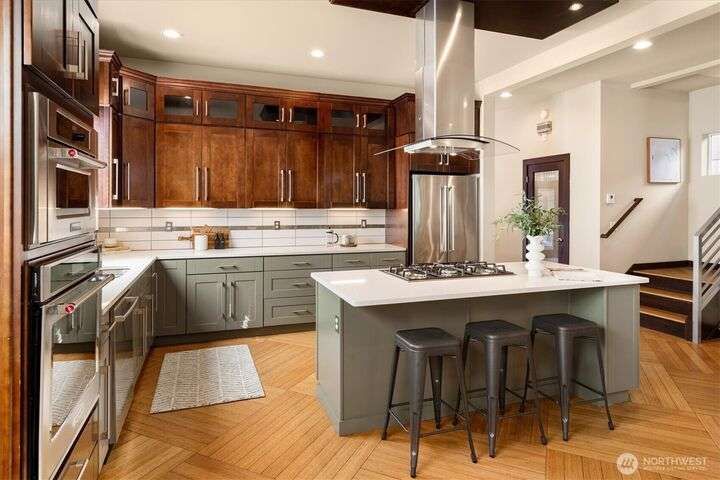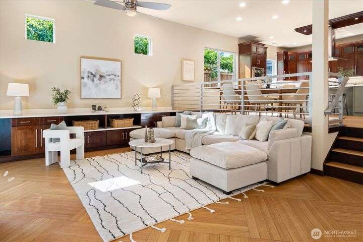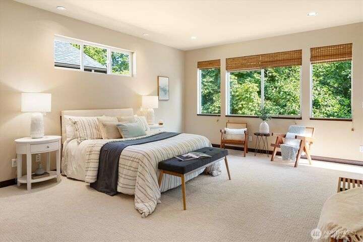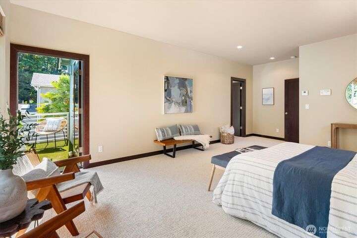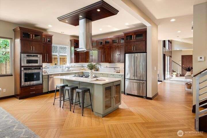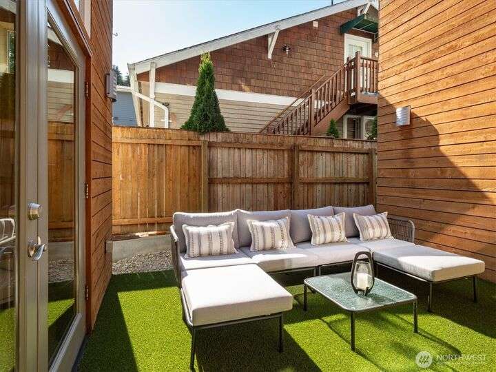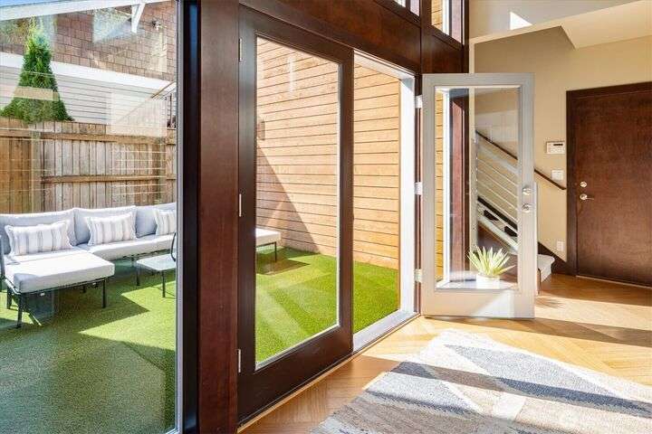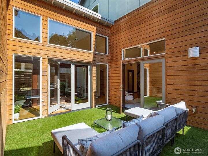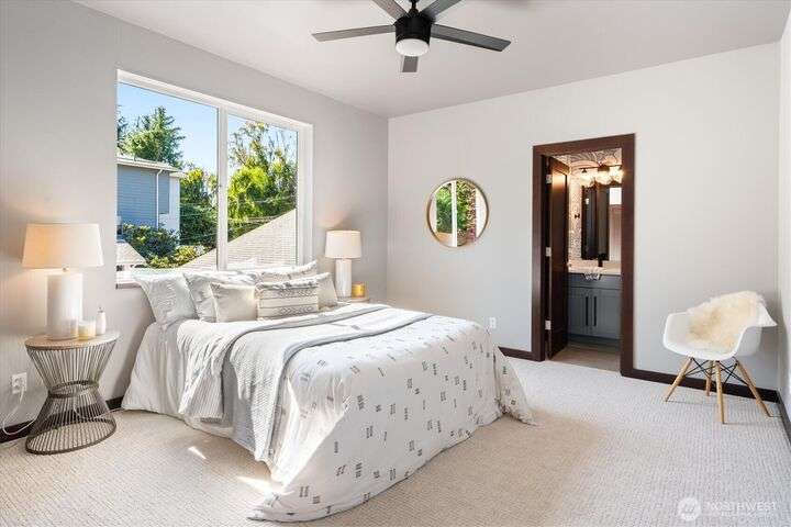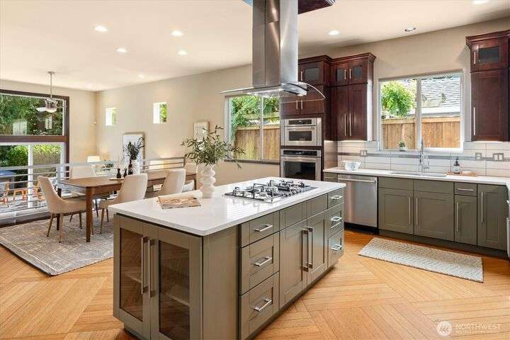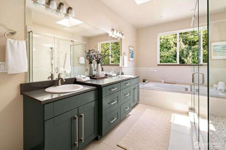 Welcome to this beautiful home filled with soaring ceilings, natural light, and spaces made for entertaining. The kitchen is the heart of the home with abundant counters and a generous island, flowing seamlessly into the dining room and cozy sunken living room. Entertain year-round on two covered patios, one with a double-sided fireplace and gas hook-up for effortless grilling. Upstairs, relax in the peaceful primary suite, joined by two bedrooms and a full bath. A versatile bonus room with full bath is ideal as a 4th bedroom, office, gym, or play space. The 2-car garage offers storage. The private lot backs to a wooded green space with room to garden, play, or simply enjoy nature.