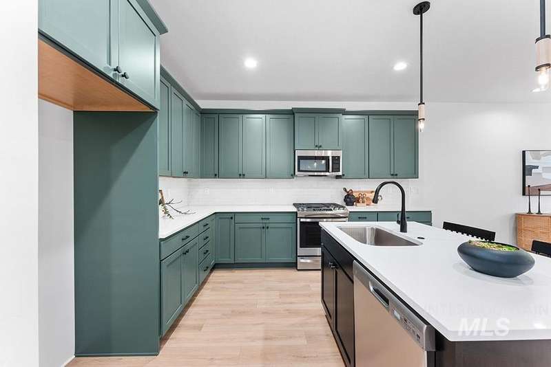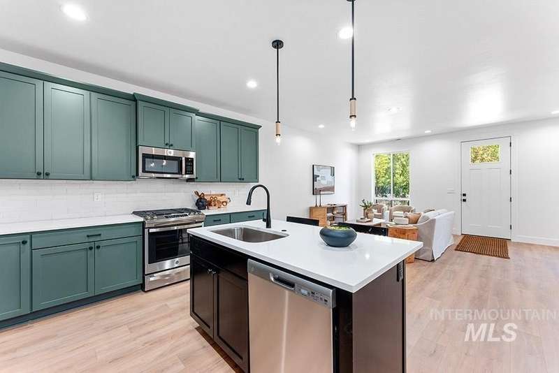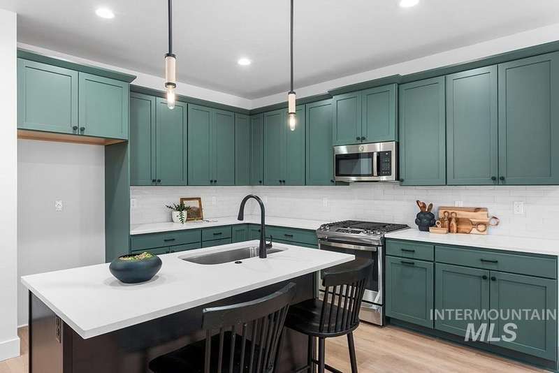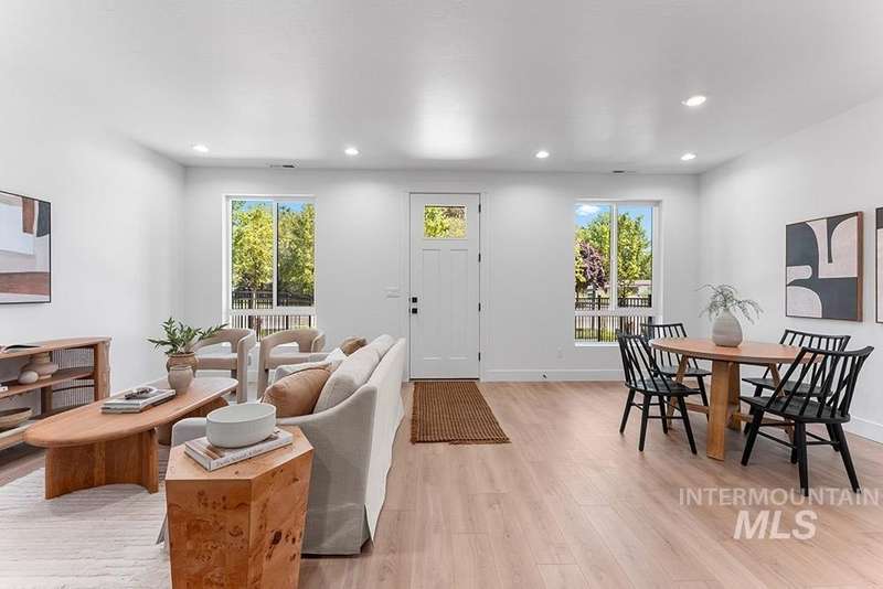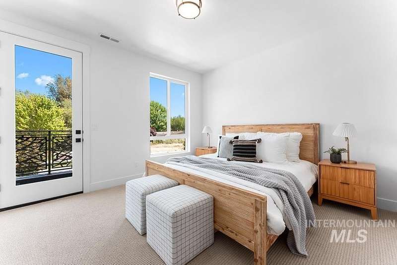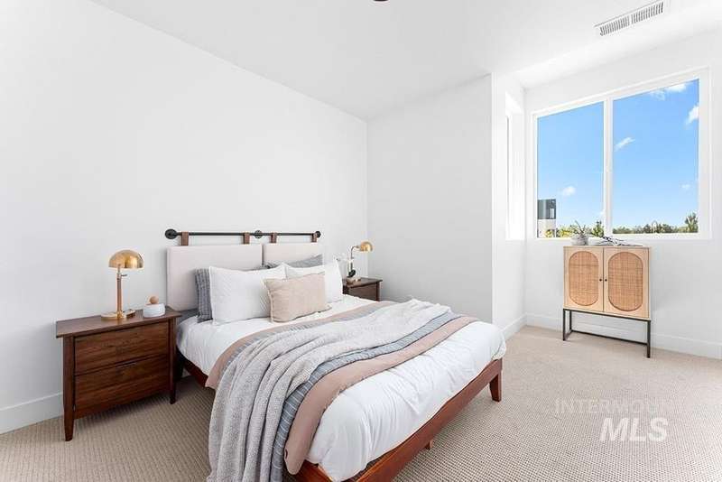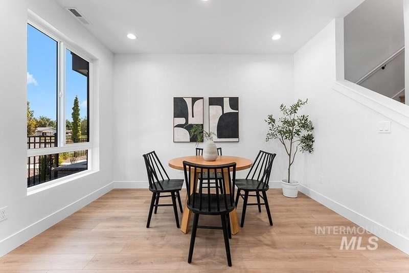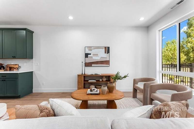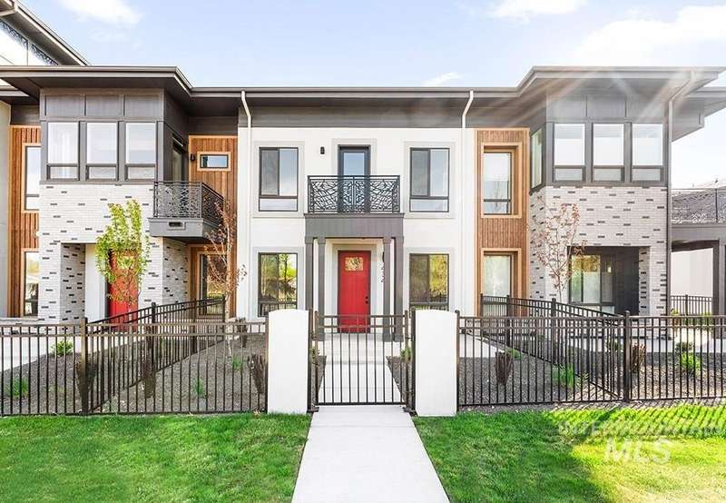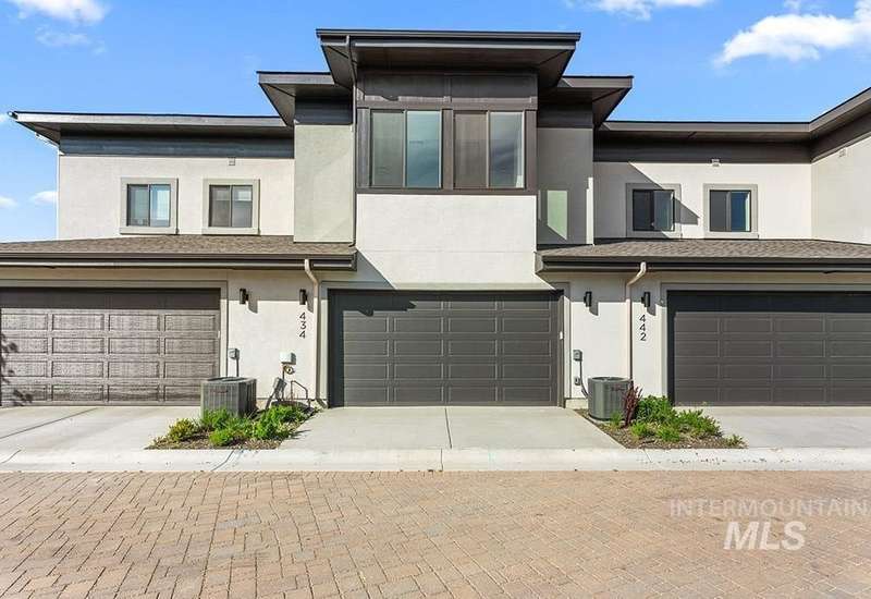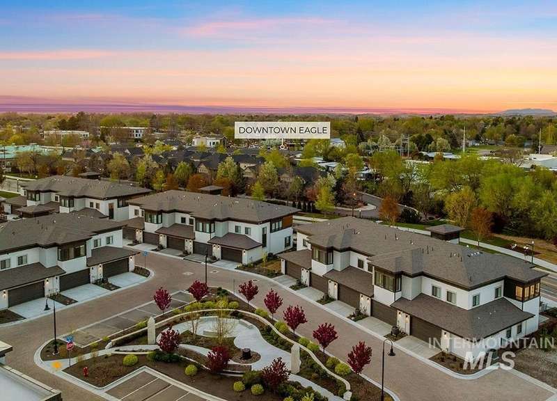 Introducing the Lakeland floorplan at Molinari Park—where sophisticated design meets effortless living in the heart of downtown Eagle. This stylish unit enjoys peaceful views of open park space and features a private rear-entry two-car garage, providing both privacy and minimal street exposure. Inside, the open-concept layout is filled with natural light, complemented by soaring ceilings and luxury vinyl plank flooring. The gourmet kitchen is a showstopper, with quartz countertops, an oversized island perfect for entertaining, and sleek stainless steel appliances. Upstairs, the expansive primary suite offers a private balcony, spa-like en suite bath, and a large walk-in closet. Additional bedrooms are thoughtfully designed with nearby baths and built-in desk nooks for added functionality. A concealed utility closet in the garage includes a tankless water heater for added efficiency. Enjoy a low-maintenance lifestyle with future on-site amenities including dining, coffee shops, walking paths, & dog park.