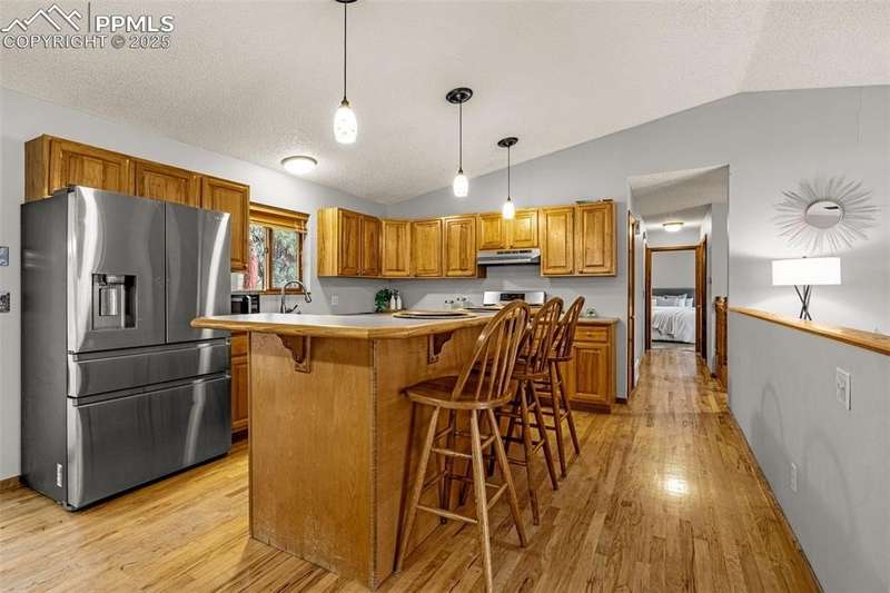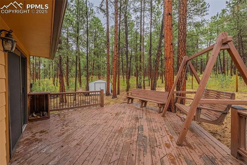 Wake up to birdsong and the peaceful rustle of trees on this tucked-away, tree-filled gated lot—your own private sanctuary just minutes from Fox Run Park, shopping, dining, and more. Nestled on your own slice of Colorado and surrounded by mature trees and visiting wildlife, this 4-bedroom, 3-bathroom ranch-style home offers the best of both worlds: the comfort of a cozy mountain retreat with the convenience of city living just down the road. Step inside and immediately feel at home with vaulted ceilings, rich hardwood floors, and natural light pouring in through large windows. The spacious and inviting living room is centered around a classic wood-burning stove—perfect for cozy Colorado evenings—and flows effortlessly into the kitchen, where stainless steel appliances and generous counter space make cooking and entertaining a breeze. The main level features two bedrooms and two bathrooms, providing the ideal setup for easy day-to-day living. Need more space? Head downstairs to the fully finished basement, which offers a second living area, two additional bedrooms, and a full bathroom—perfect for guests, multi-generational living, hobbies, or a home office. Outdoor living is just as impressive. Relax and watch the sun dip behind the trees from the large front deck, or unwind on the expansive back deck complete with a porch swing. Tucked under the trees, you’ll also find a charming treehouse—ready for little adventurers or a whimsical backyard escape. And when the snow begins to fall, the entire property transforms into a magical winter wonderland, offering year-round beauty and serenity. If you're searching for a home that offers privacy, charm, character, and plenty of space both inside and out—this one truly has it all. Come see it in person and experience the lifestyle you've been dreaming of. This is more than a home.. it’s a feeling. Welcome home!