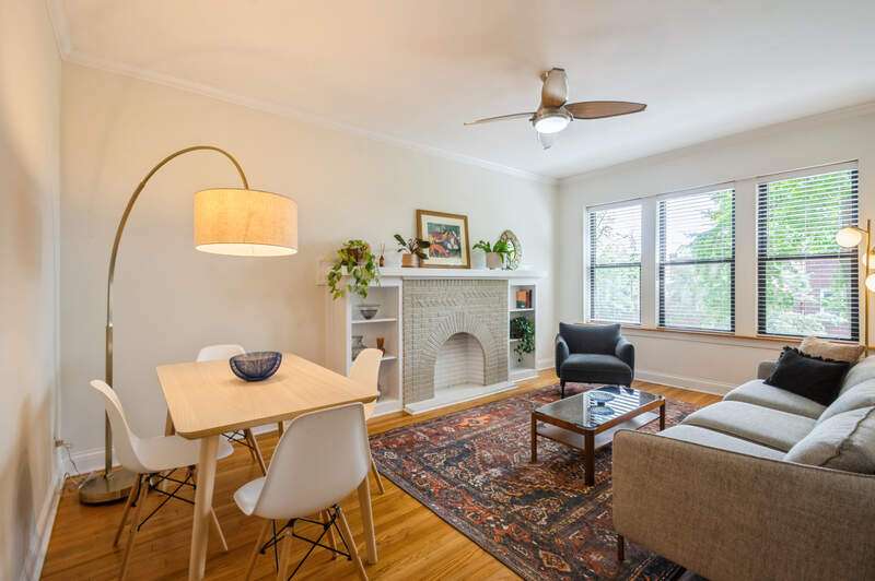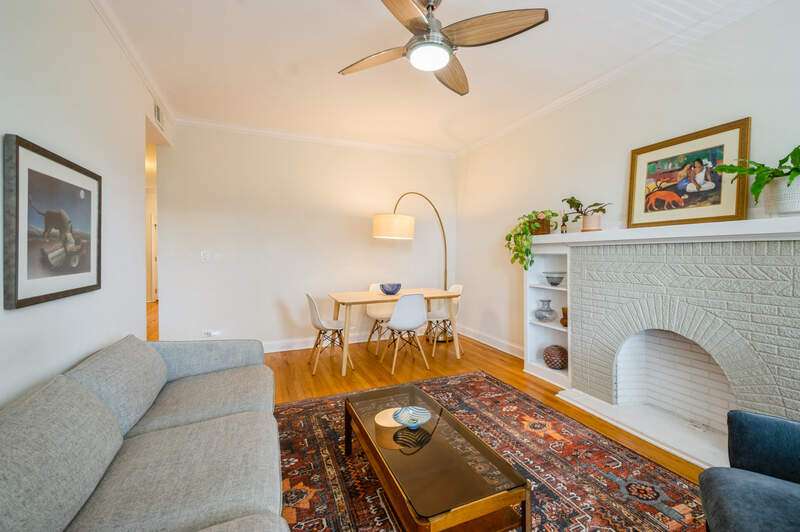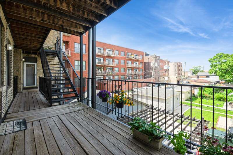 Welcome home to this beautifully maintained 2 bed/1 bath condo in the city's Irving Park neighborhood, offering a blend of comfort, style, and convenience. Hardwood floors, treetop views, and abundant natural light from east and west exposures enhance the spacious living/dining area, which features a decorative fireplace and offers ample room to entertain. The well-appointed, modern kitchen is compact but efficient, with granite counters, maple cabinets, and stainless steel appliances, and opens to a sunny west-facing deck-perfect for grilling or relaxing. The primary bedroom includes a walk-in closet, and the second bedroom makes for an ideal home office, guest space, or nursery. The large bathroom offers a whirlpool tub. Additional highlights include gas forced heat, central air, and in-unit laundry. The professionally managed and financially sound Association is pet-friendly (count limit = 2) and investor-friendly (50% rental cap; just 3 of 19 units rented) and offers additional storage. Ample street parking, quick access to the expressway, and just steps to several bus routes-including the #80 Irving Park, #82 Kimball, and #78 Montrose-make getting around a breeze. Both the Brown and Blue Lines are accessible via those bus routes or about a 20-minute walk. A great opportunity for a first-time buyer or investor.