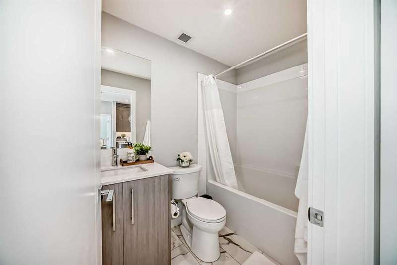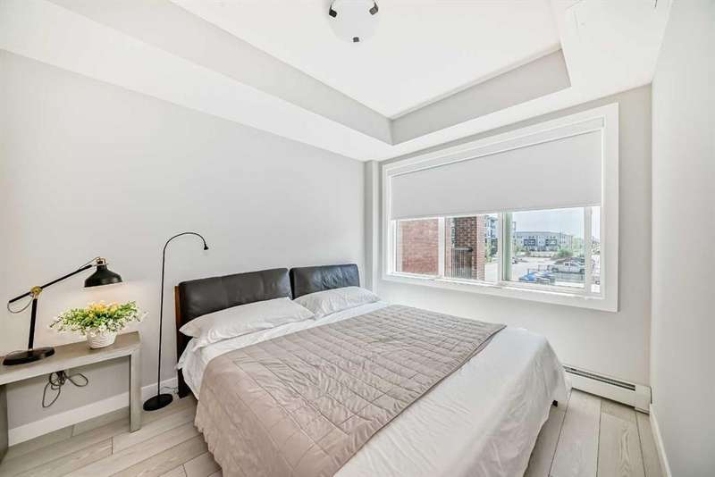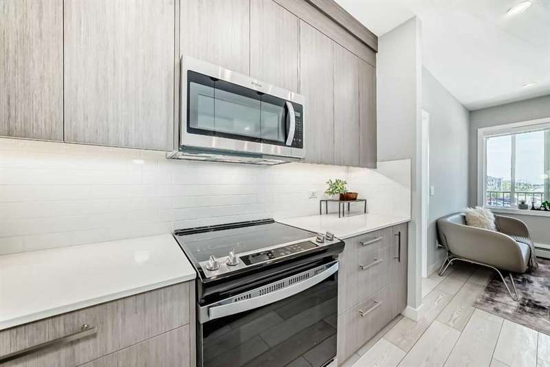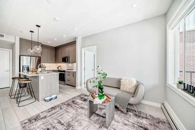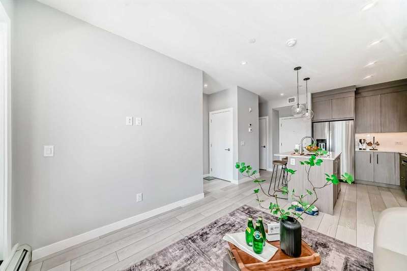 DISCOVER LOCKWOOD – A STUNNING 2-BEDROOM + DEN, 2-BATHROOM unit with TITLED UNDERGROUND PARKING, ideally located in the vibrant and growing community of Chelsea, Chestermere. Steps from PARKS, PLAYGROUNDS, WALKING TRAILS, and minutes to CHESTERMERE LAKE, this location is perfect for outdoor lovers. This BRIGHT, OPEN-CONCEPT home features an OVERSIZED SOUTH-FACING BALCONY, flooding the space with NATURAL LIGHT and offering beautiful VIEWS – perfect for relaxing or entertaining. Inside, enjoy LUXURY VINYL PLANK FLOORING, HIGH CEILINGS, and a designer kitchen with FULL-HEIGHT CABINETRY, STAINLESS STEEL APPLIANCES, QUARTZ COUNTERTOPS, and a PANTRY. The PRIMARY SUITE includes a WALK-THROUGH CLOSET and private 3-PIECE ENSUITE. A SECOND BEDROOM, DEN, and 4-PIECE MAIN BATHROOM complete the smart layout. BONUS AMENITIES include a FITNESS CENTRE, OWNERS' LOUNGE, and BIKE STORAGE. BRAND NEW and MOVE-IN READY, this home offers STYLE, COMFORT, and COMMUNITY. Contact me or your favorite realtor today for A PRIVATE SHOWING!