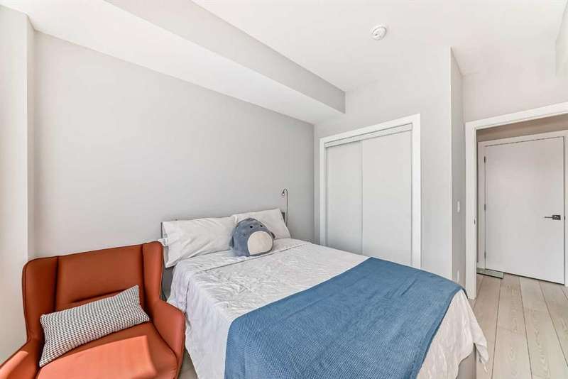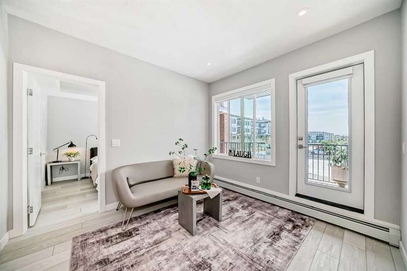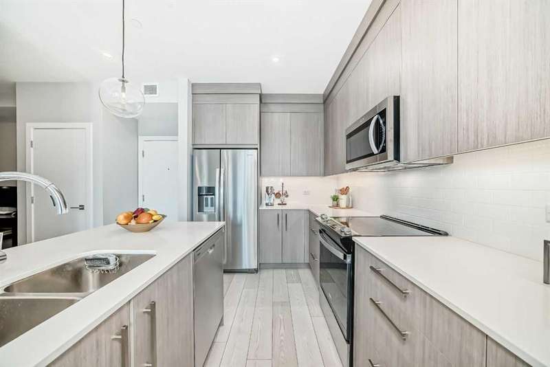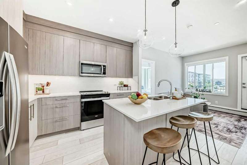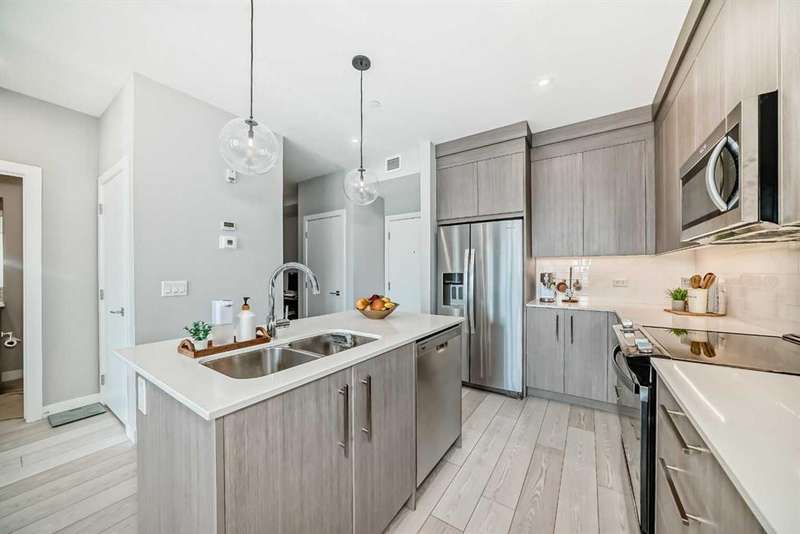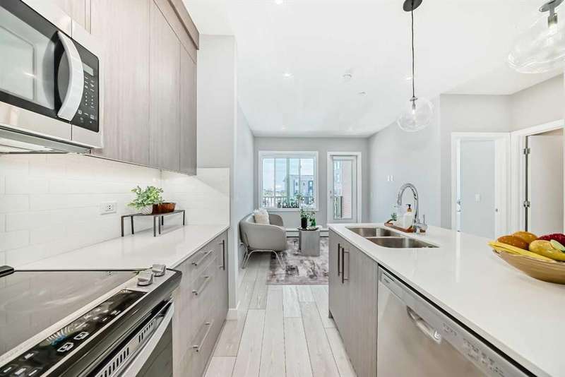 DISCOVER LOCKWOOD – A STUNNING 2-BEDROOM + DEN, 2-BATHROOM unit with TITLED UNDERGROUND PARKING, ideally located in the vibrant and growing community of Chelsea, Chestermere. Steps from PARKS, PLAYGROUNDS, WALKING TRAILS, and minutes to CHESTERMERE LAKE, this location is perfect for outdoor lovers. This BRIGHT, OPEN-CONCEPT home features an OVERSIZED SOUTH-FACING BALCONY, flooding the space with NATURAL LIGHT and offering beautiful VIEWS – perfect for relaxing or entertaining. Inside, enjoy LUXURY VINYL PLANK FLOORING, HIGH CEILINGS, and a designer kitchen with FULL-HEIGHT CABINETRY, STAINLESS STEEL APPLIANCES, QUARTZ COUNTERTOPS, and a PANTRY. The PRIMARY SUITE includes a WALK-THROUGH CLOSET and private 3-PIECE ENSUITE. A SECOND BEDROOM, DEN, and 4-PIECE MAIN BATHROOM complete the smart layout. BONUS AMENITIES include a FITNESS CENTRE, OWNERS' LOUNGE, and BIKE STORAGE. BRAND NEW and MOVE-IN READY, this home offers STYLE, COMFORT, and COMMUNITY. Contact me or your favorite realtor today for A PRIVATE SHOWING!