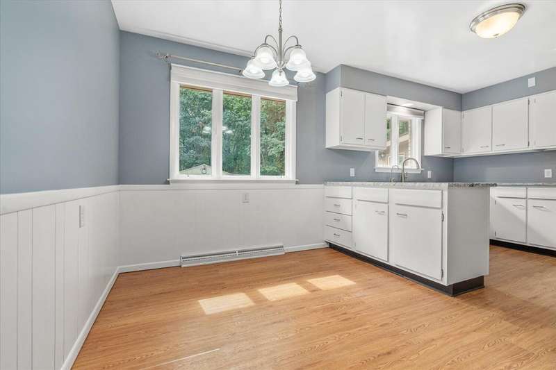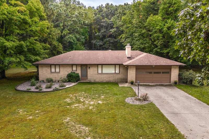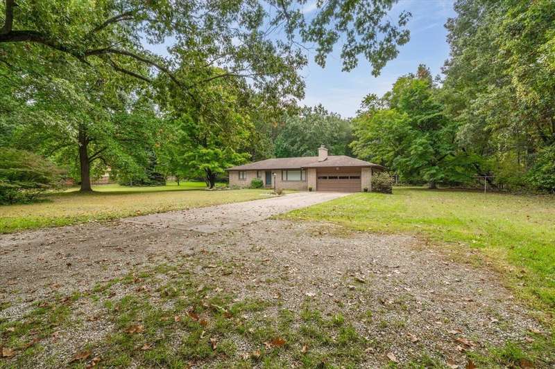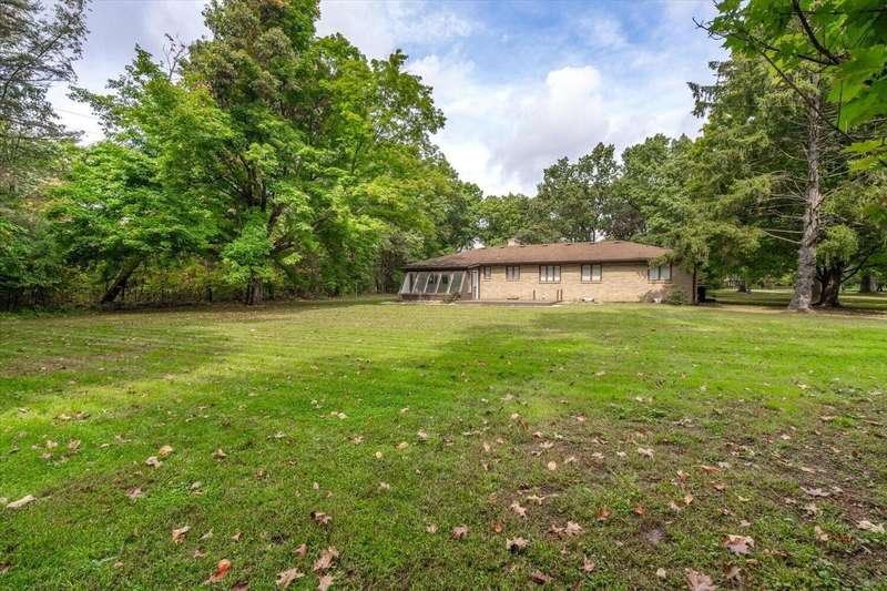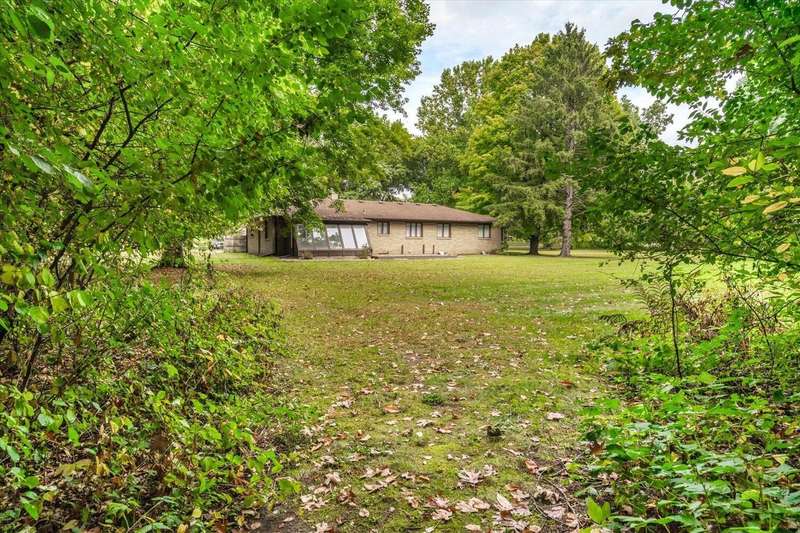 Charming All-Brick Ranch on approx 6 Acres! This immaculate home offers the perfect blend of comfort, style, and country living. The spacious main floor features 3 bedrooms & 1.5 baths, highlighted by gorgeous hardwood floors & a beautifully remodeled bathrooms. The heart of the home is the stunning renovated kitchen, complete with granite counters, new stainless steel appliances, a large pantry, and an adjoining dining area. The formal living room shines with elegant cove ceilings and a cozy wood-burning fireplace, while the inviting family room opens to a light-filled 4-seasons room overlooking the private backyard. The full basement adds incredible potential for future living space and already includes a shower with plumbing for a second full bath. Recent updates provide peace of mind with new basement windows, a new well, fresh paint, new carpet, granite counters, & modern SS appliances. Outside, enjoy the property's natural beauty with wooded trails, plus a pole barn. or all your storage or hobby needs. A true move-in ready retreat with room to grow!