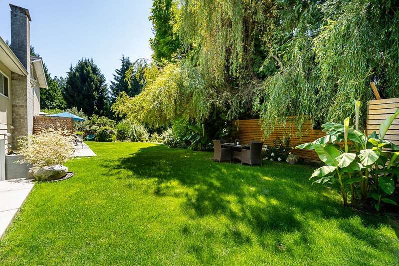 Welcome to a rare gem in Burnaby’s exclusive Government Road area. Tucked away on a quiet cul de sac, this beautifully renovated residence offers privacy, space & timeless West Coast style on an expansive 11,799 sq ft landscaped lot. With 5 bedrooms & 3 full bathrooms, the layout is ideal for growing families or multigenerational living. Soaring vaulted ceilings, a cozy wood-burning fireplace & rich natural light define the warm, open-concept living & dining areas on main. The south-facing huge backyard is a serene retreat w/ mature lovely garden & many fruit trees, perfect for outdoor entertaining. Includes walk-out studio suite w/patio plus a self-contained 1-bedroom suite w/patio, w/laundry access. Recent upgrades: roof, drain tiles, furnace & hot water tank. Tenanted. SEE VIDEO!
