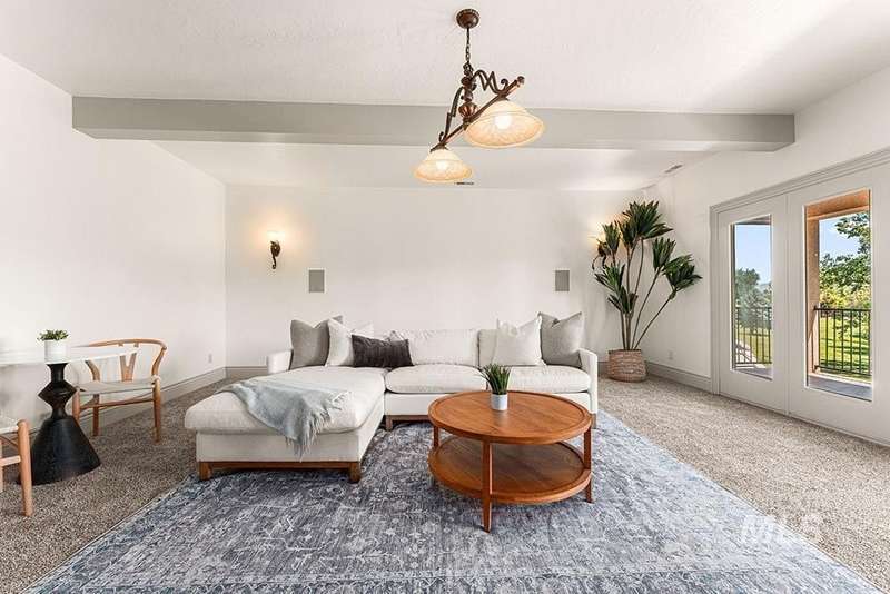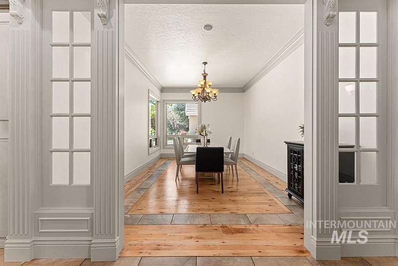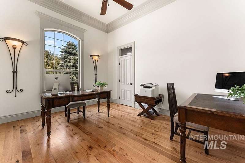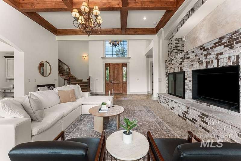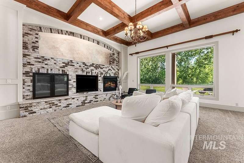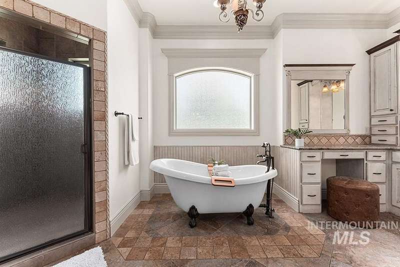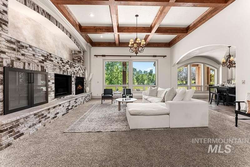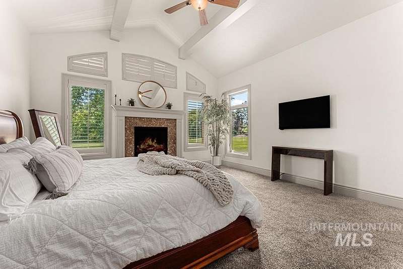 Nestled setting with lakes on both sides in an exclusive Eagle location! Over $40,000 in new interior paint! Spectacular, irreplaceable lot with breathtaking mountain views, the serenity of being just steps from the Boise River, multiple waterways & towering mature trees. Superior custom-designed home offers unparalleled luxury & sophistication. Over 4500sf with endless upgrades such as triple crown molding, rich hardwood floors throughout & abundant windows to take in the breathtaking views. Chef's kitchen is a masterpiece, featuring slab granite counters, custom cabinetry, top-end appliances & spacious pantry. The main-level master suite is a true retreat, boasting a fireplace, walk-in tile shower & clawfoot soaker tub. Upstairs, the balcony provides stunning eastward views of the mountains & overlooks the tranquil water. The oversized 40x28 garage offers ample space. Enjoy full irrigation water rights & 50+ acres of surrounding open space.
