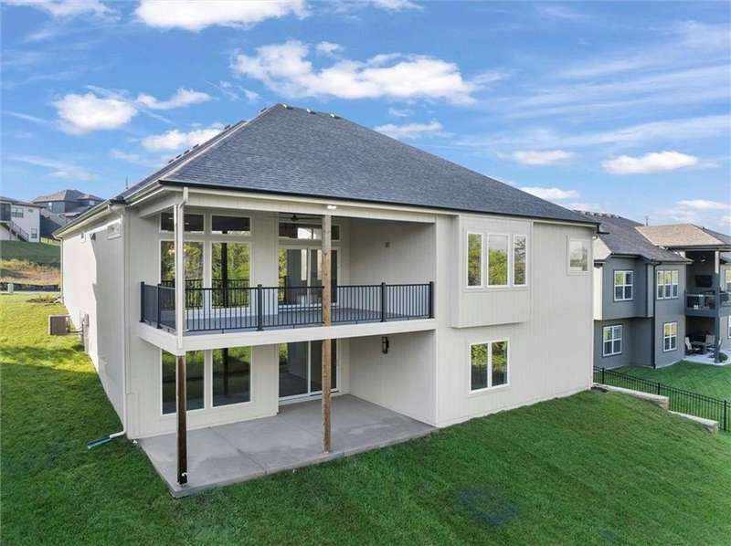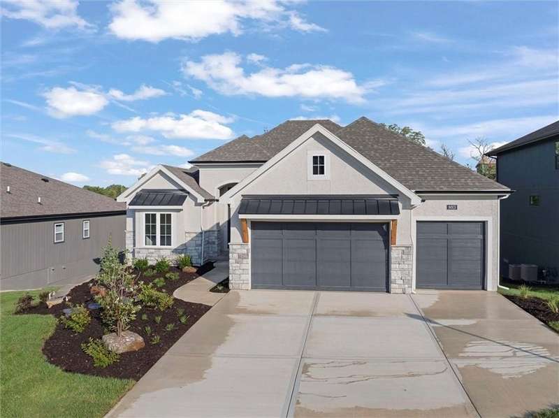 The award-winning Fleetwood Reverse 1.5 Story home by Don Julian Builders is MOVE-IN READY at Bristol Highlands in Shawnee on lot 27, a walkout homesite backing to peaceful treed green space with occasional wildlife sightings. This home whispers, "I've made it," with 3,320 square feet, 4bedrooms, 3 bathrooms, 13' ceilings, a primary suite, laundry room, pocket office, and second bedroom with full bath all on the main floor. Enjoy an oversized covered composite deck and patio below, perfect for quiet mornings or evenings unwinding. The finished lower level features two bedrooms with a Jack-and-Jill bath, a large recreation room, wet bar, and a half bath for guests. Future amenities include a clubhouse, resort-style pool, play area, sport courts, and more! Located in a premier Shawnee location close to parks, trails, shopping, dining and top-rated De Soto schools, all 5 minutes from Shawnee Mission Park (largest park in JoCo), Lake Lenexa, 7 premier golf courses, Lenexa City Center and Marketplace with the new Restaurant Row plus the numerous festivals in Shawnee and Lenexa throughout the year!