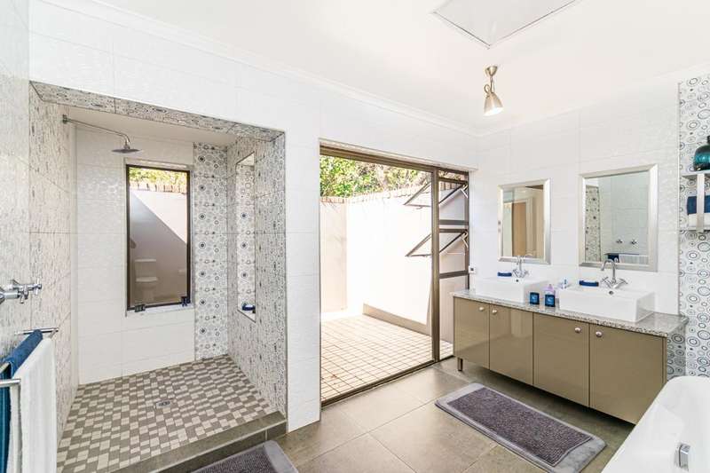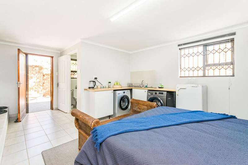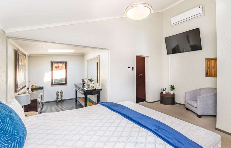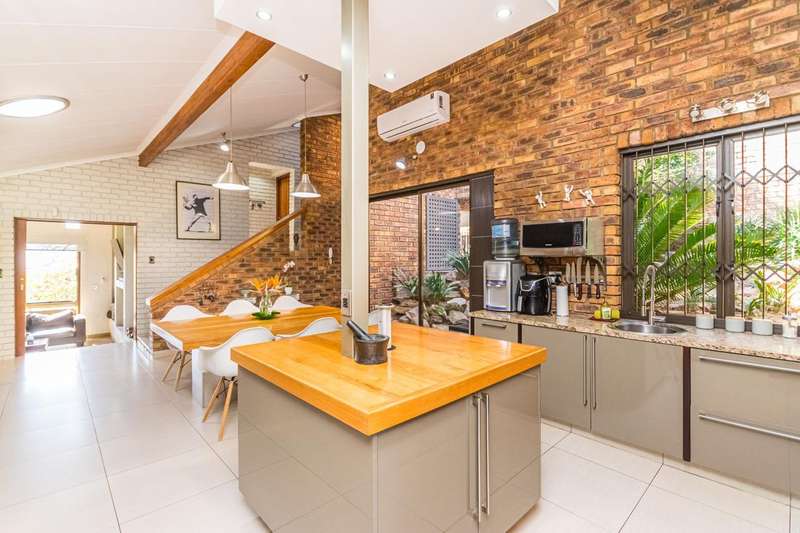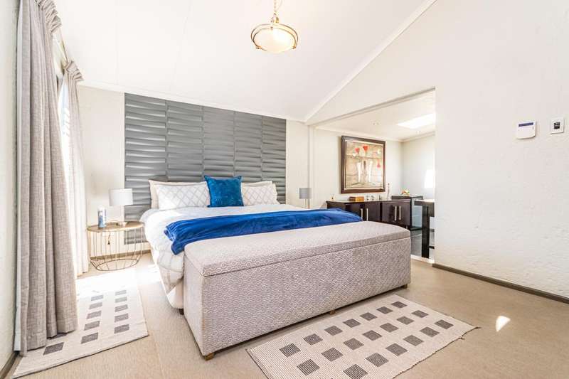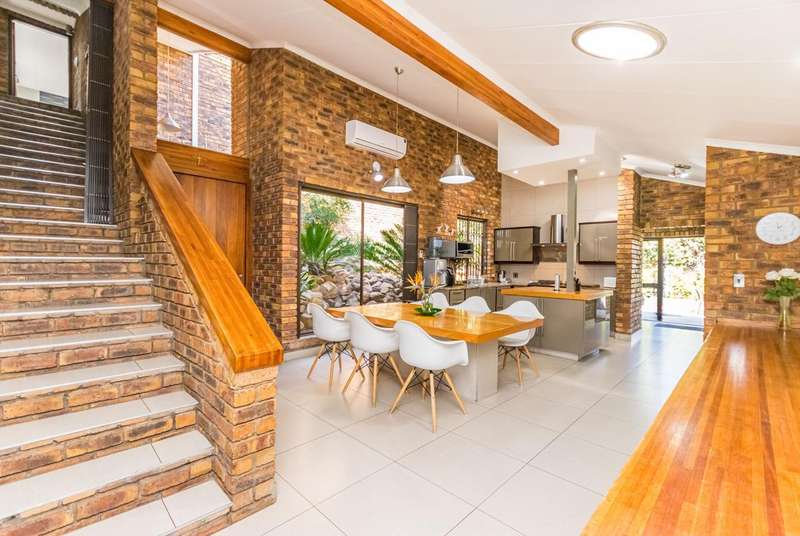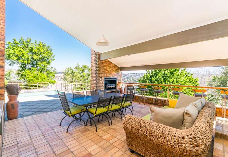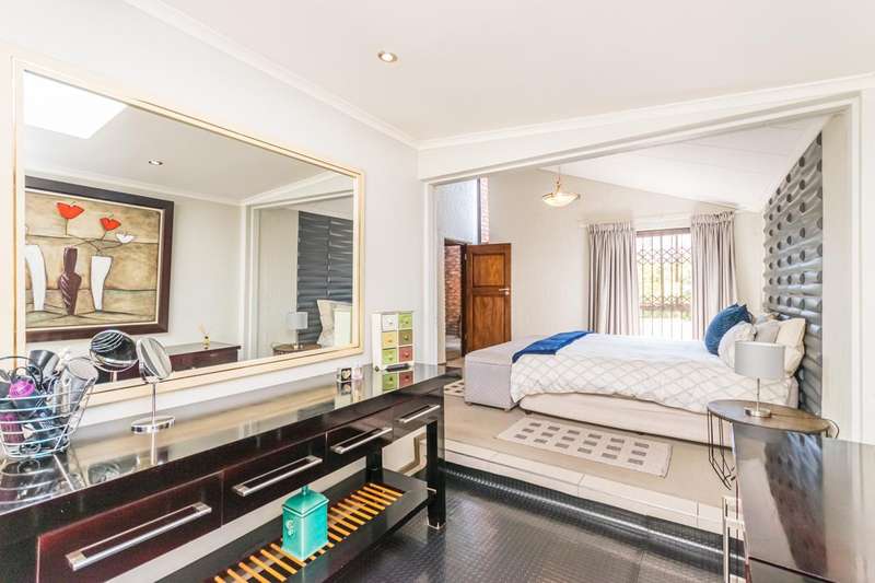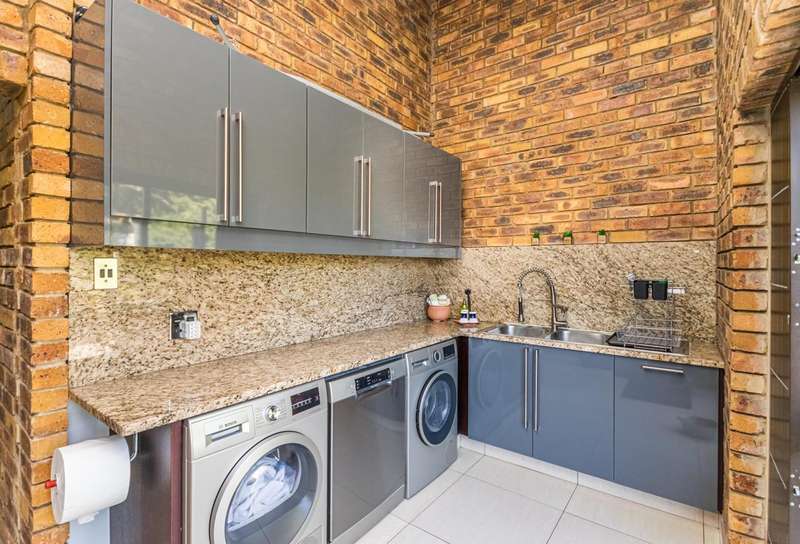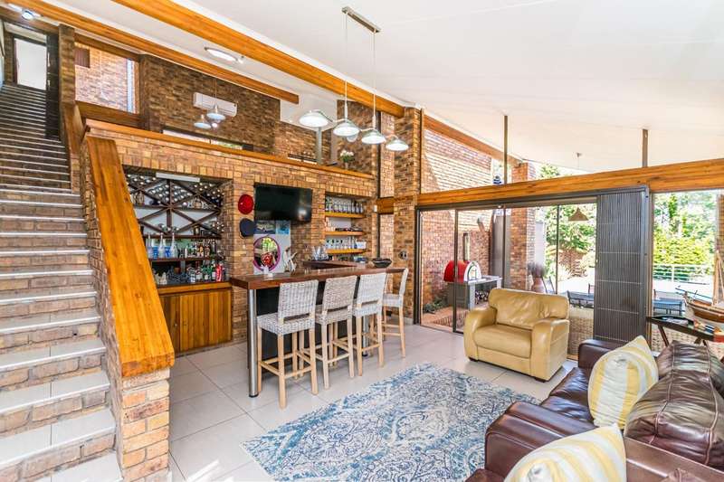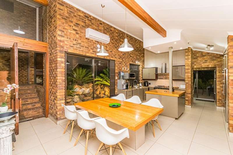 Pure Quality & Class ?Çô A Prestigious Residence in a Sought-After Security Boomed off area. Be the envy of all with this statement home, perfectly positioned on a commanding corner stand with views over the Helderkruin Valley. Designed with meticulous attention to detail and finished with only the finest materials, this residence represents luxury living at its best. Elegant Entrance & Flowing Living Spaces Step through the double solid-wood doors into a double-volume entrance. Immediately setting the tone of space, sophistication, and comfort. Designer Kitchen & Terrace Living Top-class kitchen with everything you need, blends elegance with function: Granite countertops and center island with wooden accents. Smeg 5-burner gas hob, dual eye-level ovens, Smeg extractor fan & double fridge space Triple water filtration system at prep bowl Fully fitted scullery with space for 3 appliances Step out and Extend your lifestyle to the ?Ç£Terrace Bar & Grill?Ç¥ ?Çô an entertainer?ÇÖs dream where you?ÇÖll witness spectacular sunsets over the valley, with colours shifting from orange to purple. This is next-level living. Luxurious Bedroom Wing: Upstairs, retreat to a master suite of distinction: Private dressing area with skylights Walk-in cherrywood closets Aircon & plush carpets Spa-like en-suite with freestanding bath, double granite vanity, and walk-in shower Two Additional bedrooms offer stunning views, cherrywood cabinetry, aircon, and a stylish sandstone bathroom with shower. Landing; Sandstone floor, Double volume, Facebrick inetrior, Study desk and small lounge. Tiled Staircase with trellidoor at Bedroom area. Guest Toilet and access into double auto garage, extra length for the Bigger vehicles. Reception & Family Spaces Private, Casual TV lounge with sandstone finishes, fireplace, and barn door privacy Ground level: Versatile family lounge and entertainment bar with second fireplace Seamless flow to the covered patio, braai area, pool deck & boma ?Çô a space that feels like a luxury lodge retreat. Flatlet & Work-from-Home Options Modern, tiled open-plan flatlet with kitchenette, bathroom & gas geyser ?Çô ideal for extended family, rental income, or AirBnB. Separate outside office or gym with easy access to main entrance. Extras Features: This home combines luxury with advanced convenience: Energy Independence: 8kW Deye Hybrid Inverter, 12 x Canadian Solar Tier 1 panels, 4 x Blue Nova lithium batteries, prepaid electricity, and automatic switchover with app control. 3 Gas geysers | 6 Aircons | Underfloor heating | 2 Fireplaces Water backup: 5,500L JoJo tank & pump Fibre-ready, beams, CCTV, alarm system & 14 LED day/night security lights Low-maintenance landscaped garden with rockeries ?Çô no grass, just class Property Details Erf size: 1,316sqm Home size: ??400sqm Double automated garage (extra length) with direct access into home & secure shade parking. Corner stand, fully secured with aluminum frames, trellidoors & pallisade fencing This is not just a home ?Çô it?ÇÖs a lifestyle statement. A place where luxury, technology, and natural beauty converge. Treat yourself to the finer things in life and claim your piece of prestige today. For and Exclusive viewing, Make a booking. Get in contact today.