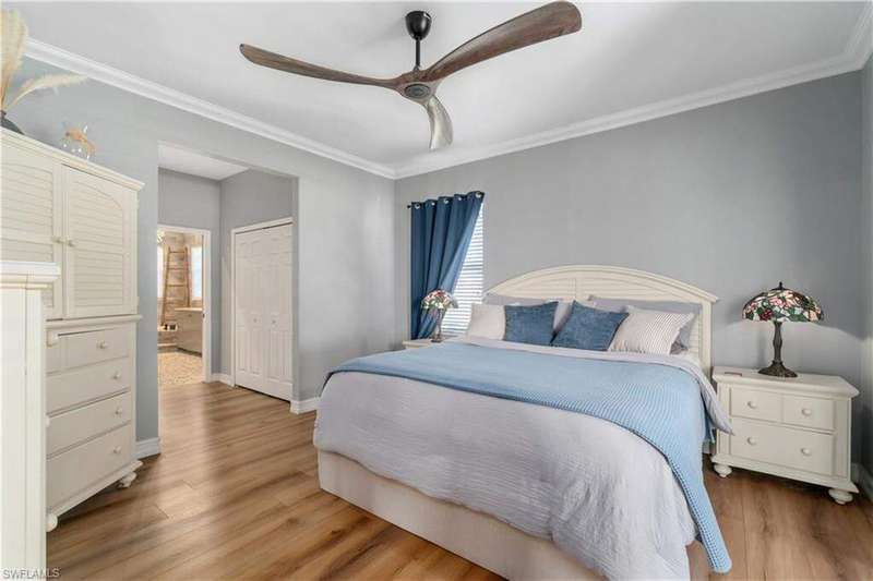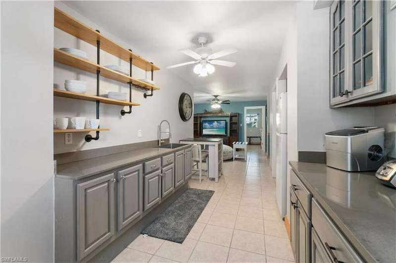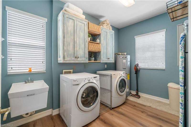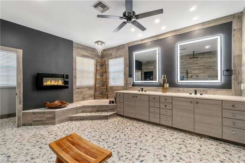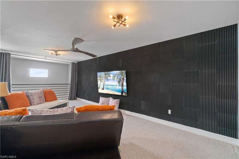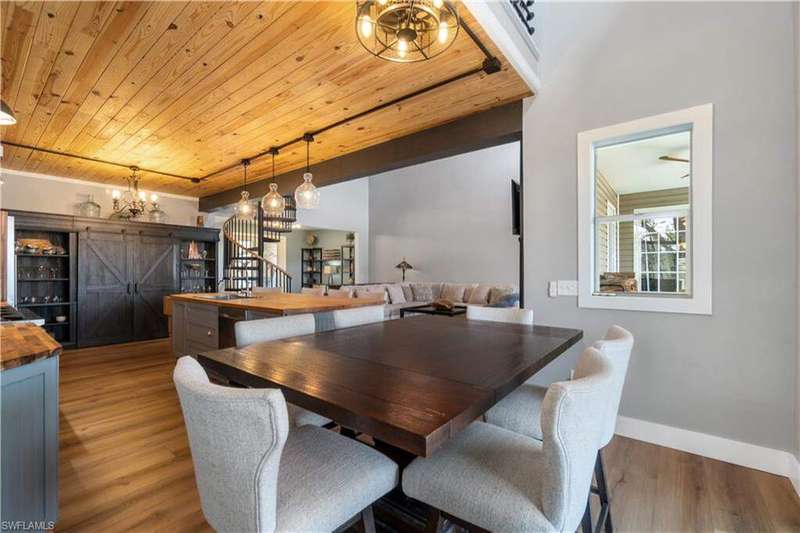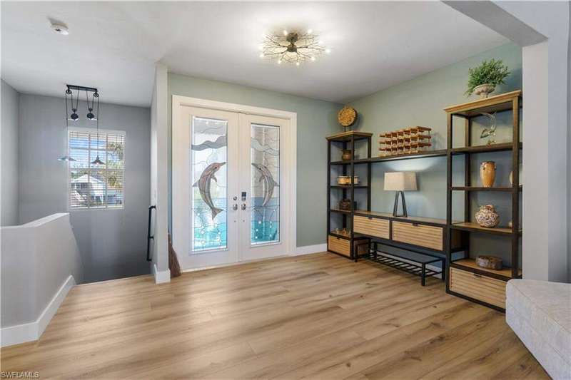 Stunning coastal retreat with breathtaking water views, nestled on an oversized lot on Fort Myers Beach. Just a short 5-minute walk to the beach, it's a true sanctuary for beach lovers and boating enthusiasts alike-complete with direct Gulf-access from your private dock featuring a 10,000 lb lift and canopy. The resort-style backyard is designed for both relaxation and entertaining, with a spacious screened-in second-floor balcony, large pool, spa, and multiple lounge areas-including your own private beach oasis. Inside, the open-concept floor plan is equally impressive with 3 bedrooms & a den, soaring 21-foot ceilings, beautiful wood-look flooring, and a charming wood-burning fireplace. The chef's kitchen has a unique modern design featuring wood-paneled ceilings, sleek steel accents, stainless-steel appliances, and a professional-grade 8-burner gas stove. The expansive primary suite is a true retreat with its own attached den/seating area and a spa-like bathroom offering dual rainfall shower heads, dual vanities, and a deep soaking tub. Upstairs, you'll find a spacious loft area that makes for the perfect media lounge. Additional highlights include versatile ground-floor flex space, a whole-house generator, and room to add a private elevator. Ideally situated on a quiet stretch of Estero Island, this extraordinary home is just minutes from fantastic restaurants and offers easy access to Lovers Key and Bonita Beach.