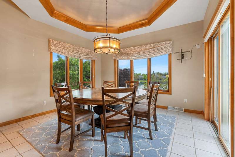 MOTIVATED SELLER! NEW furnace & central air. Sunset views from every room-This exceptional custom-built walkout ranch nestled on Lake Largo fills every room with natural light. It offers 5 spacious bedrooms, 3.1 bath home with high ceilings, an open floor plan and gas fireplace. Large master ensuite with whirlpool tub, walk in closet, double vanity & walk in tile shower. Kitchen comes fully equipped with stainless steel appliances & never ending counter space & storage. Finished walk out lower level where you will find 2 of the 5 bedrooms, full bath, family room, wet bar and ample storage. Beautifully landscaped yard with a large, covered walkout patio, deck, sprinkler system & private dock included. Cedar shake shingle, heated garage. Close to highway access and your everyday shopping!