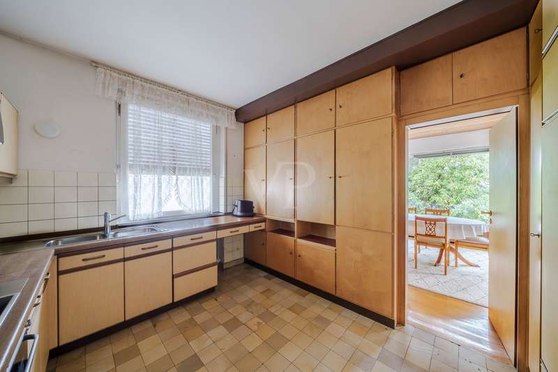 This prestigious detached house, built in 1961, is situated on a spacious plot of approx. 794 m² in a particularly beautiful location. With a living space of approx. 209.28 m² and a total of seven rooms, this property offers enough space for a wide variety of living concepts and individual development options. The floor plan impresses with its well thought-out room layout: five comfortable bedrooms create a personal retreat for the whole family or your guests. Two well-designed bathrooms provide a relaxed start to the day and ensure comfort in everyday life. The spacious hallway opens up a pleasant feeling of space as you enter the house, which is further emphasized by high ceilings and some panoramic windows in the living room. An attractive feature is the stylish fireplace, which creates a cozy atmosphere, especially on chilly days. The pool in the garden, which promises refreshment on hot summer days and blends harmoniously into the beautiful garden, is a particular source of leisure fun. Inside the house, oak floorboards and parquet flooring give the property a cozy and high-quality feel. Spacious areas, bright rooms and classic furnishing details give you the opportunity to realize your own living ideas. The property is currently in need of renovation, which gives you the opportunity to modernize the house according to your own ideas and adapt it to your needs. The spacious plot not only offers room to develop, but also privacy and access to a wonderful garden with a wealth of trees and varied planting. Conclusion: This detached house combines a lot of potential with an attractive location, a spacious plot and a variety of features such as a fireplace, pool and garage. Discover the possibilities that this special offer has to offer - we would be happy to show you the property during a personal viewing.