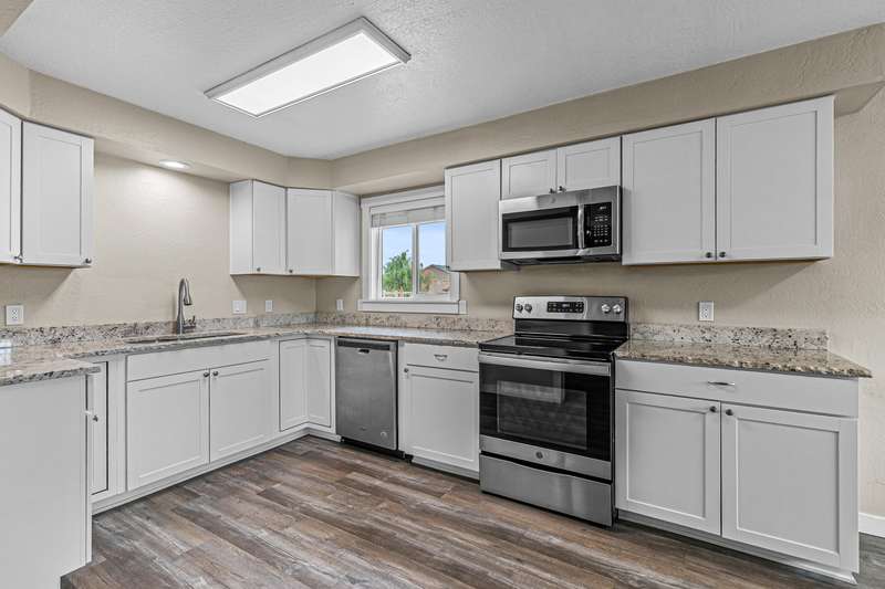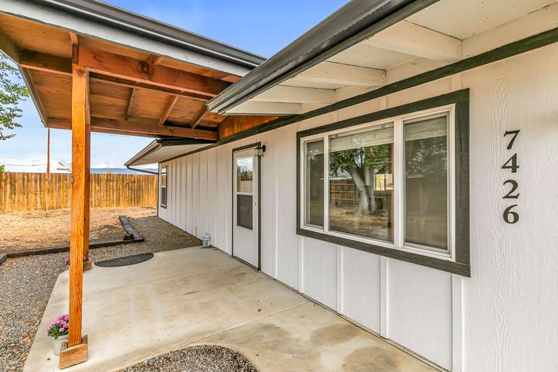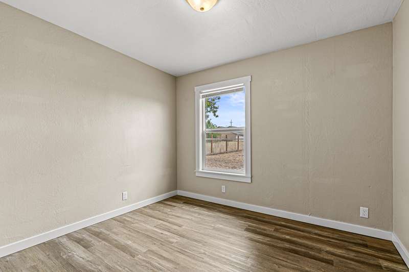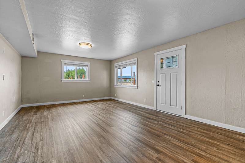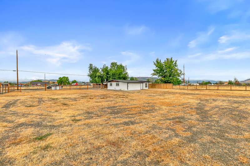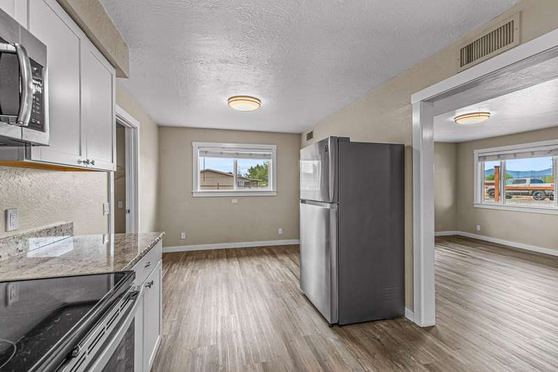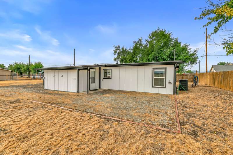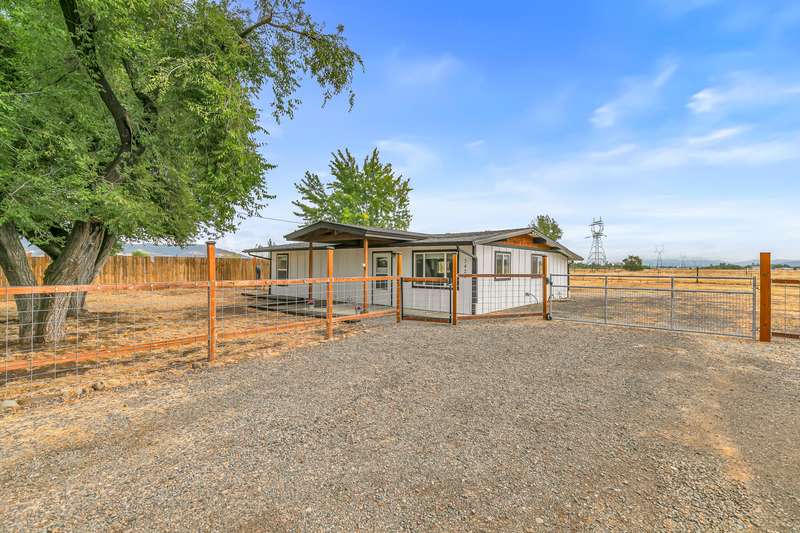 If you're searching for a country-style property close to town, this remodeled gem is it! Sitting on over half an acre (.61), the fully fenced lot offers privacy, an RV gate, full RV hookups, extra parking, and plenty of space to add a large shop or pool. Flat, usable land backs to open fields with mountain views for a true country feel. The home has been beautifully remodeled inside and out with a welcoming covered porch, mature shade trees, newer doors, roof, vinyl windows with blinds, high-end vinyl plank flooring, fresh paint, and newer forced heat/air. The kitchen shines with white cabinetry, granite counters, undermount sink, and stainless appliances including refrigerator, oven, microwave, and dishwasher. Two bright bedrooms and an updated bath with porcelain tub and tile complete the package. Room for toys, animals, and gatherings—this property checks all the boxes. A must tour!