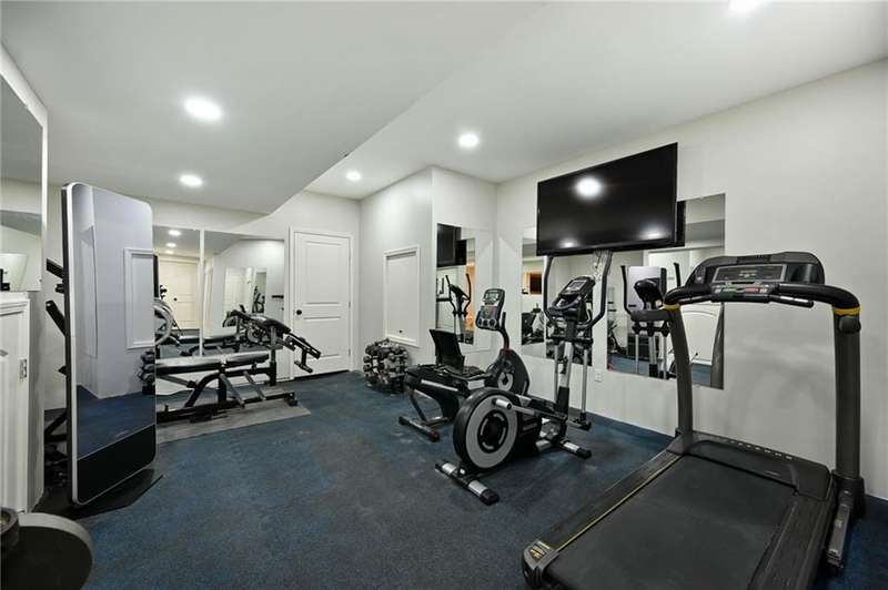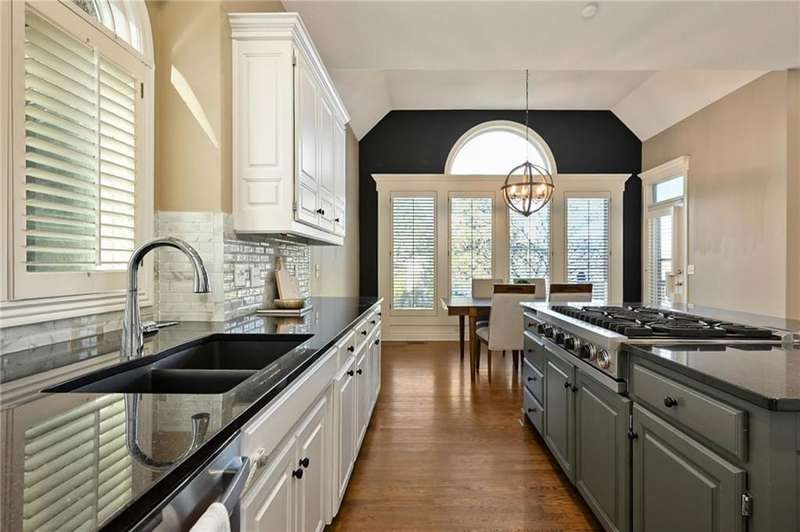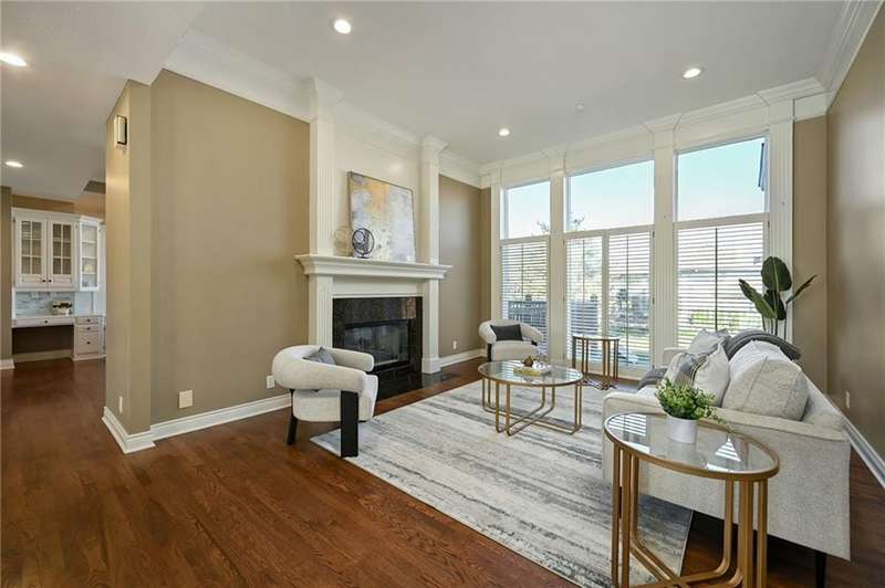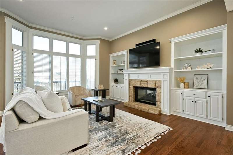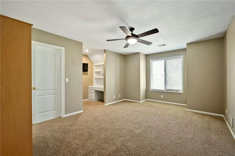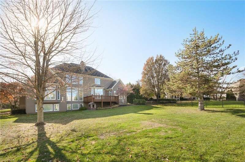Looking lovely in Leawood is this 1.5 story home with a phenominal floor plan that is laid out with large rooms and spaces. Many big windows let in lots of light and have plantation shutters on the main level! The kitchen has double ovens, warming drawer, Viking gas range with downdraft, walk in pantry and is open to the hearth room with a see through fireplace. The main level office features a wall of custom cabinetry and new carpet. The primary on the main level has an updated tile shower and freshly painted cabinets. Upstairs the bedrooms are generously sized and paired with a large loft room for extra space!The lower level is open with a kitchenette, full size refrigerator and bar seating. A 5th non-conforming bedroom, full bathroom and big workout room bring every bit of functionality to this home. All located on a lot with a fully fenced backyard, newer driveway and sidewalk, just down the street from the neighborhood pool, in Iron Horse Estates surrounding the public golf course and driving range. The location offers so many nearby amenities, and award winning schools!