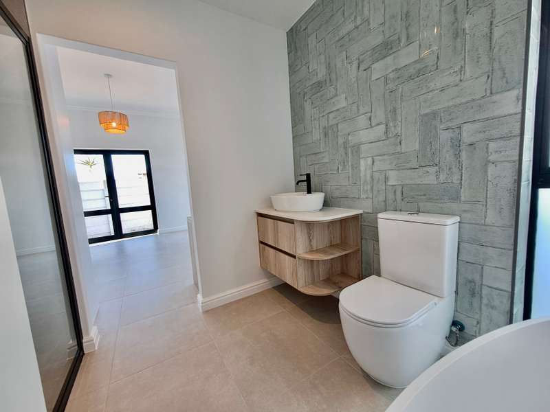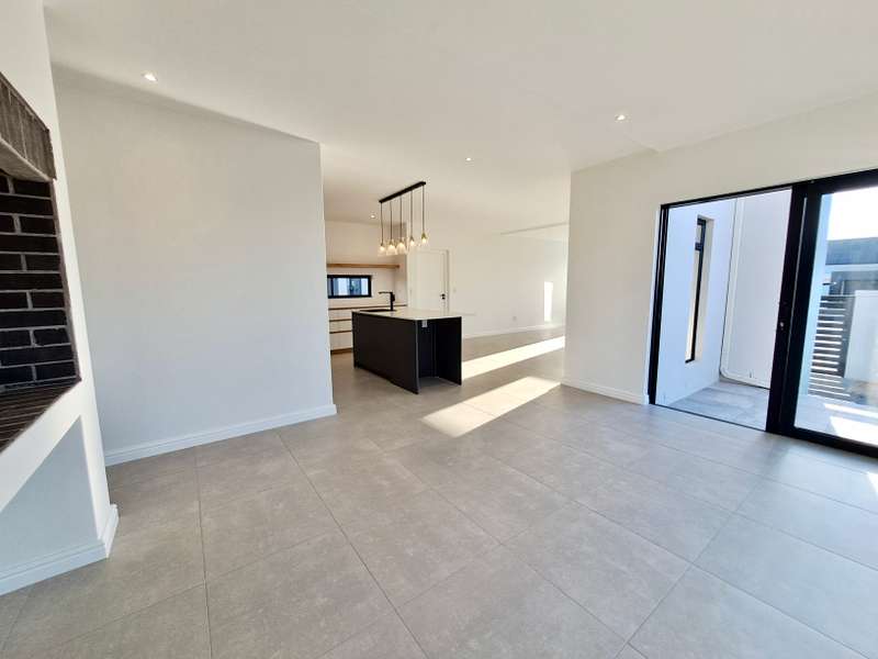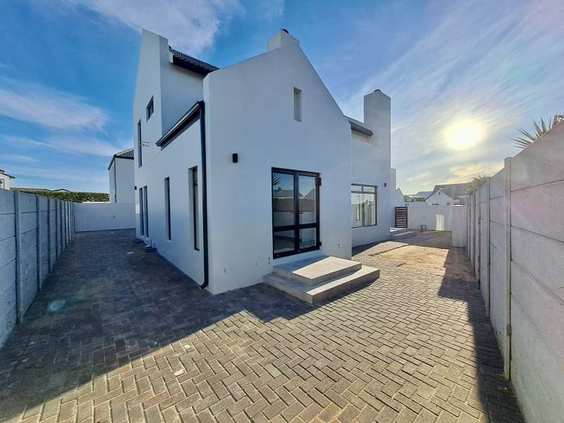 Discover the epitome of coastal living with this brand-new luxury home in the serene seaside town of Yzerfontein. This modern masterpiece seamlessly combines elegance, comfort, and convenience, making it the perfect getaway or permanent residence. With a spacious 244 square meters of interior living space, this home is designed for both relaxation and entertainment. The upper level features three beautifully appointed bedrooms, two of which include lavish en-suite bathrooms. The master and second bedrooms extend onto generous balconies, offering panoramic views and a tranquil escape. Downstairs, the open-plan design invites effortless entertaining. The sleek kitchen, complete with a central island and separate scullery, flows seamlessly into the living and dining areas. An indoor braai adjacent to the kitchen allows for year-round culinary enjoyment, while the expansive lounge and dining room, anchored by a grand fireplace, provide a cozy setting for intimate gatherings. Situated on a substantial 407-square-meter erf, this property offers privacy and peace, tucked away in a quiet cul-de-sac just 350 meters from the beach. The outdoor space is perfect for those seeking a retreat from the hustle and bustle, with ample room to relax and enjoy the coastal breeze. Built with the highest quality finishes, this home is move-in ready, promising a luxurious lifestyle without the hassle. The property includes a double garage, along with additional parking space for 2 to 3 cars in front of the garage, ensuring convenience for you and your guests. Ideal for those looking for a holiday haven or a serene spot to retire, this home offers it all. The purchase price includes VAT, with no transfer duty—only transfer fees are required. Yzerfontein, a picturesque town on South Africa’s Western Cape coast, is known for its pristine beaches and charming community. Just a short drive from Cape Town, this coastal gem offers a unique blend of natural beauty, sustainable development, and vibrant local culture, making it a highly desirable location for property buyers. This is your chance to own a piece of paradise in Yzerfontein. Don’t let this opportunity slip away!